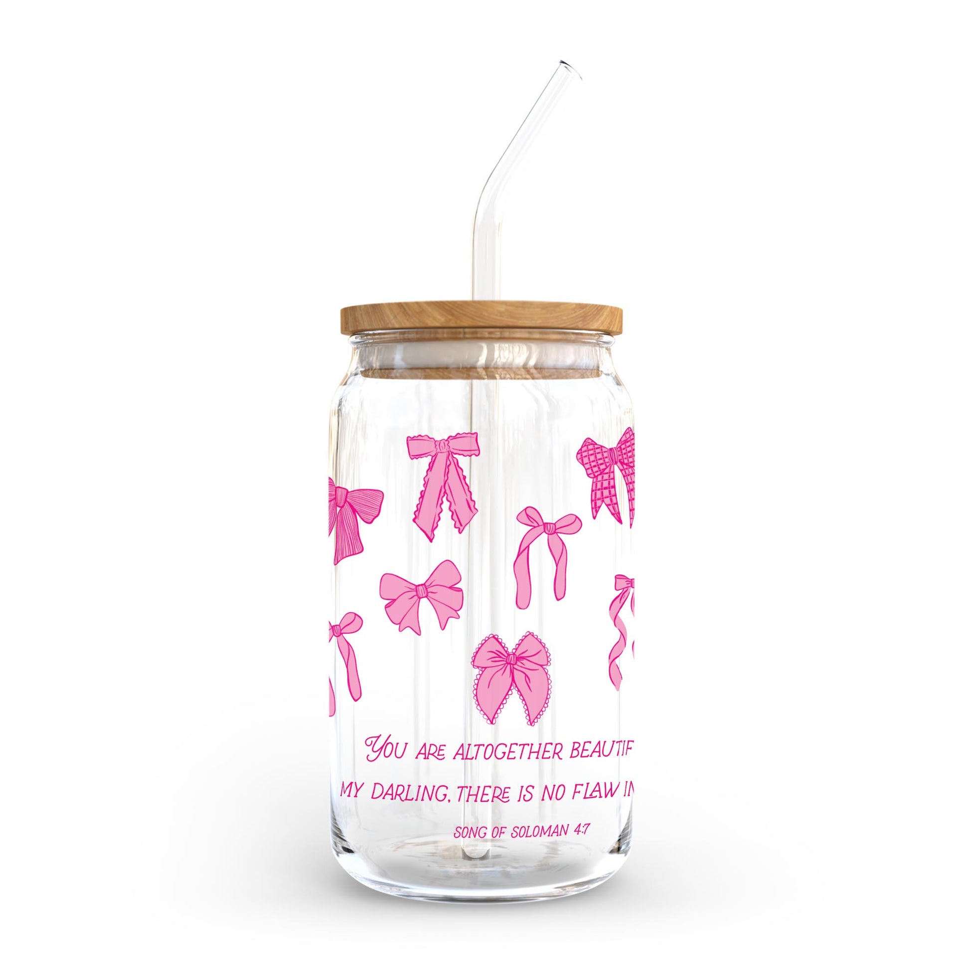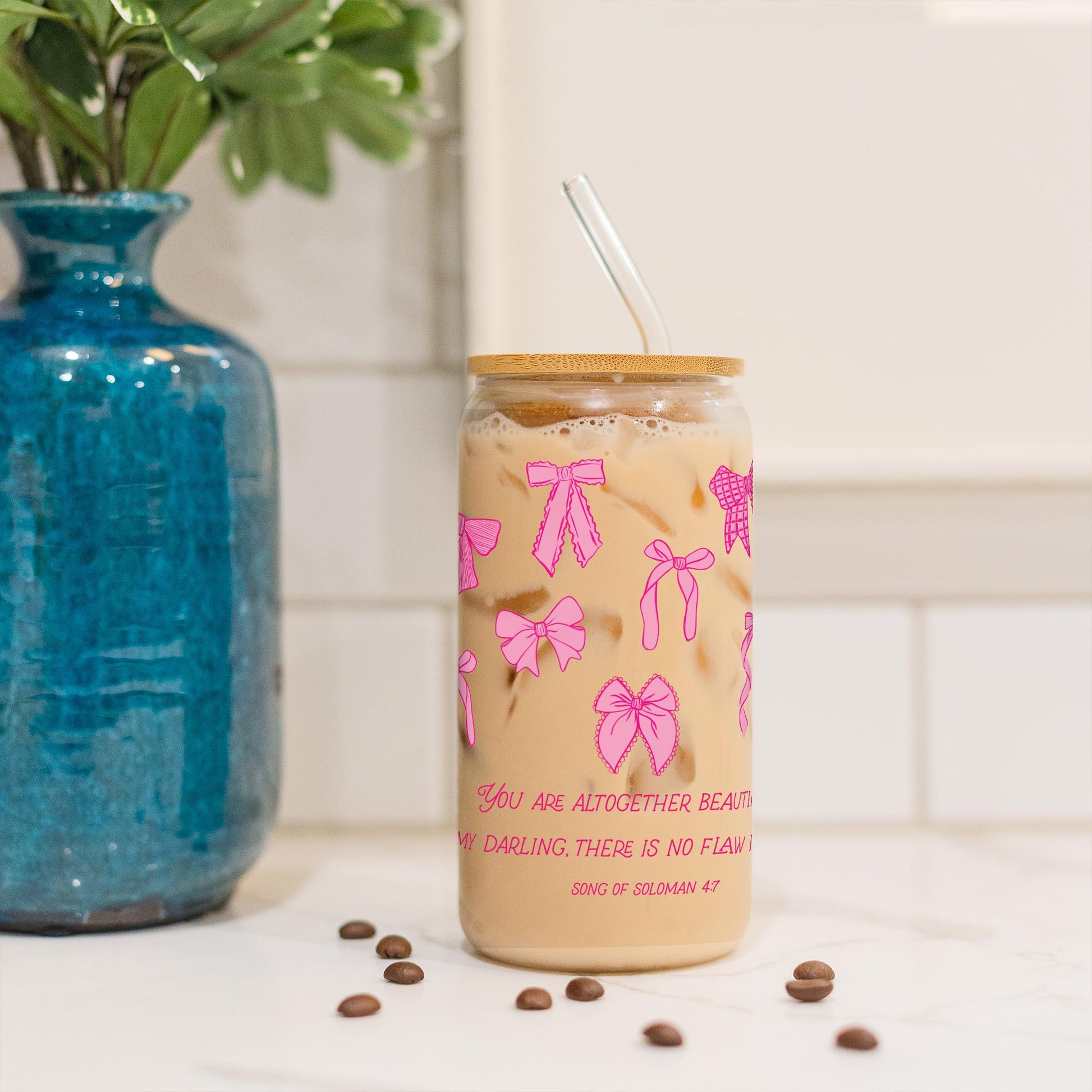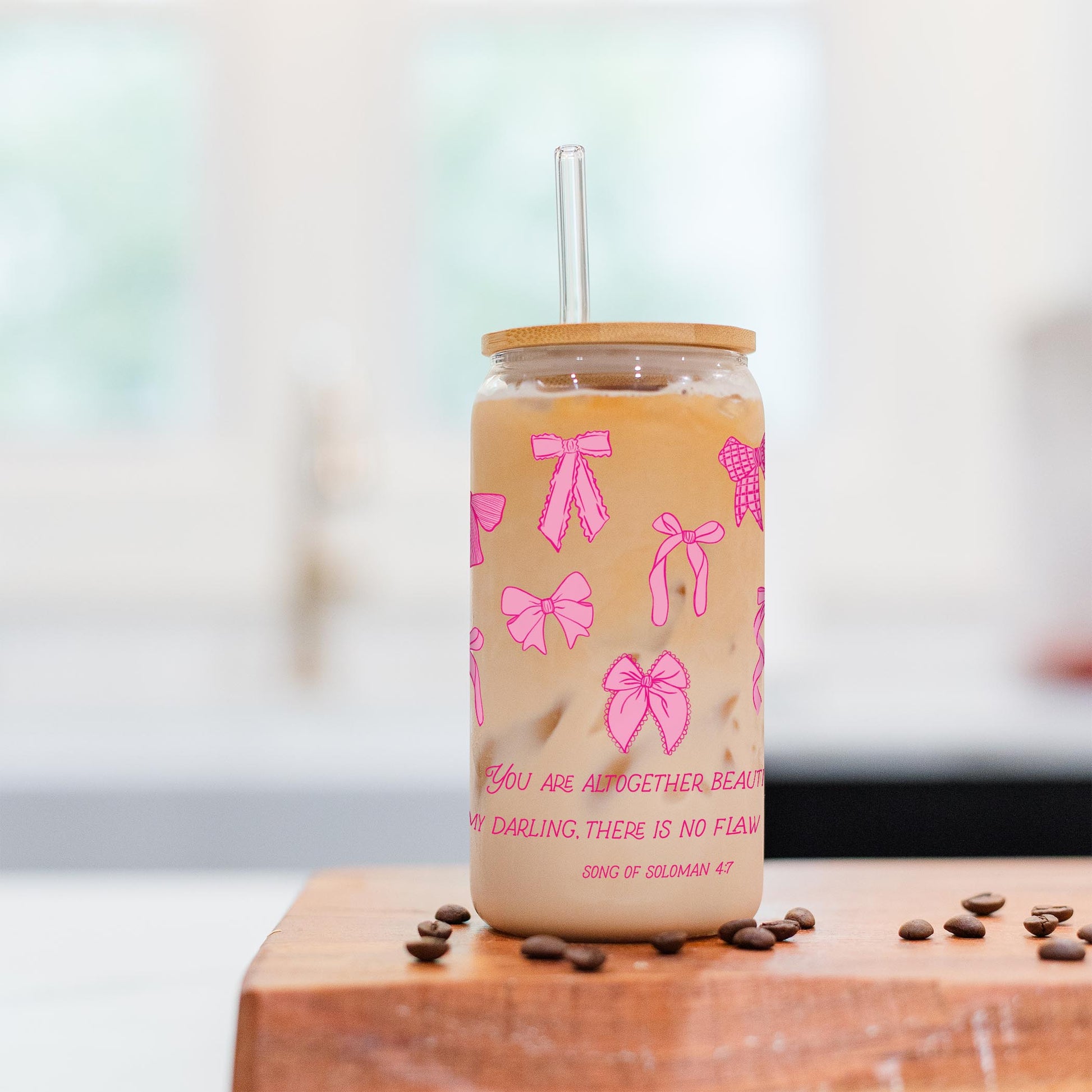 16oz Cold Brew Glass-Pink Bows You Are Altogether Beautiful