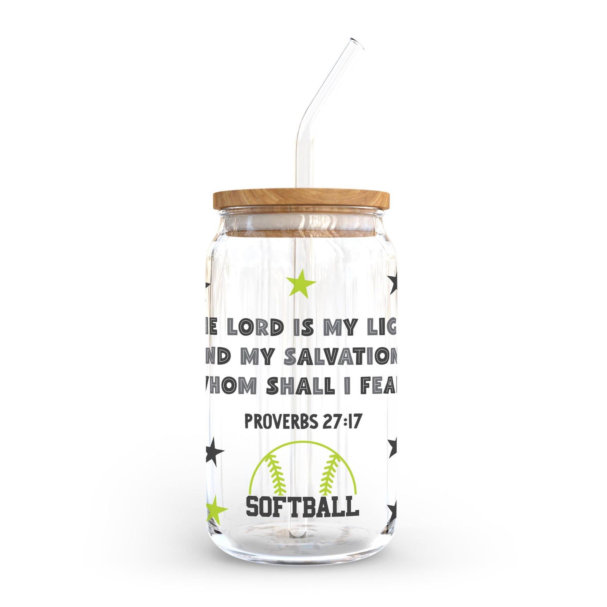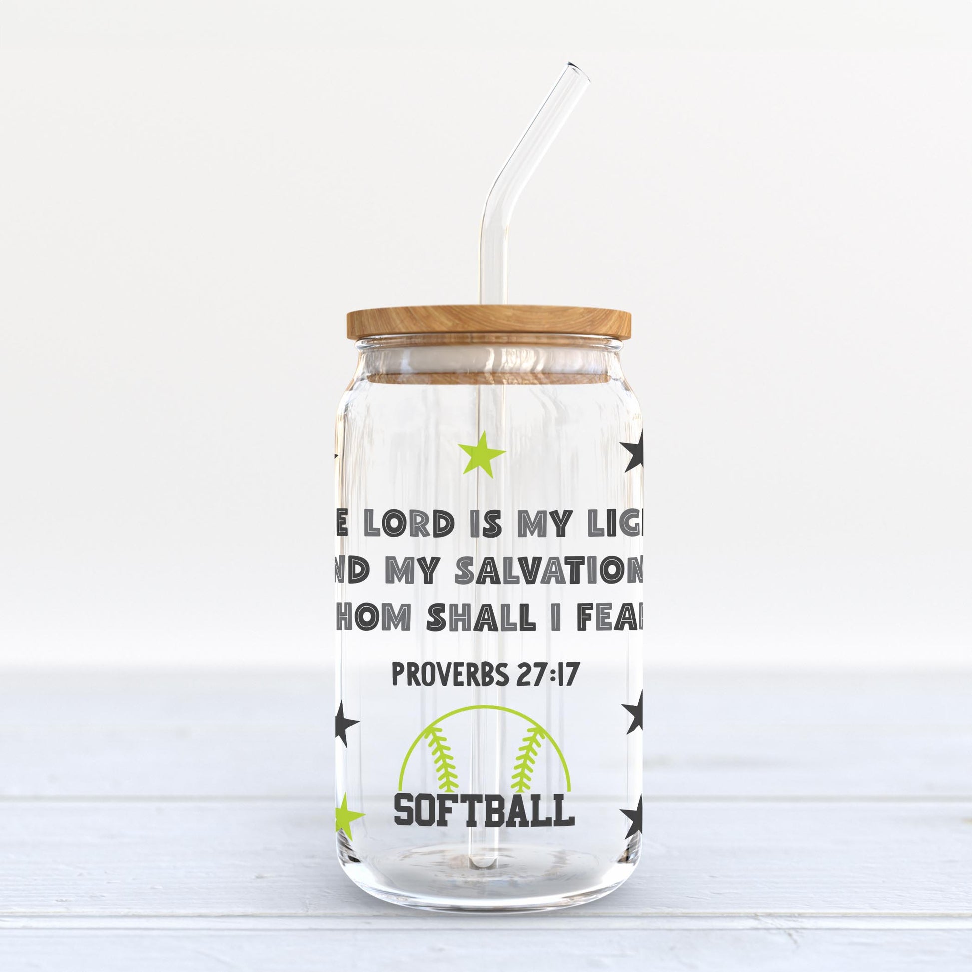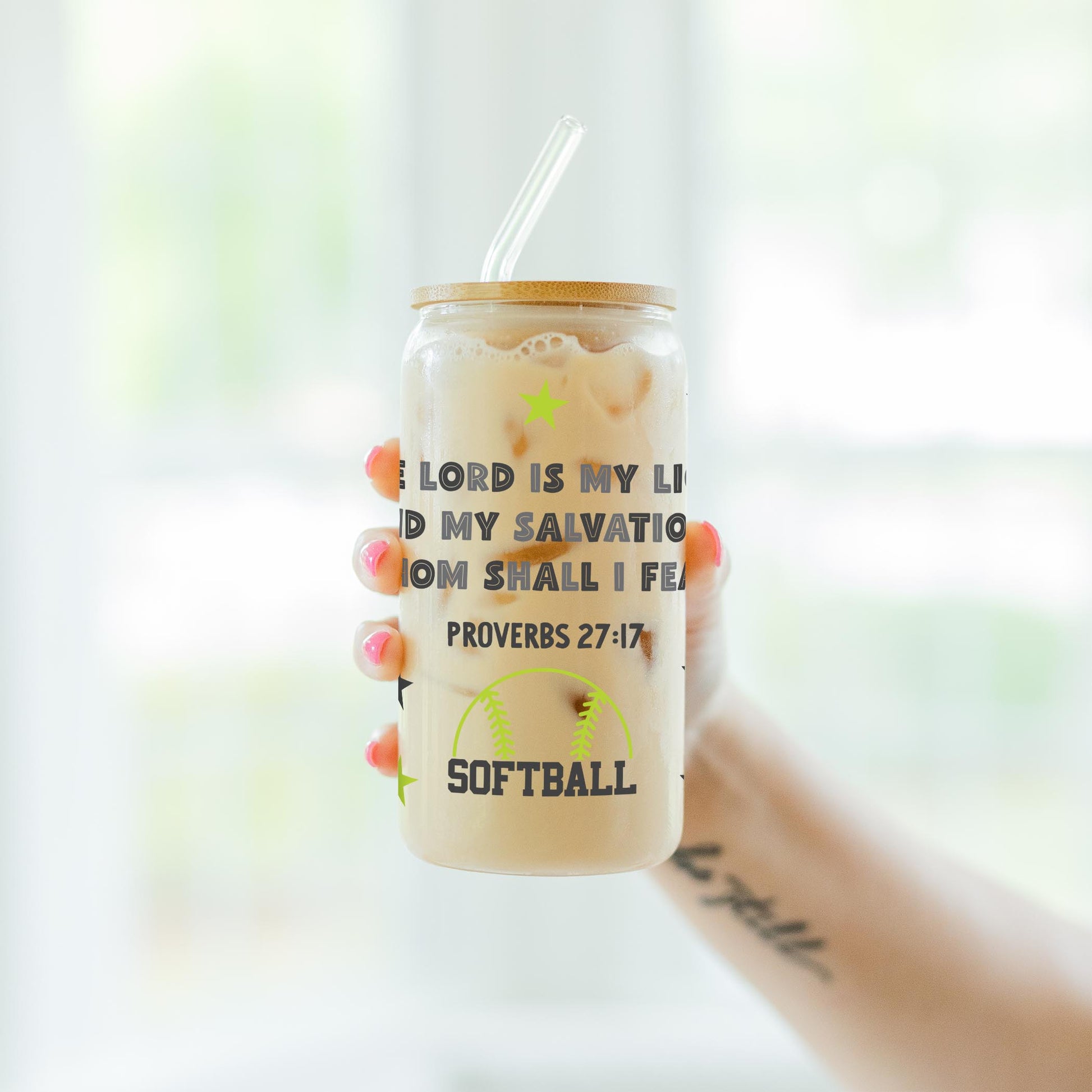 16oz Cold Brew Glass-The Lord Is My Light Softball Green & Black