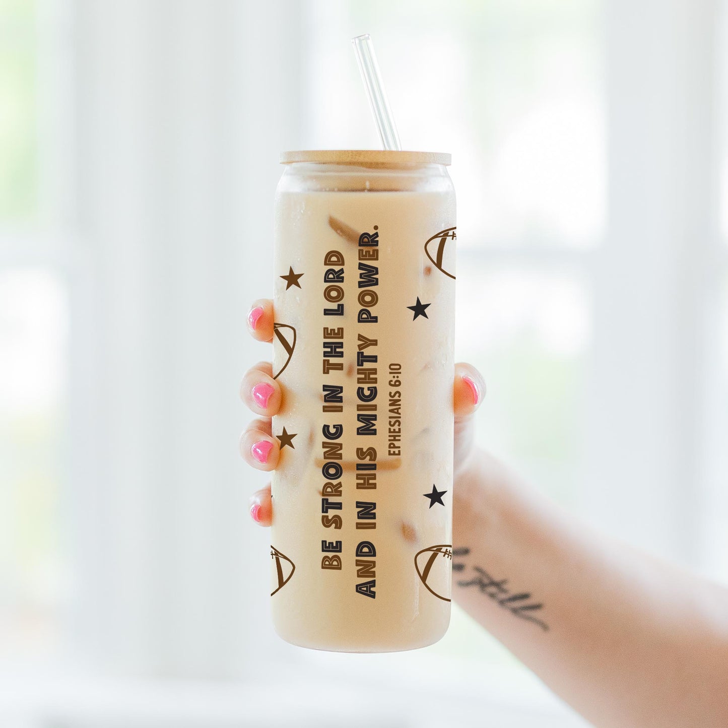 24oz Cold Brew Glass-Be Strong Football Brown & Black
