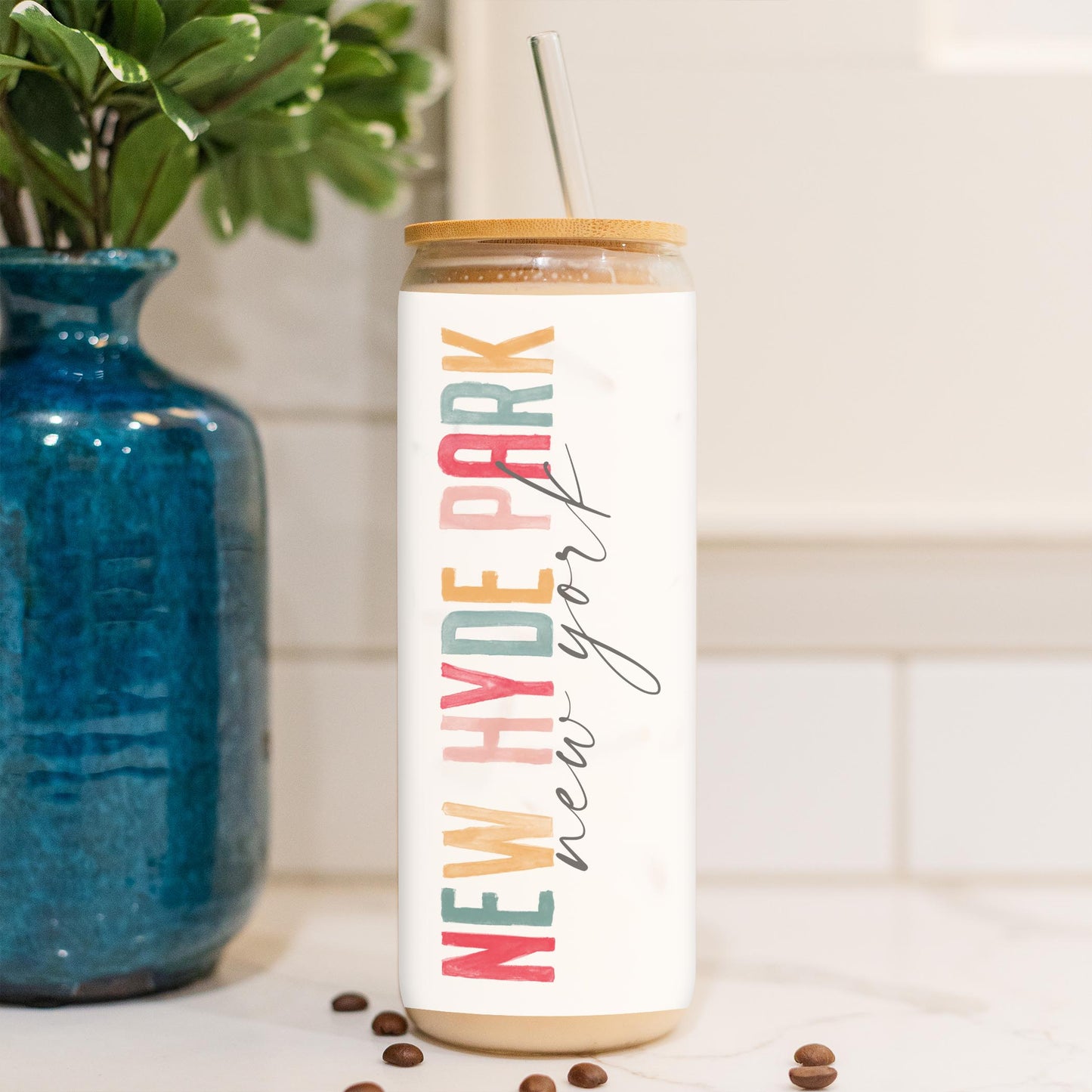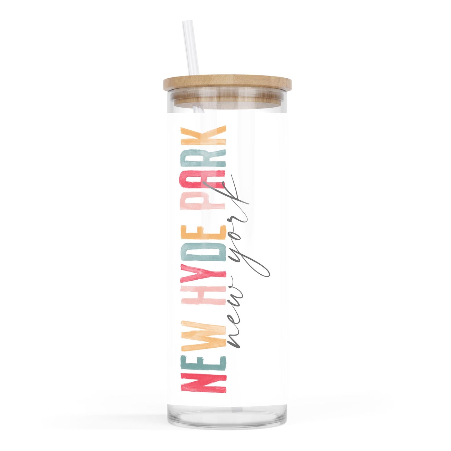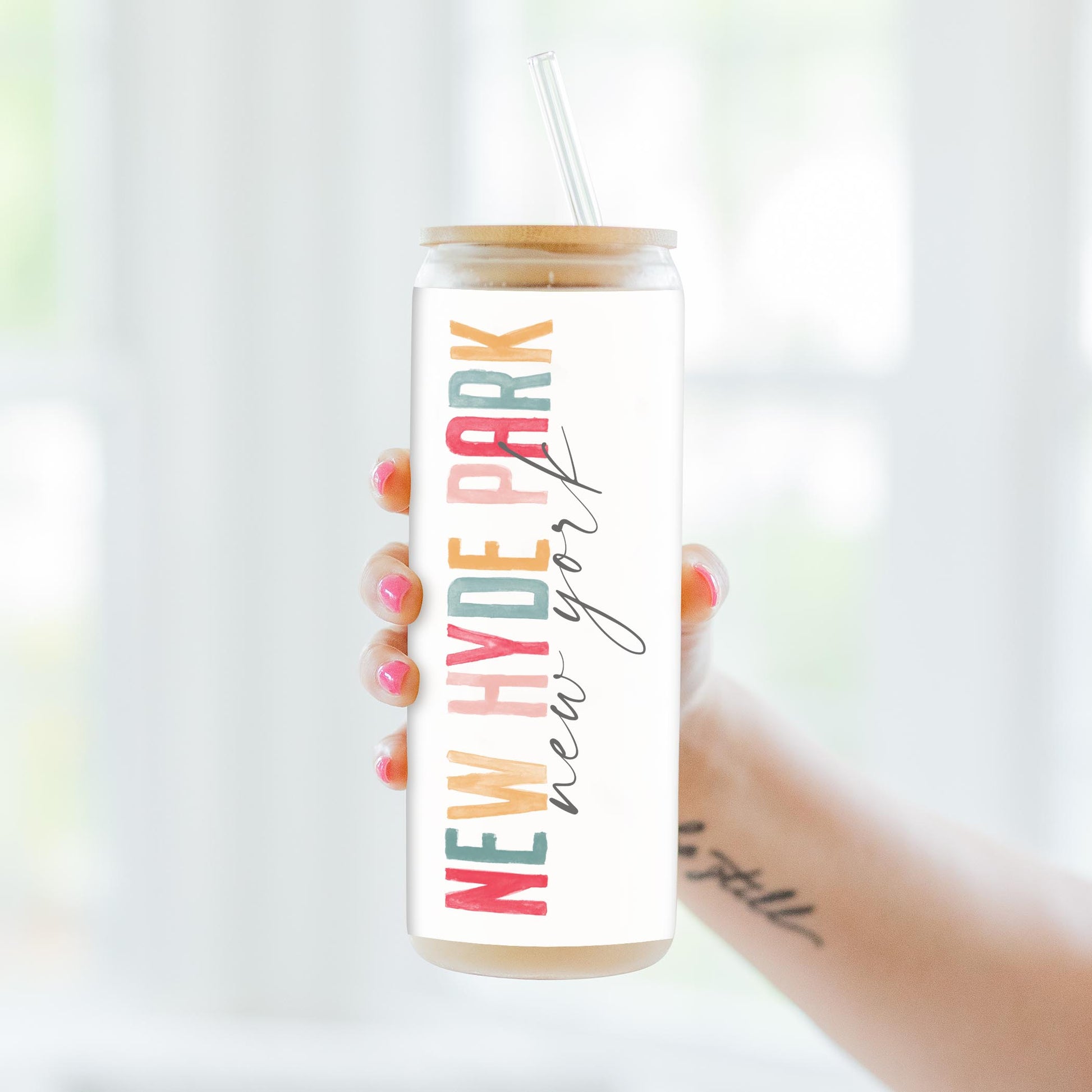24oz Cold Brew Glass-Watercolor City New Hyde Park NY