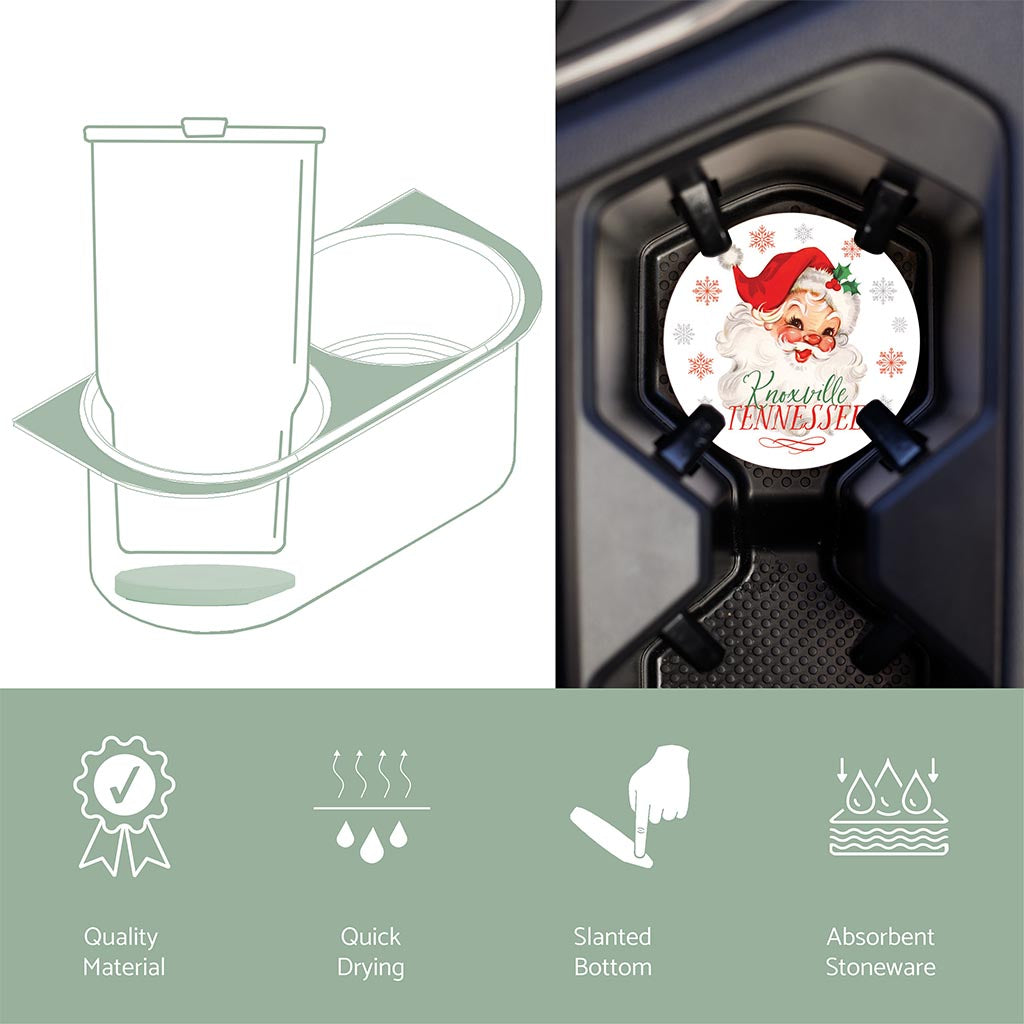 If you don’t know about car coasters yet…they’re a big deal. Like hair in the 80’s. You might ask yourself, “where have these been all my life?” Car coasters fit snuggly into your vehicle’s cup holders. Strategic divot on one side so they can be easily popped out. Pretty & practical – a pop of design and they keep your cup holders clean. 2.65” diameter. Absorbent ceramic coaster. Designed, printed and packaged in the USA