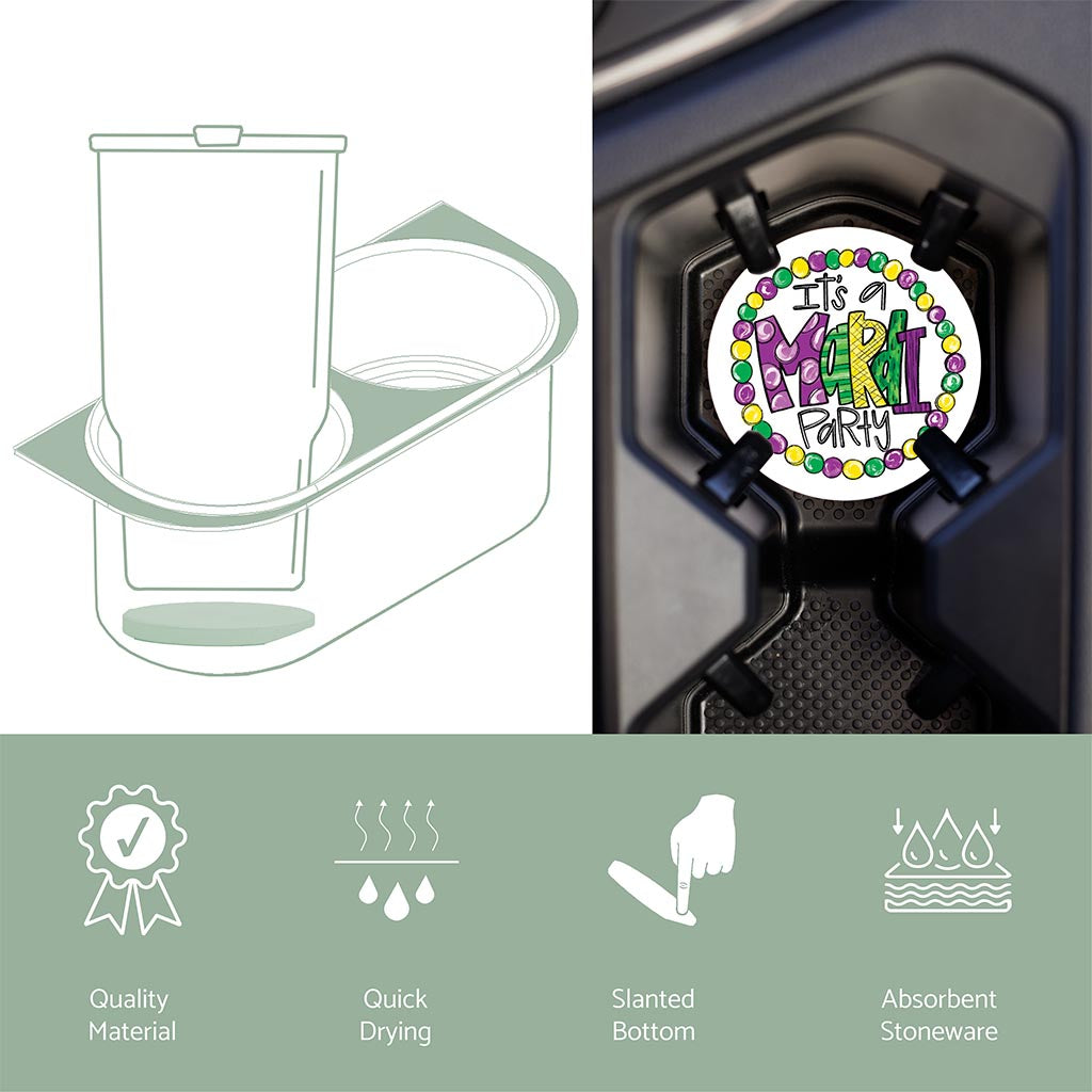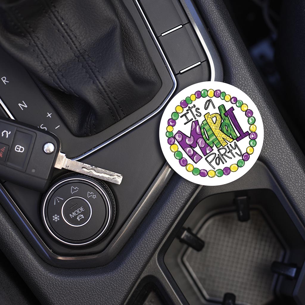 If you don’t know about car coasters yet…they’re a big deal. Like hair in the 80’s. You might ask yourself, “where have these been all my life?” Car coasters fit snuggly into your vehicle’s cup holders. Strategic divot on one side so they can be easily popped out. Pretty & practical – a pop of design and they keep your cup holders clean. 2.65” diameter. Absorbent ceramic coaster. Designed, printed and packaged in the USA