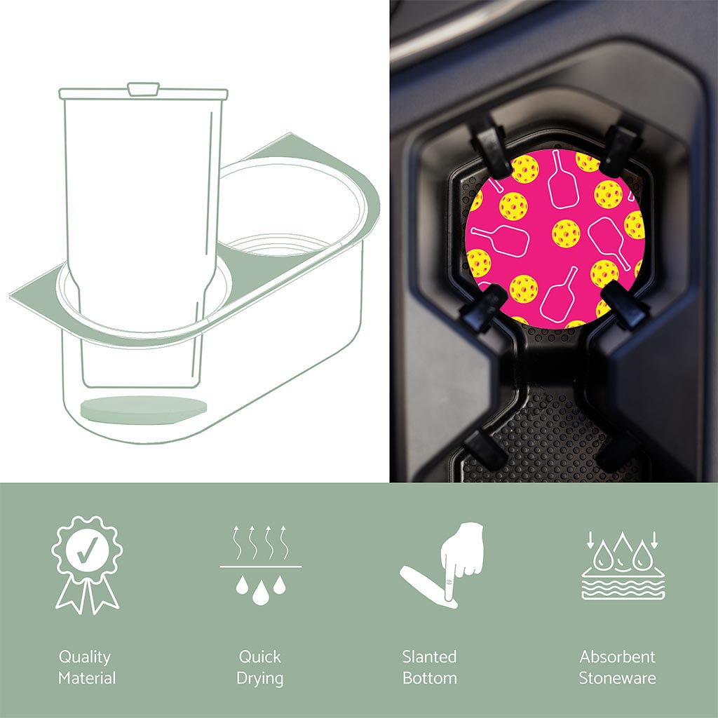 If you don’t know about car coasters yet…they’re a big deal. Like hair in the 80’s. You might ask yourself, “where have these been all my life?” Car coasters fit snuggly into your vehicle’s cup holders. Strategic divot on one side so they can be easily popped out. Pretty & practical – a pop of design and they keep your cup holders clean. 2.65” diameter. Absorbent ceramic coaster. Designed, printed and packaged in the USA