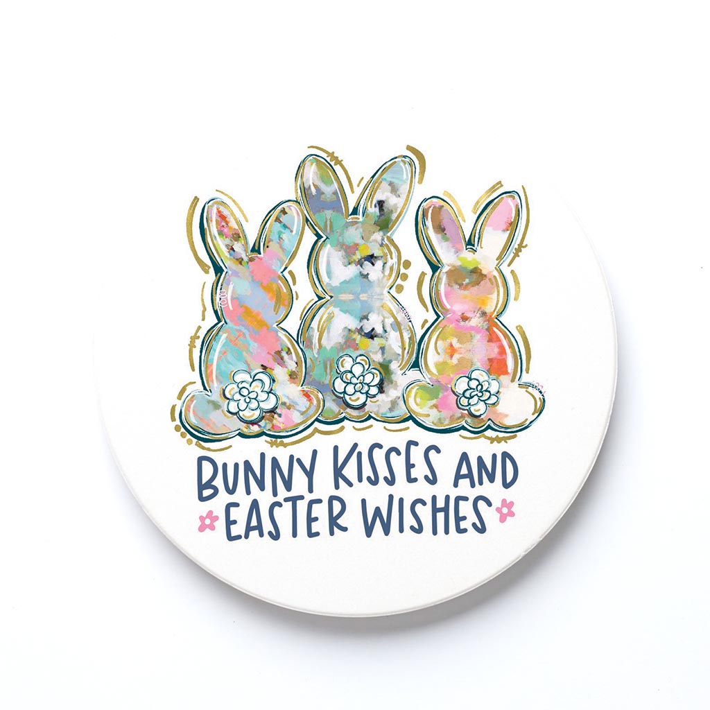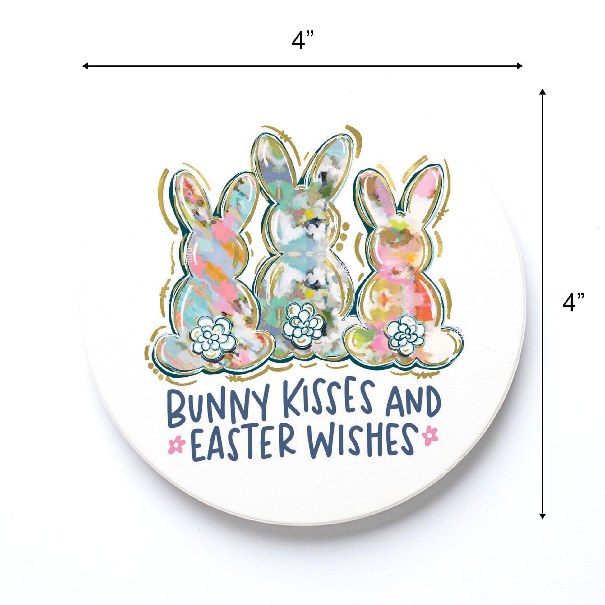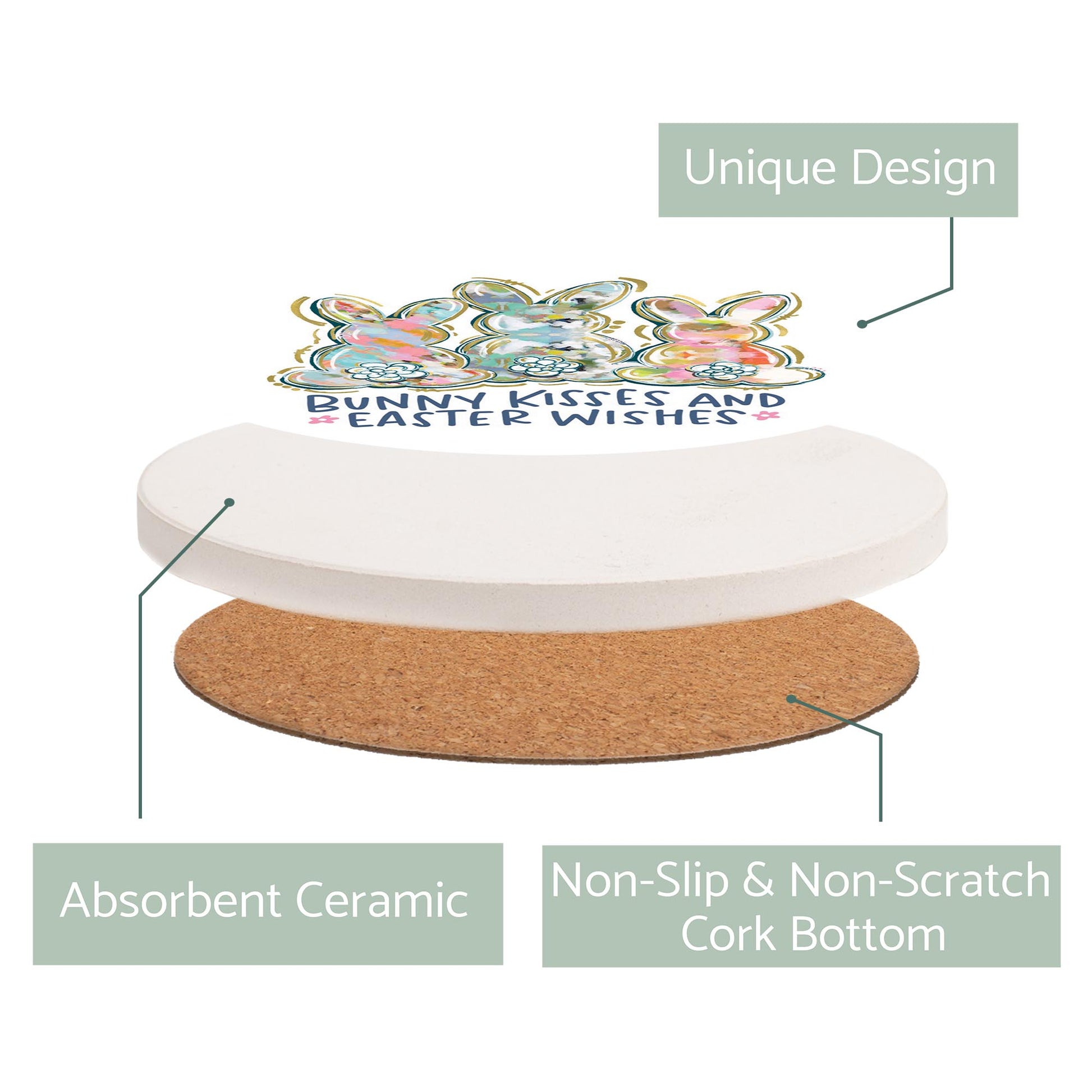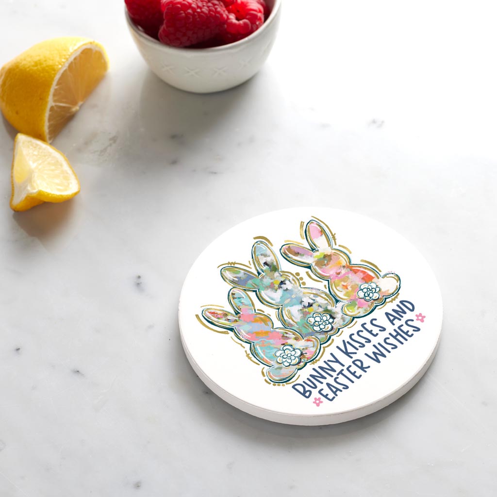 Ceramic Round Coaster-Bunny Kisses & Easter Wishes