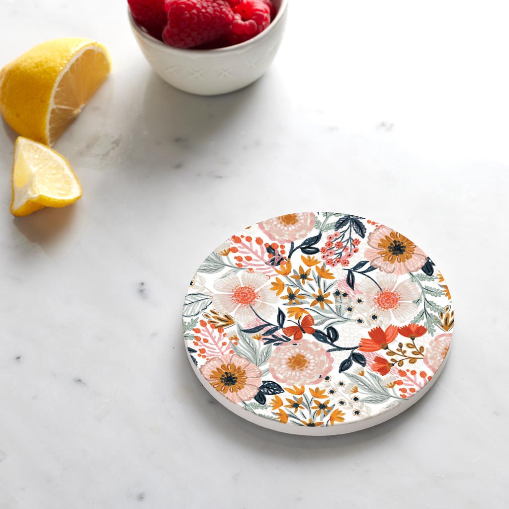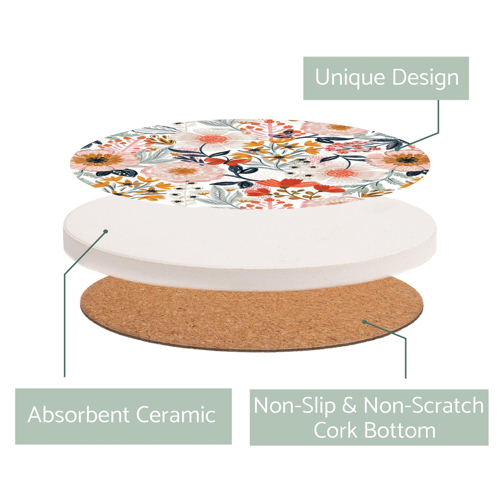 Ceramic Round Coaster-Pretty Things Floral Pattern