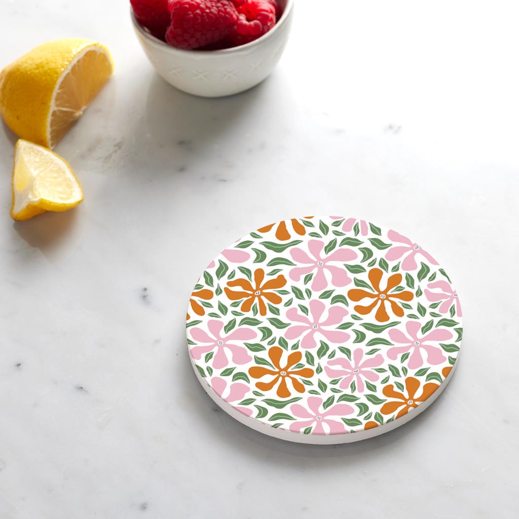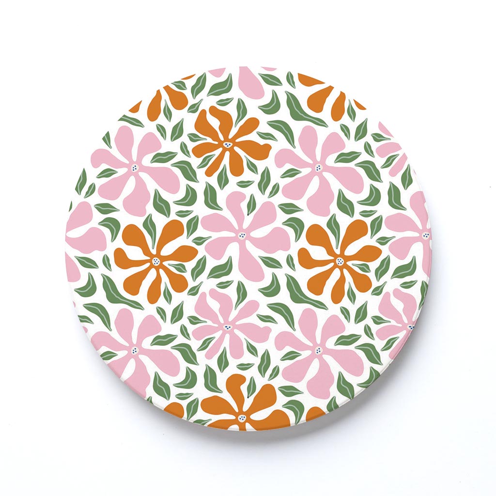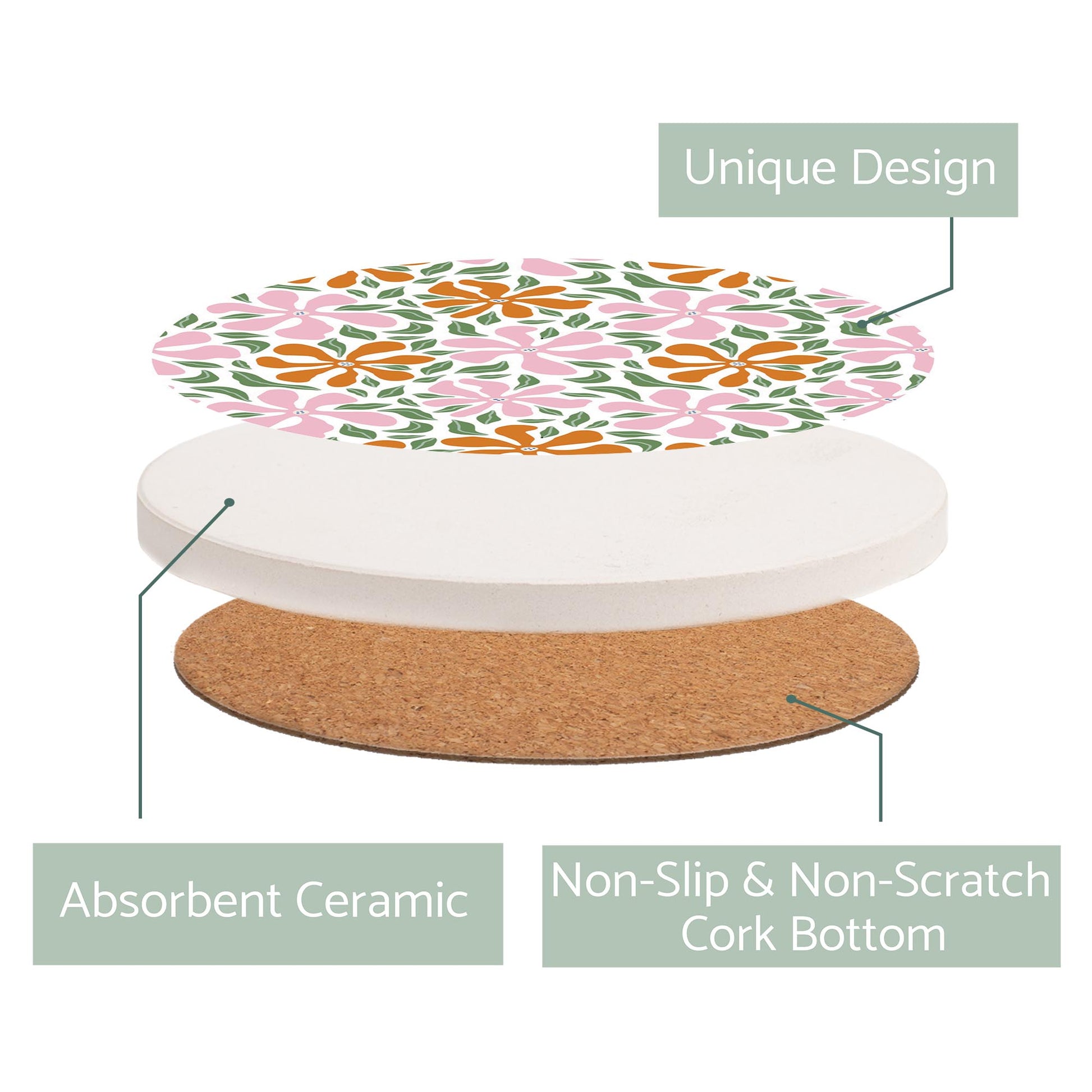 Ceramic Round Coaster-Spring Abstract Floral Pattern