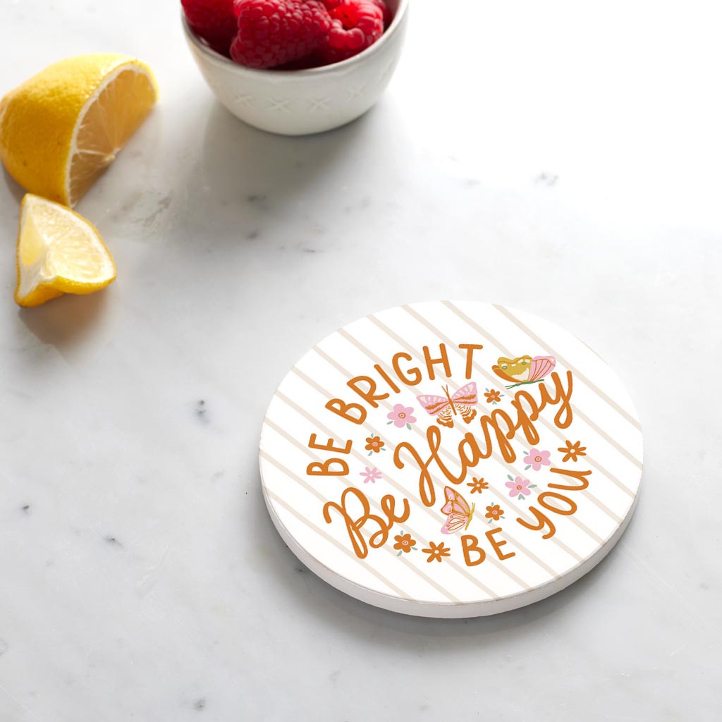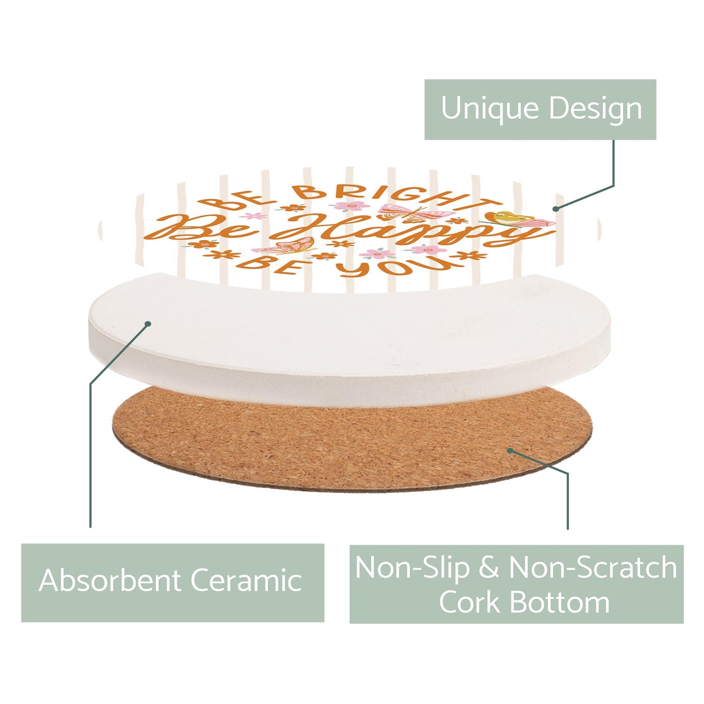 Ceramic Round Coaster-Spring Be Bright Be Happy