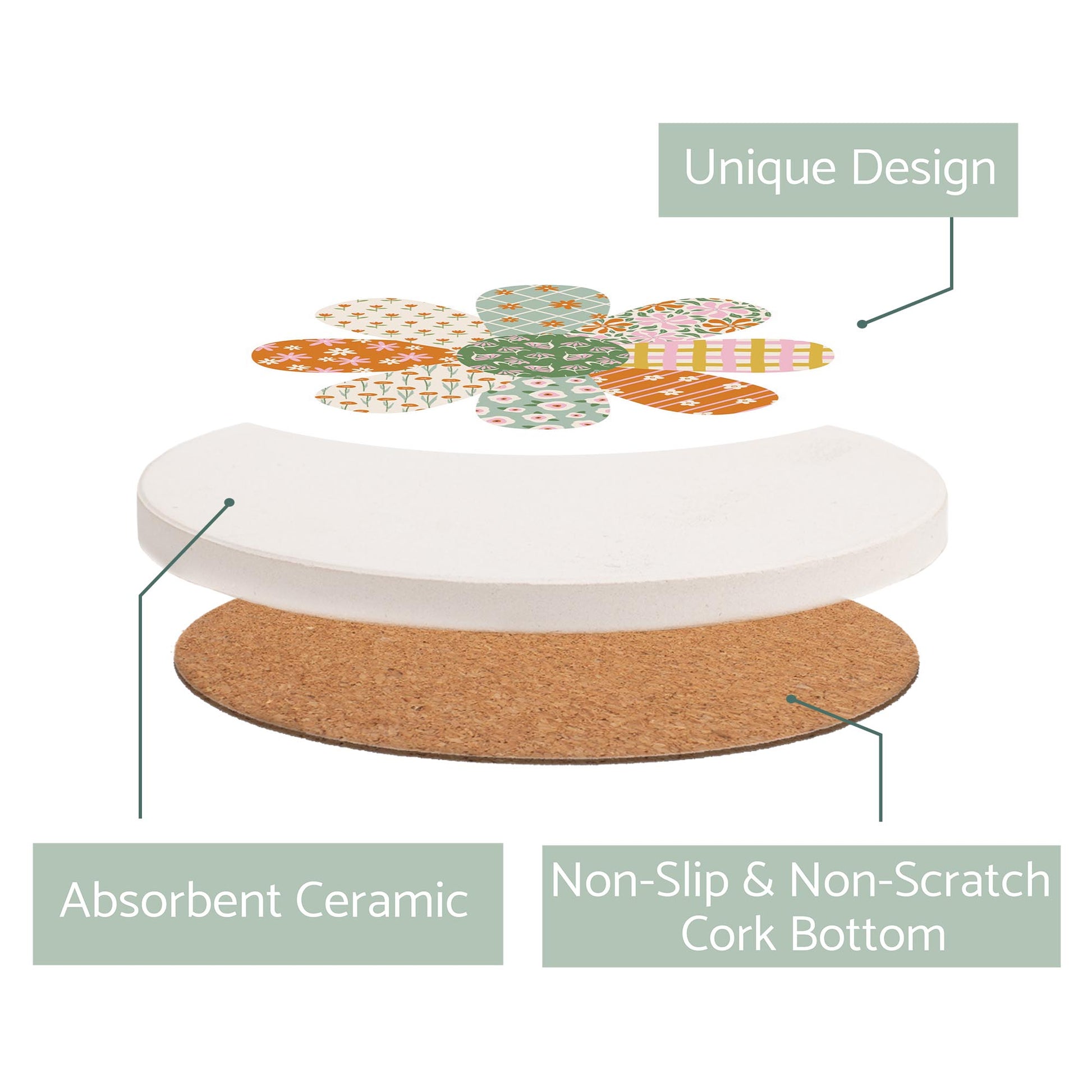 Serve up a little unexpected art in your daily ritual whether it’s your morning caffeine, afternoon sweet tea, or late-night cocktail. Or maybe you need a party icebreaker? These coasters will serve as a great conversation starter. 4” diameter. Absorbent ceramic coaster. Cork backing: eco-friendly, stays put and keeps surfaces safe. Gift worthy: hostess, birthday, holidays, hard-to-please got-it-all types. Wipe clean with a damp cloth. Designed, printed, and packaged in the USA.