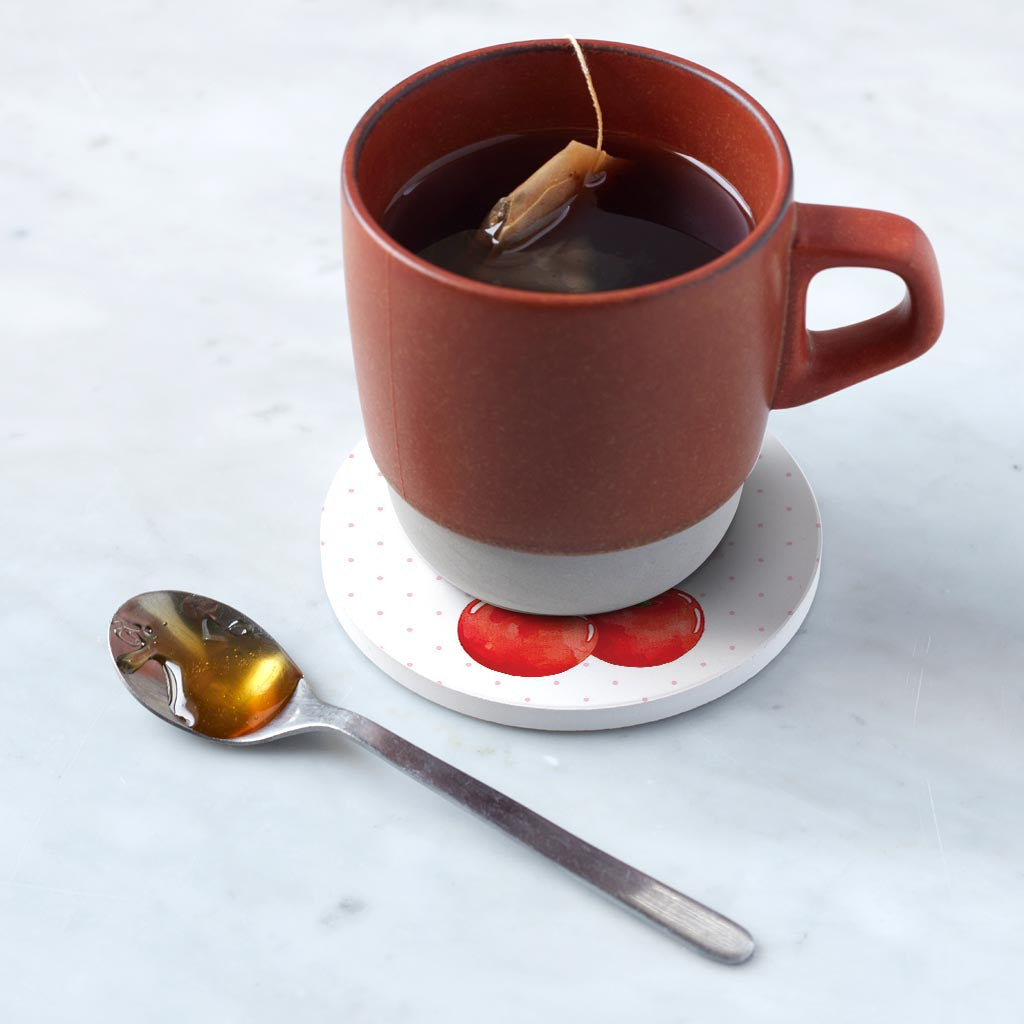 Serve up a little unexpected art in your daily ritual whether it’s your morning caffeine, afternoon sweet tea, or late-night cocktail. Or maybe you need a party icebreaker? These coasters will serve as a great conversation starter. 4” diameter. Absorbent ceramic coaster. Cork backing: eco-friendly, stays put and keeps surfaces safe. Gift worthy: hostess, birthday, holidays, hard-to-please got-it-all types. Wipe clean with a damp cloth. Designed, printed, and packaged in the USA.