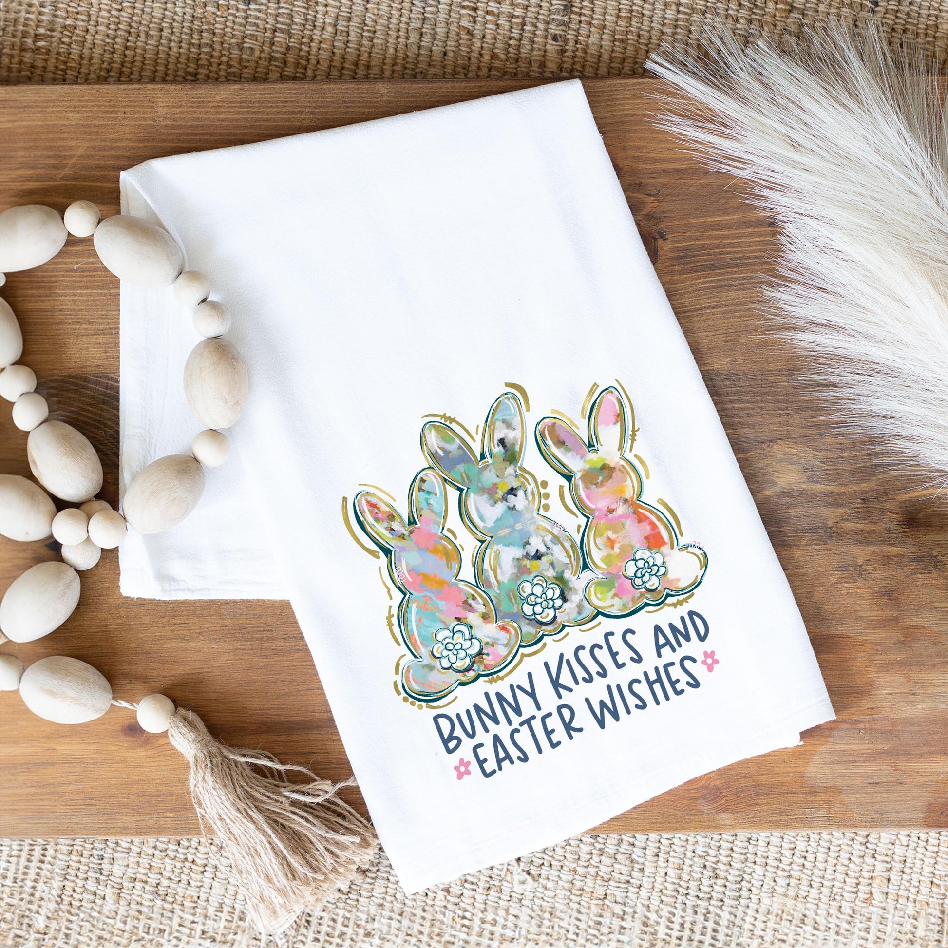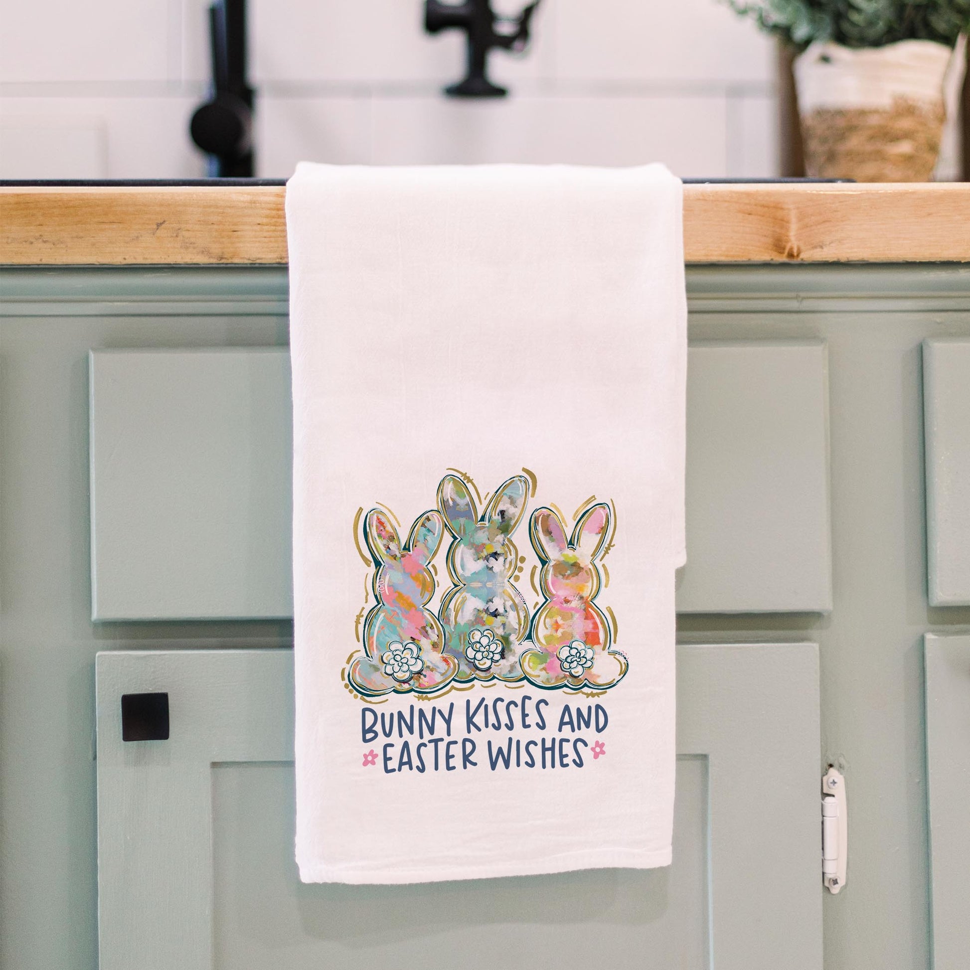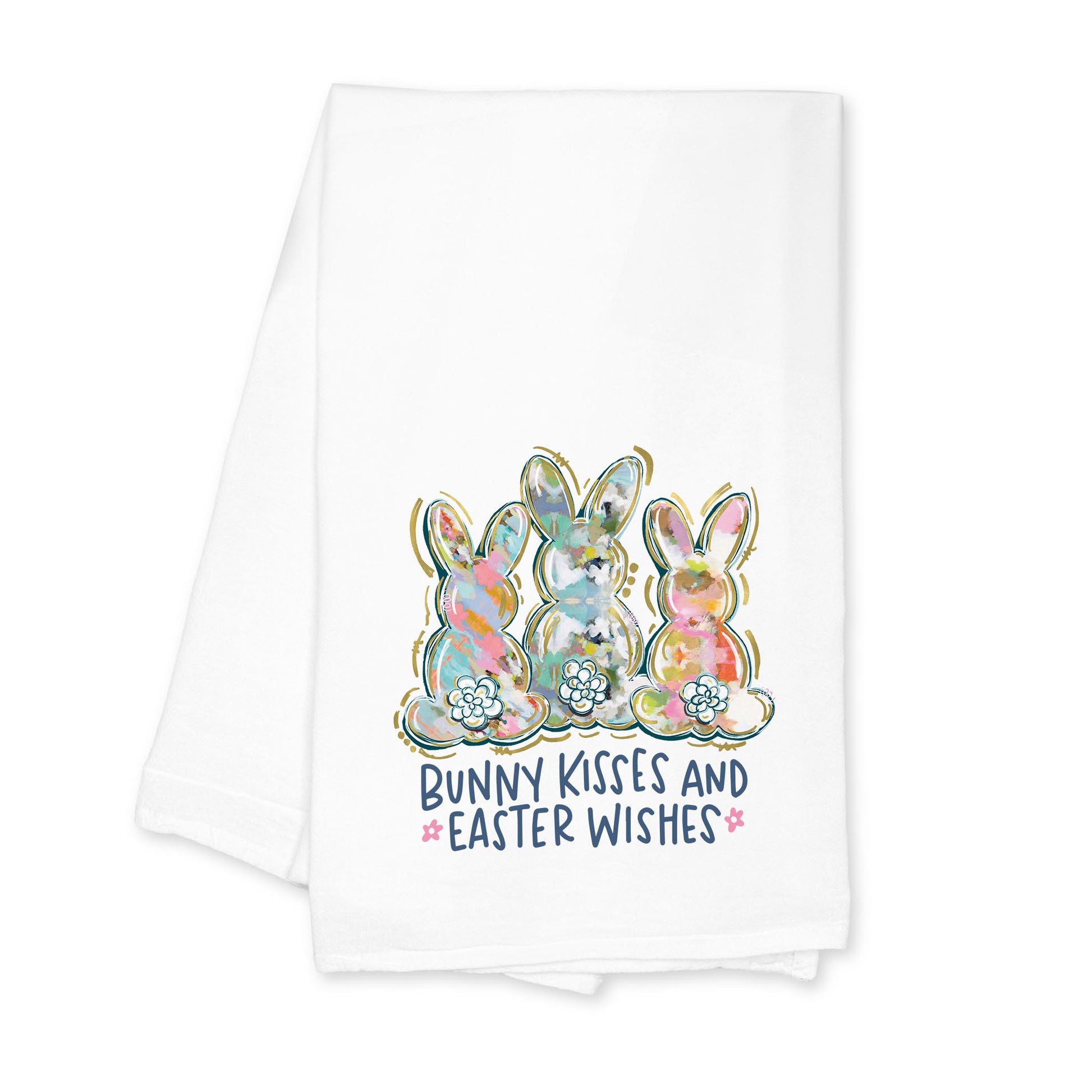Cotton Tea Towel White-Bunny Kisses & Easter Wishes