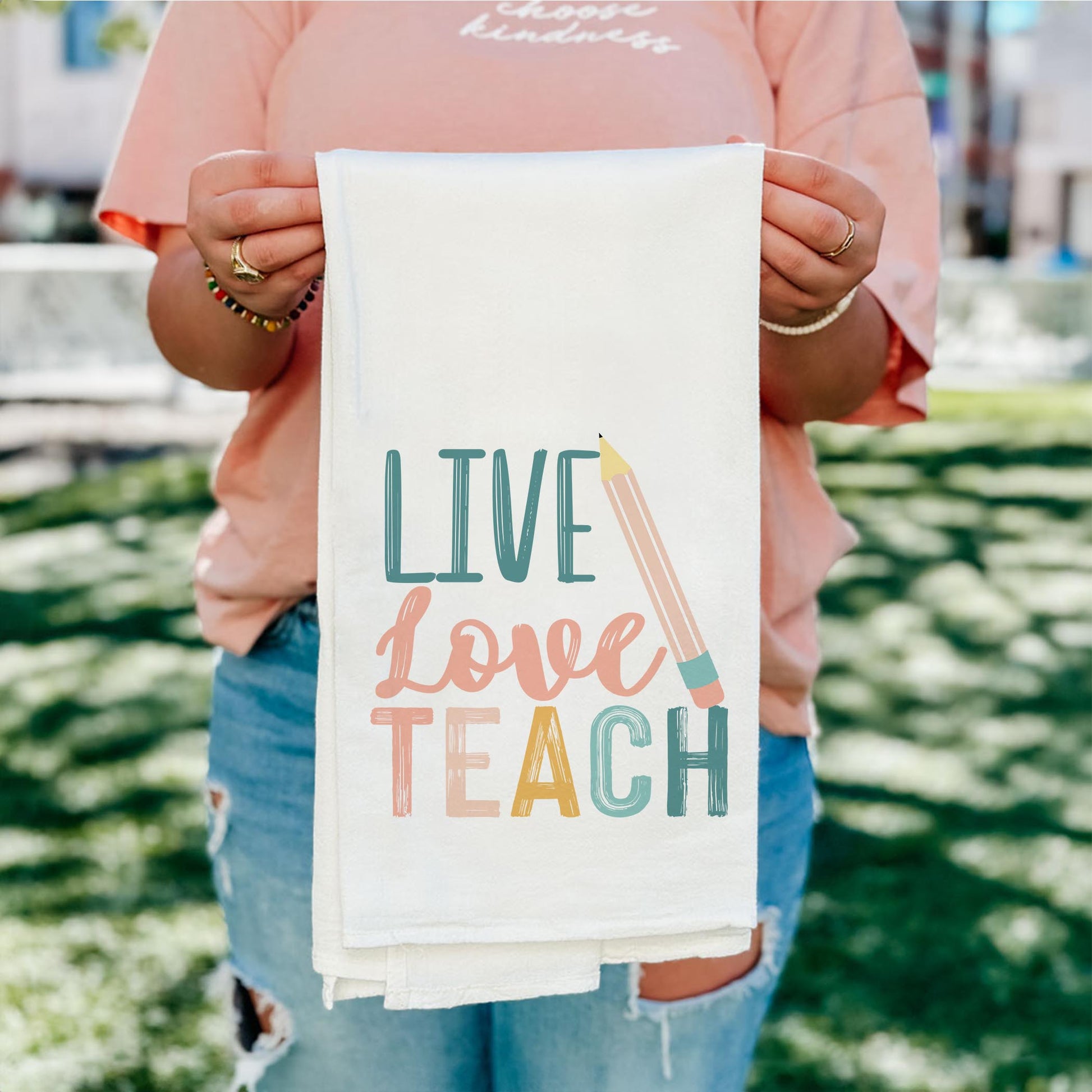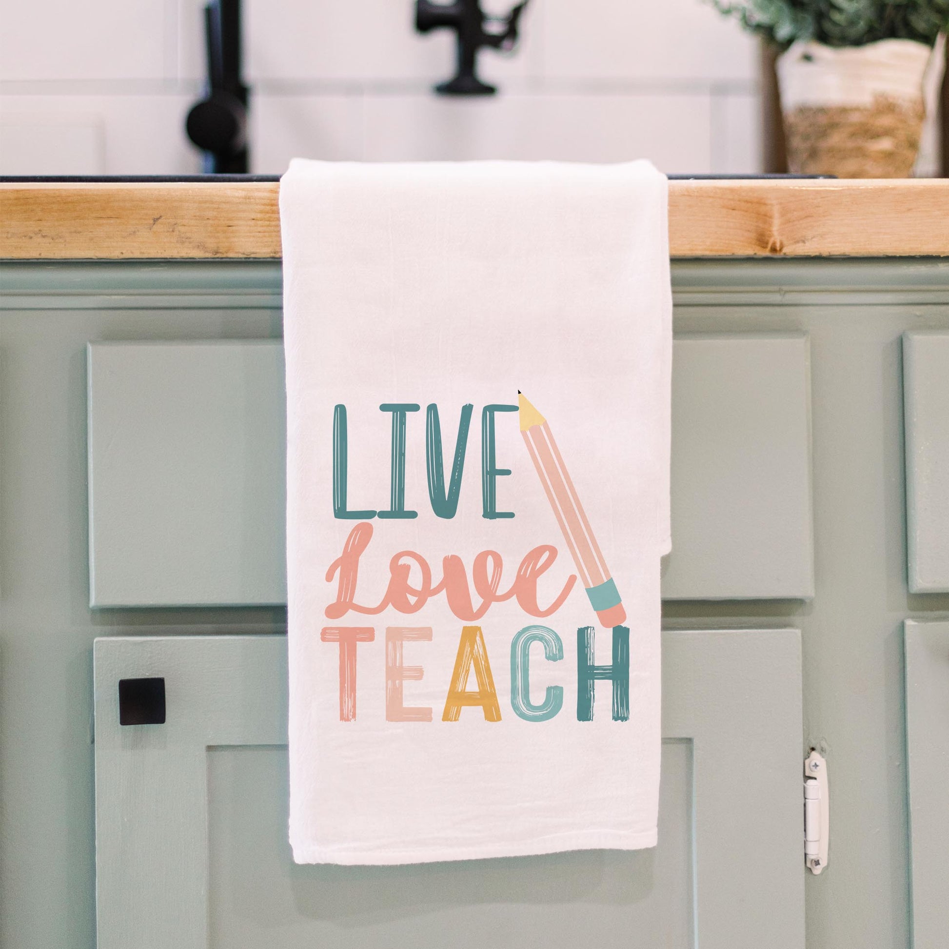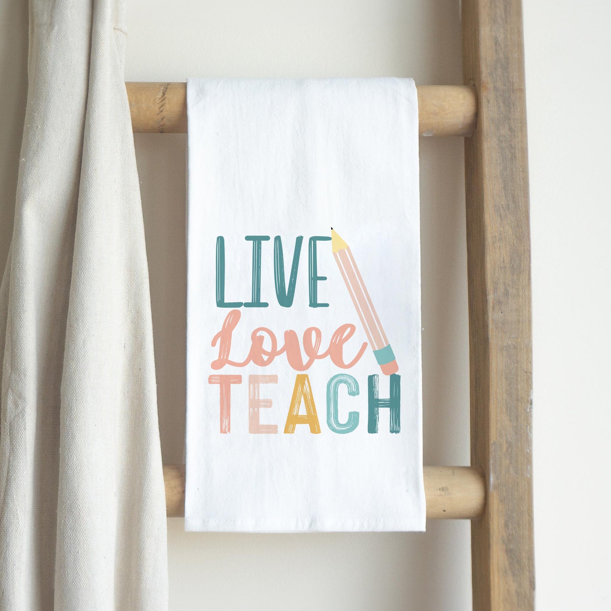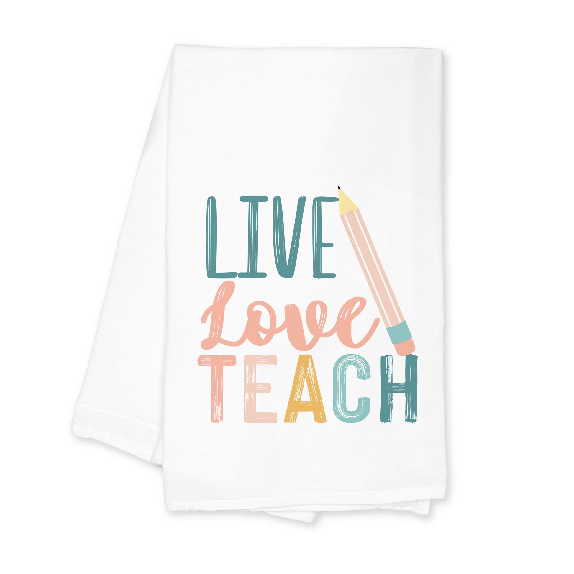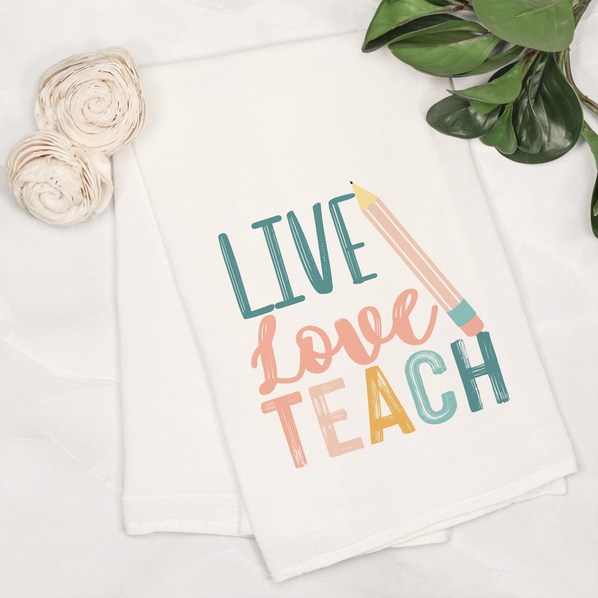 Cotton Tea Towel White-Live Love Teach