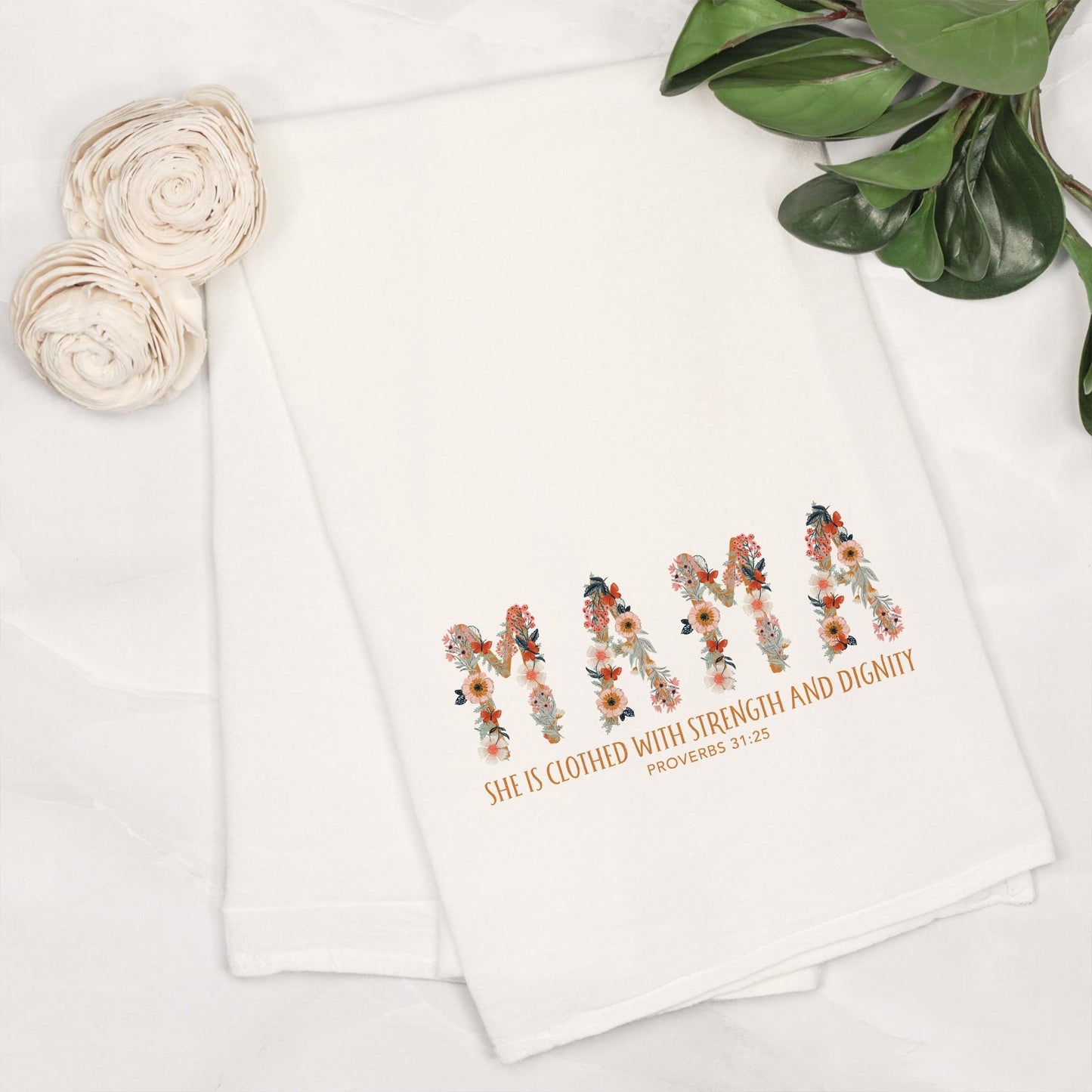 Cotton Tea Towel White-Pretty Things Floral Faith Mama