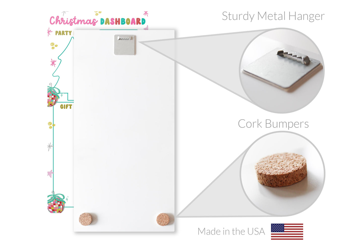 Glass, dry erase trackers. Wall mounted for great visibility to monitor your bucket lists, leave a love note, or remind the kids to walk the dog!