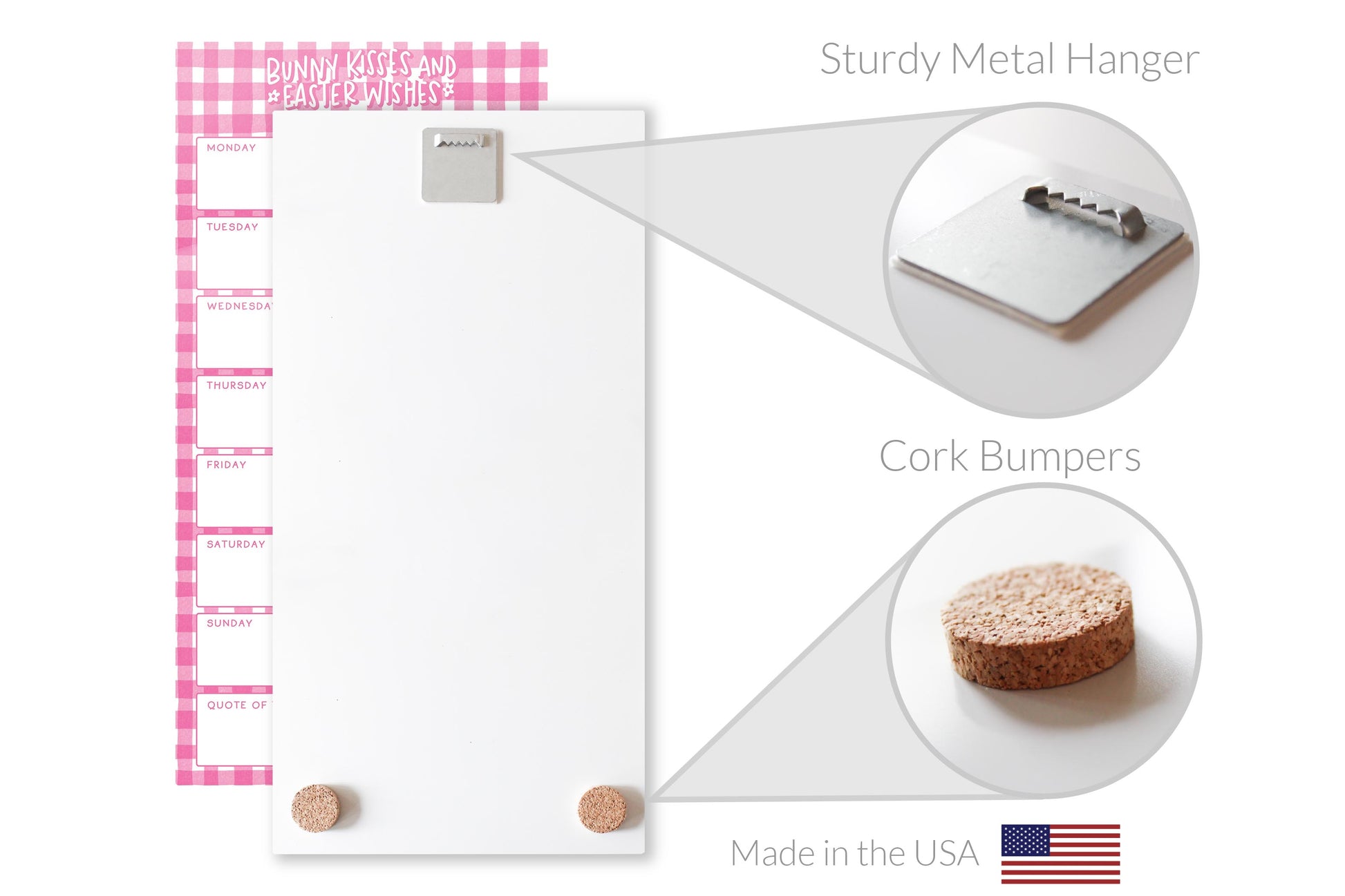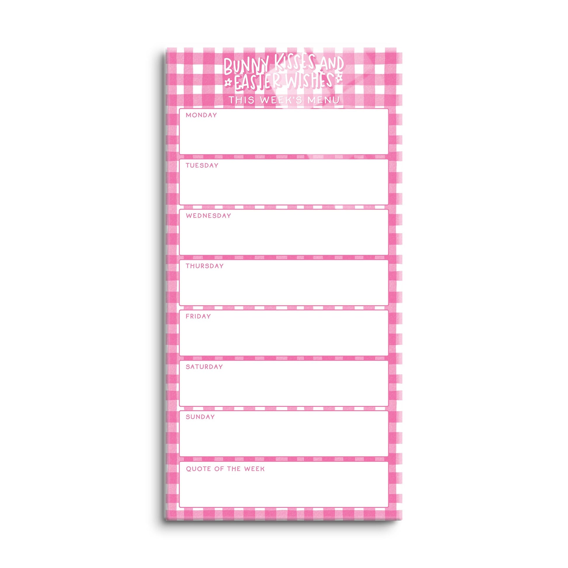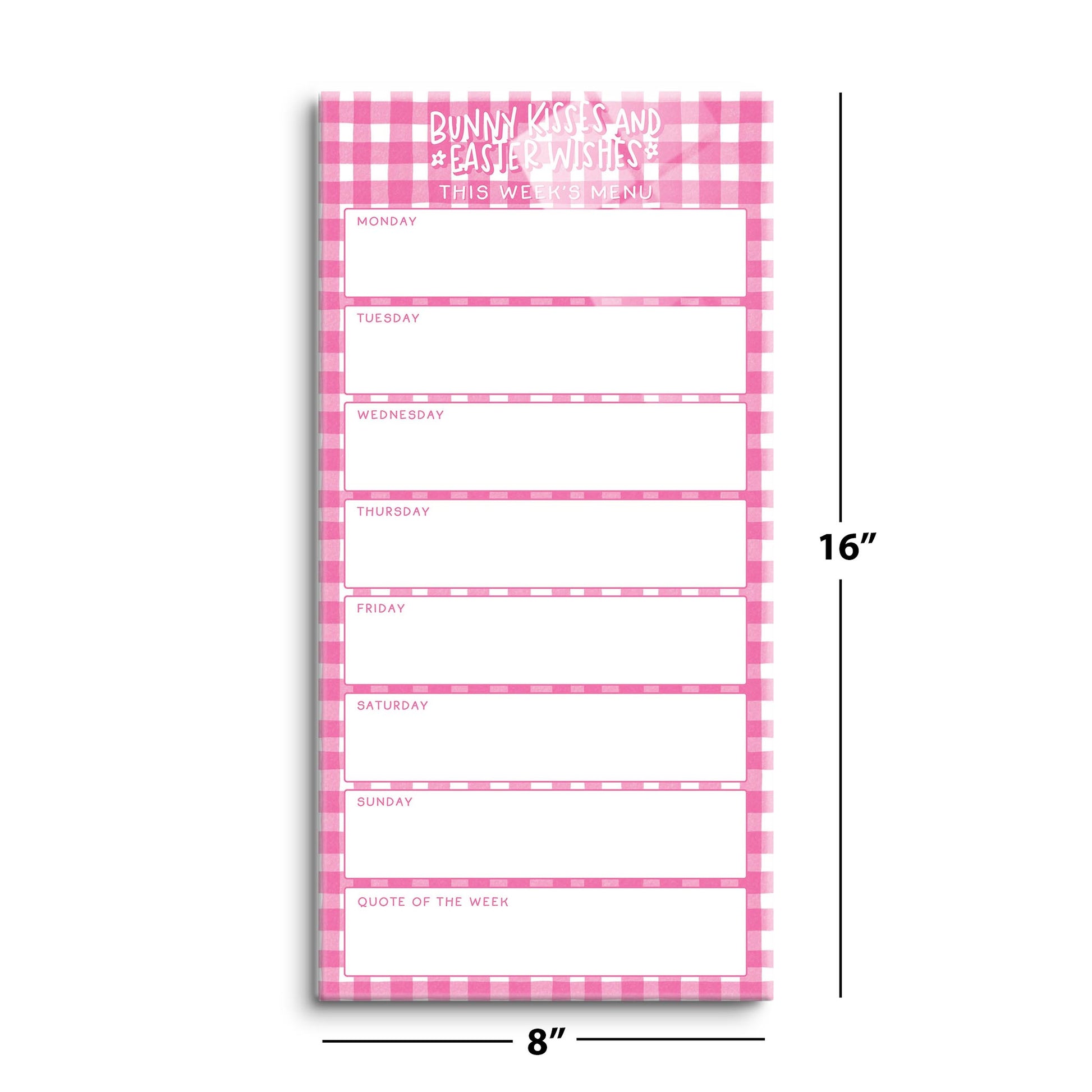 8x16 Glass Dry Erase-Pink Plaid Pattern Weekly Menu