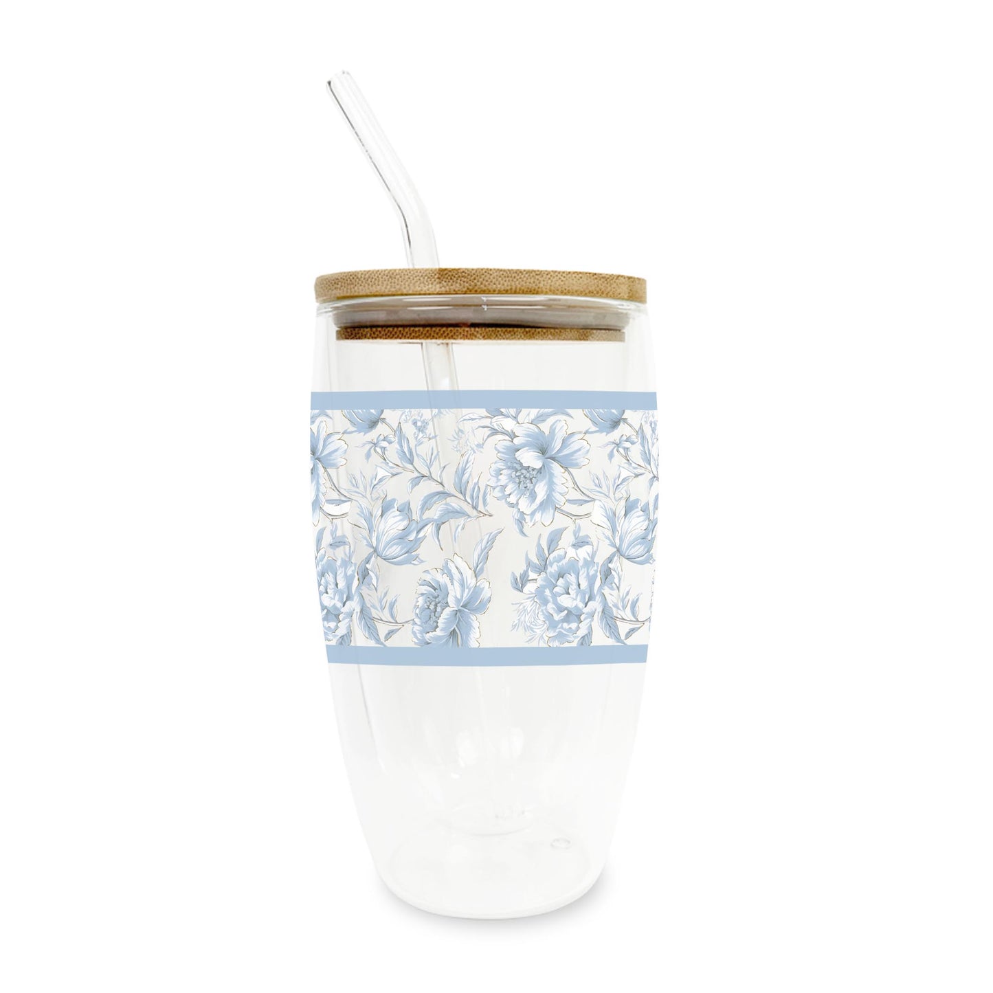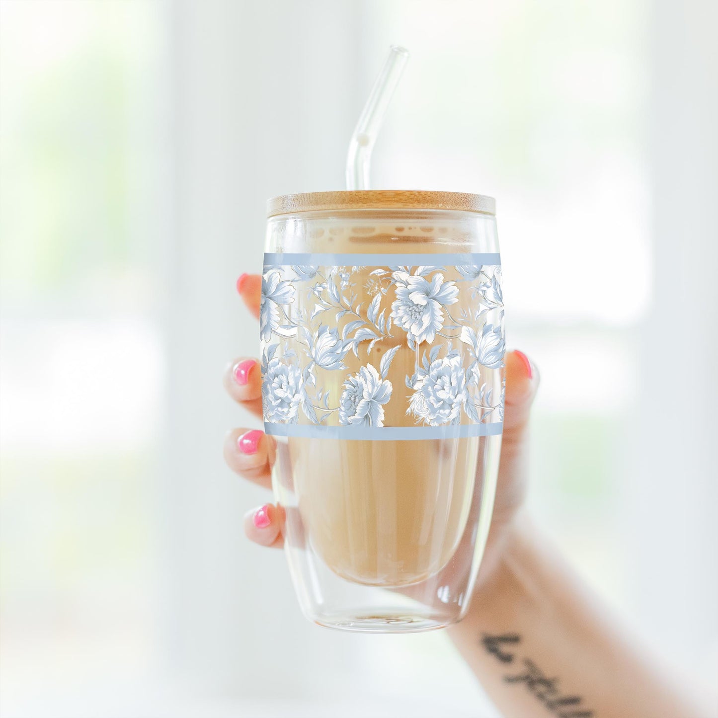 16oz Double Insulated Glass Tumbler-Chinoiserie Chic Floral Wispy Pattern