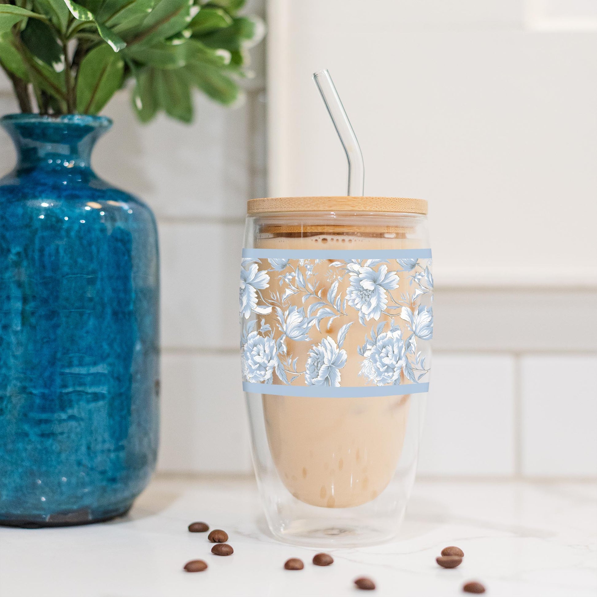 Elevate your favorite chilled beverage with our 16oz Insulated Glass Cup. These Glass Cups come with a glass straw and bamboo lid. It's perfectly sized to hold your favorite cold brew, smoothie, cocktail, or refresher. These glass cups are insulated and will hold ice anywhere from 3-4 hours, and the insulation keeps the glass from sweating.