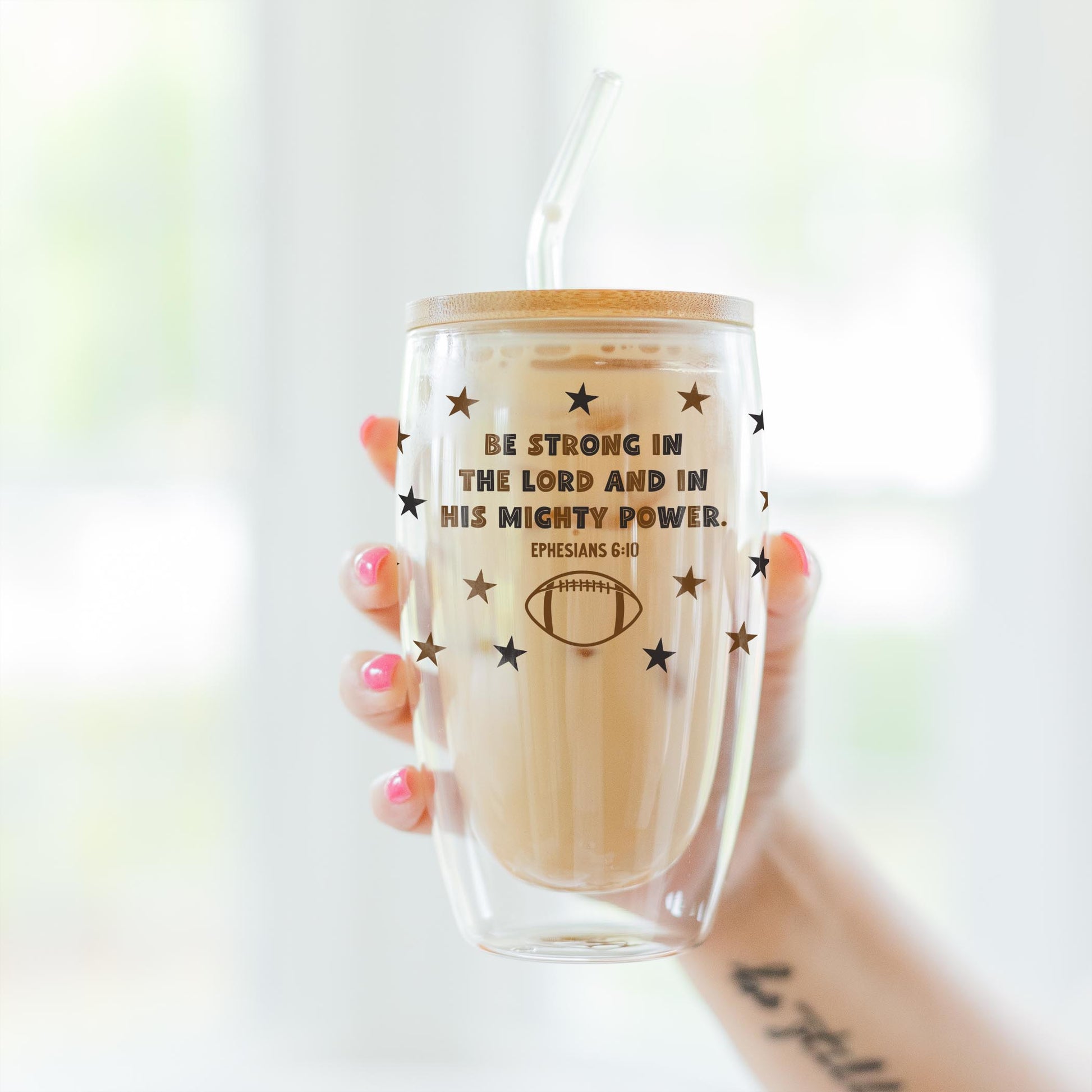 16oz Double Insulated Glass Tumbler-Game Day Football Be Strong