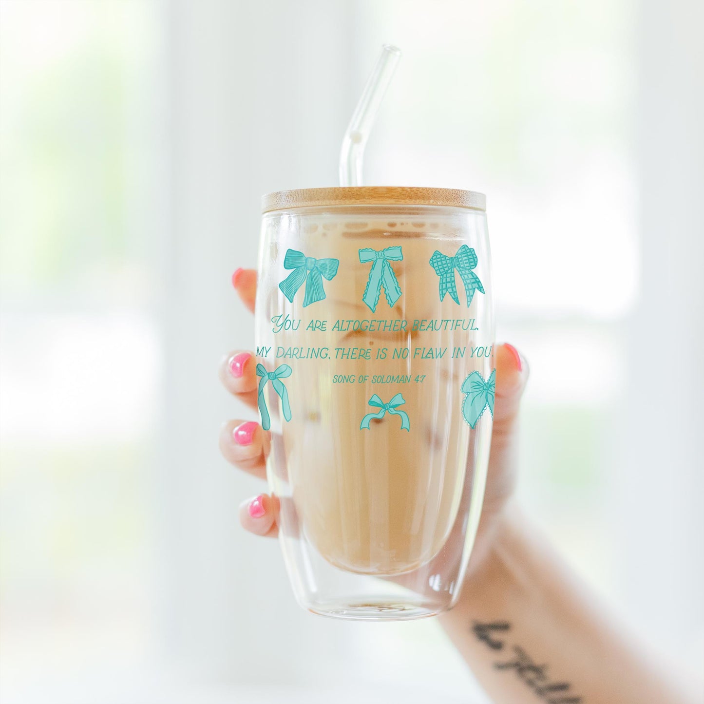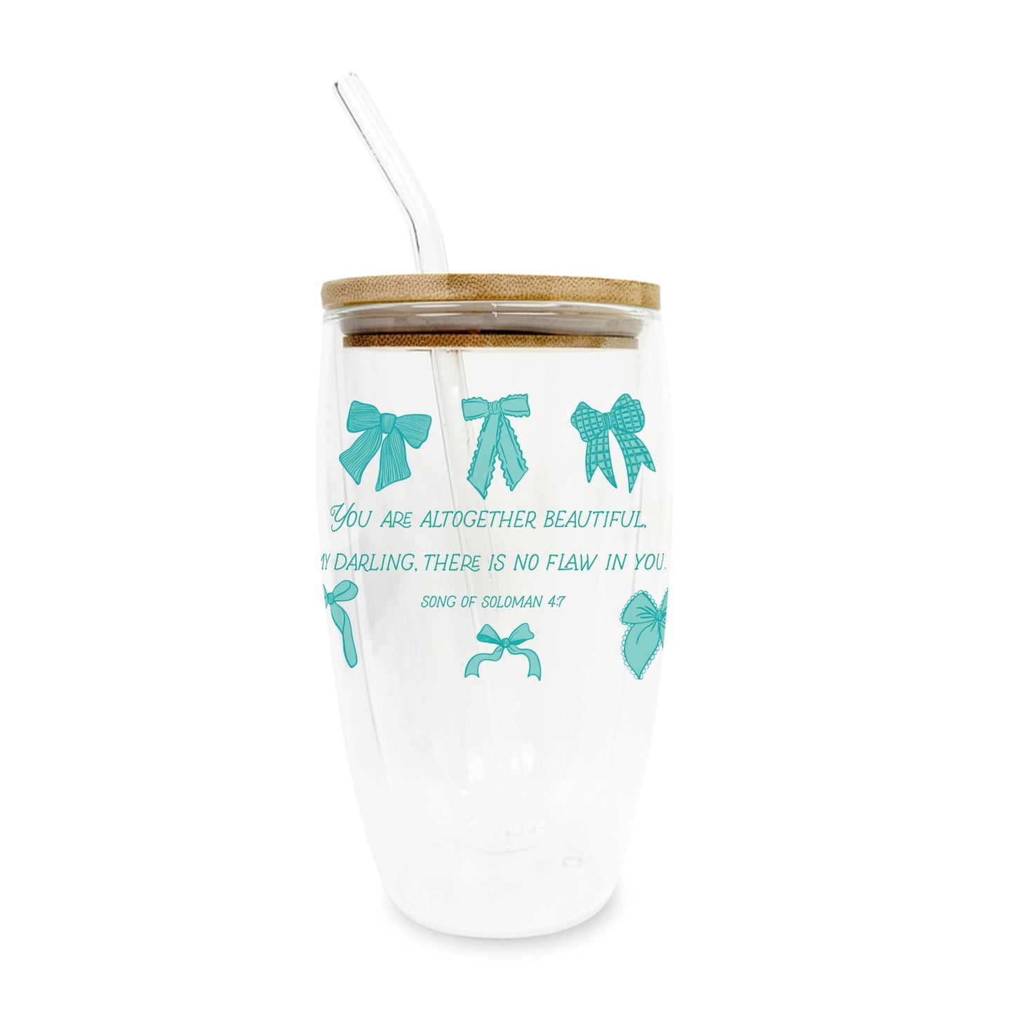 16oz Double Insulated Glass Tumbler-Inspirational Bows Blue Altogether Beautiful