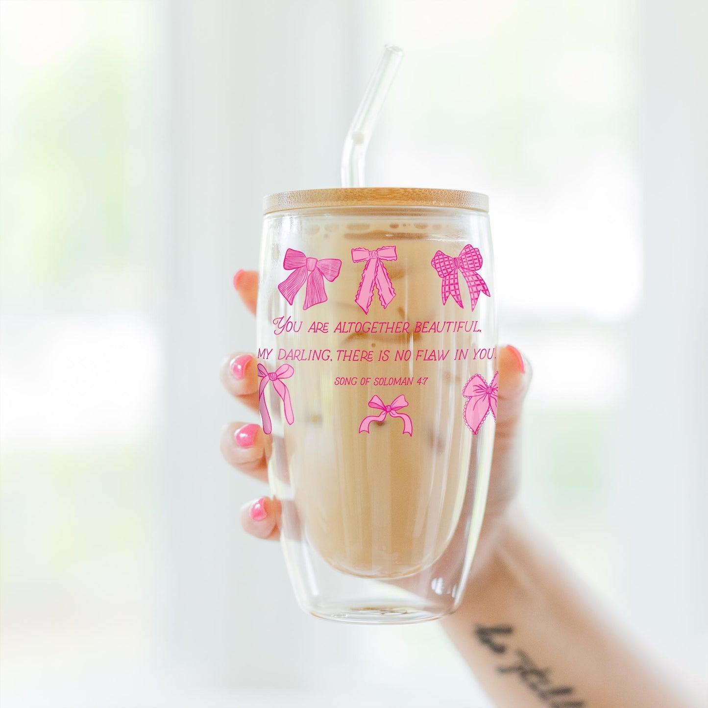 16oz Double Insulated Glass Tumbler-Inspirational Bows Pink Altogether Beautiful