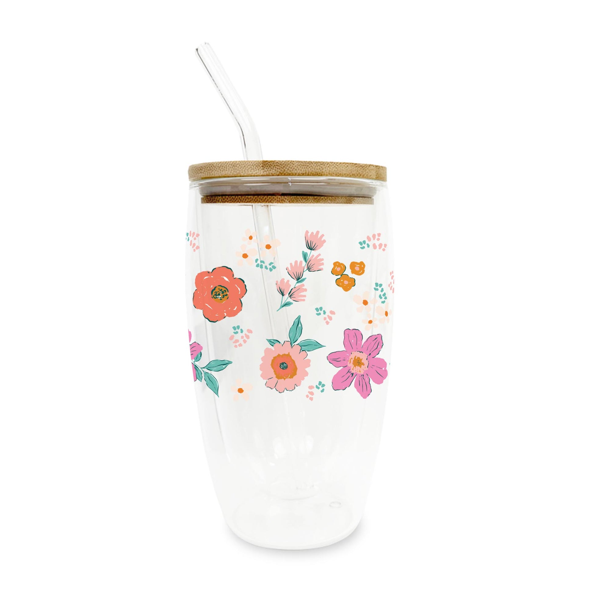 16oz Double Insulated Glass Tumbler-Kalia Floral Pattern