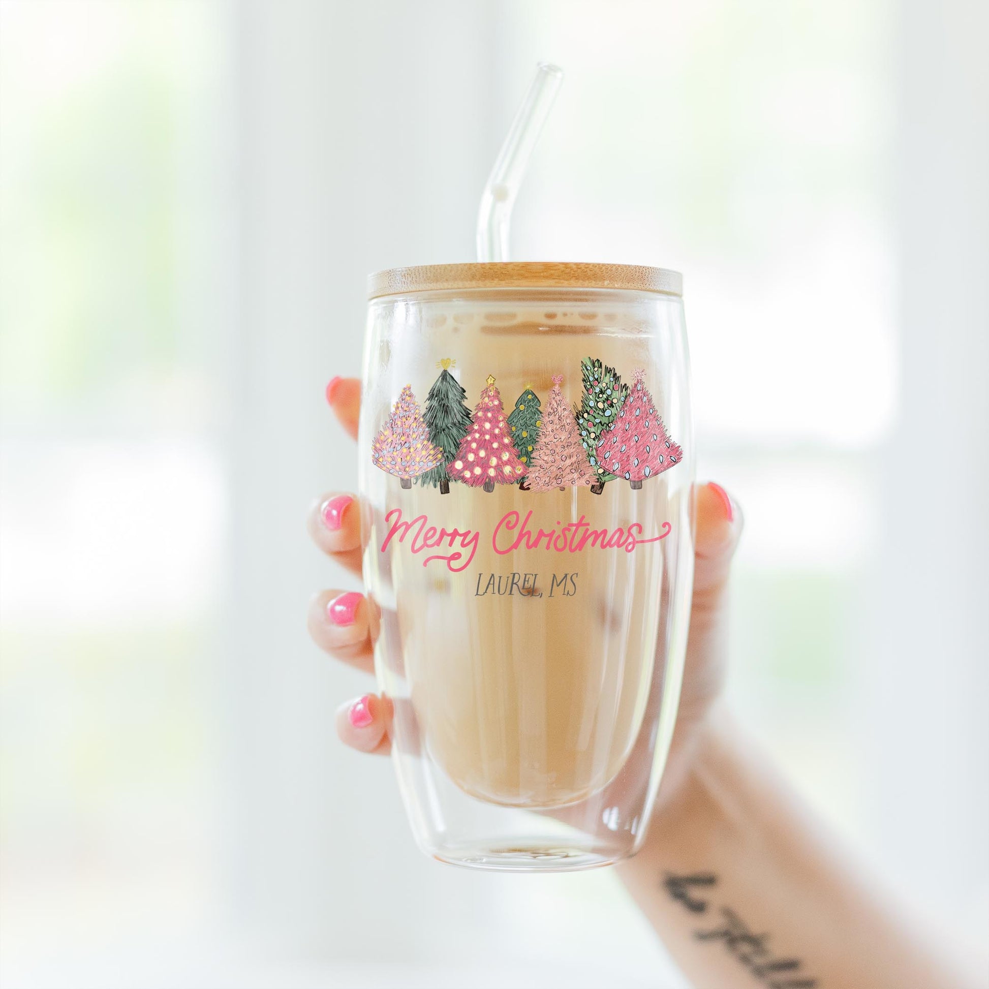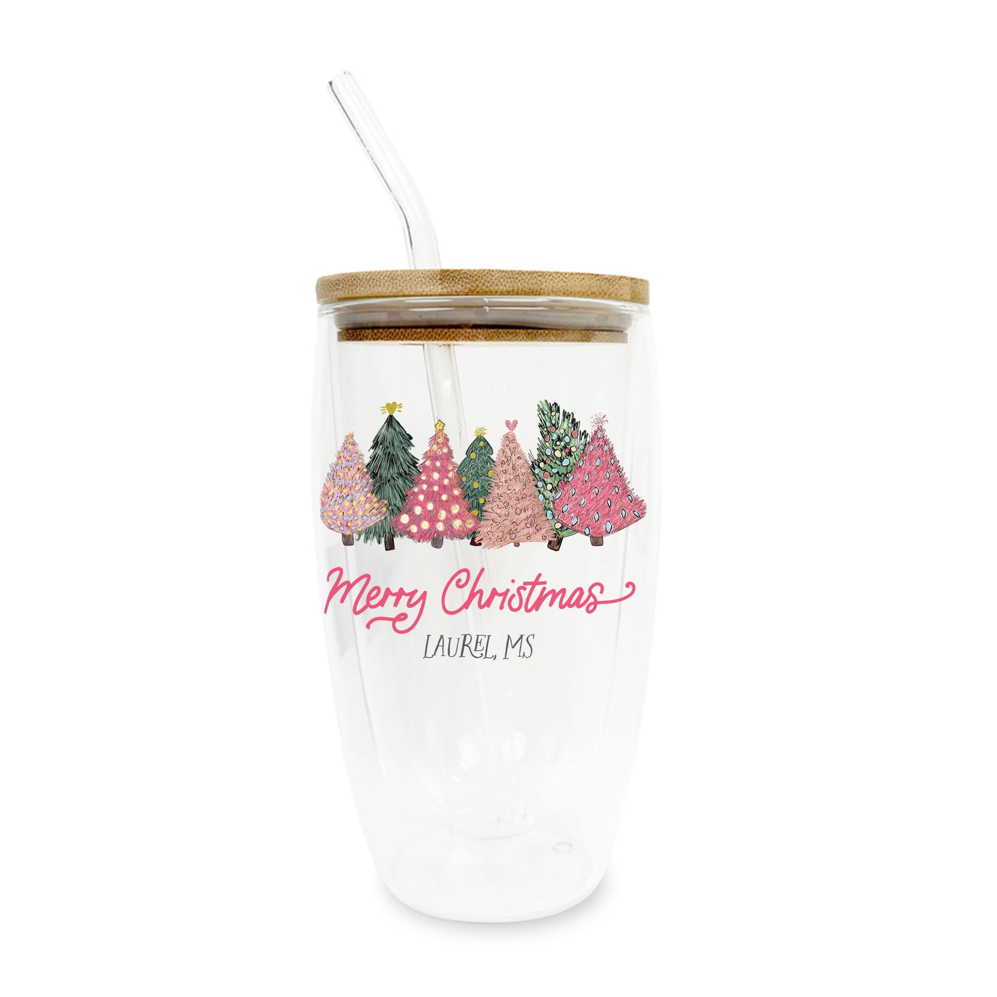 16oz Double Insulated Glass Tumbler-L+L Pink Trees