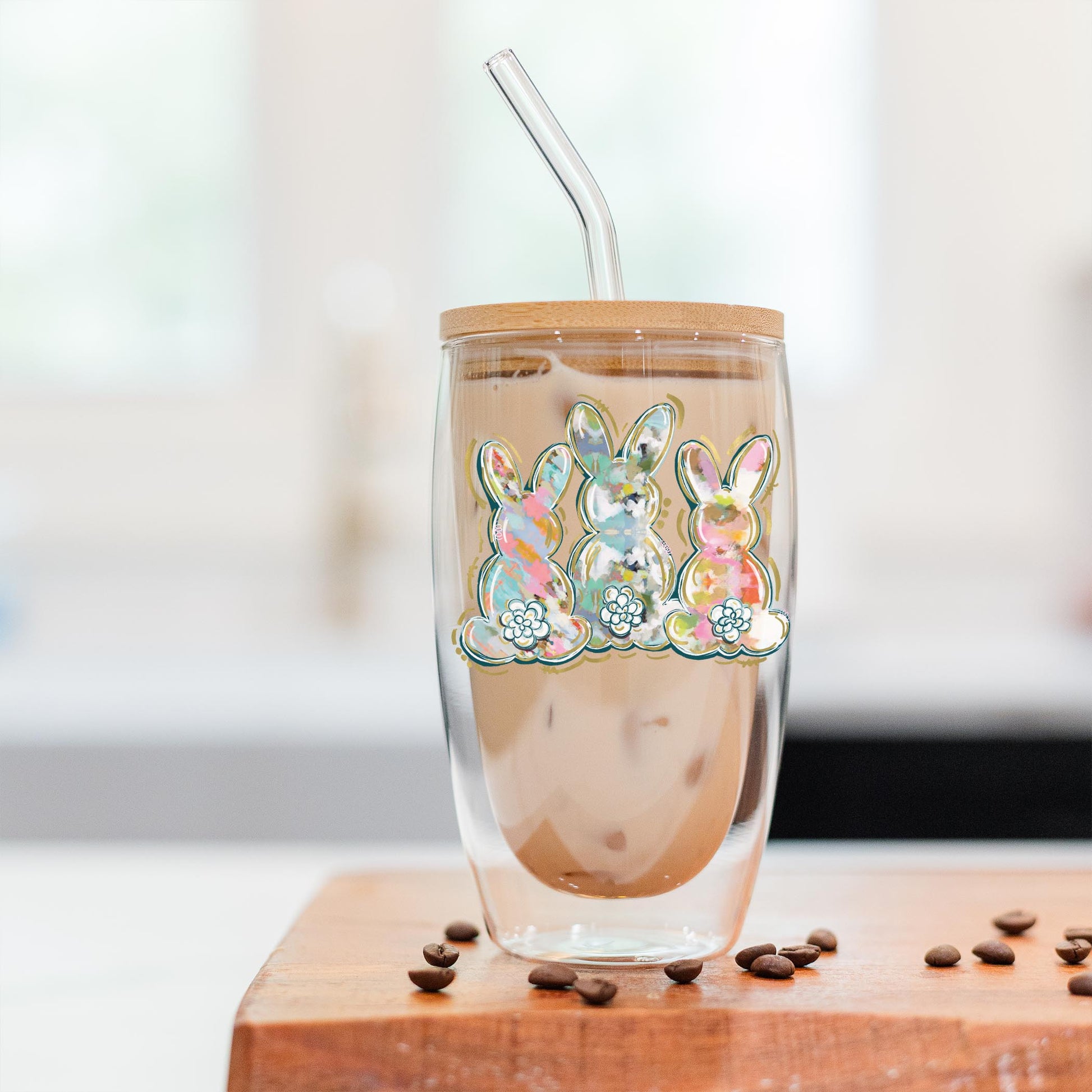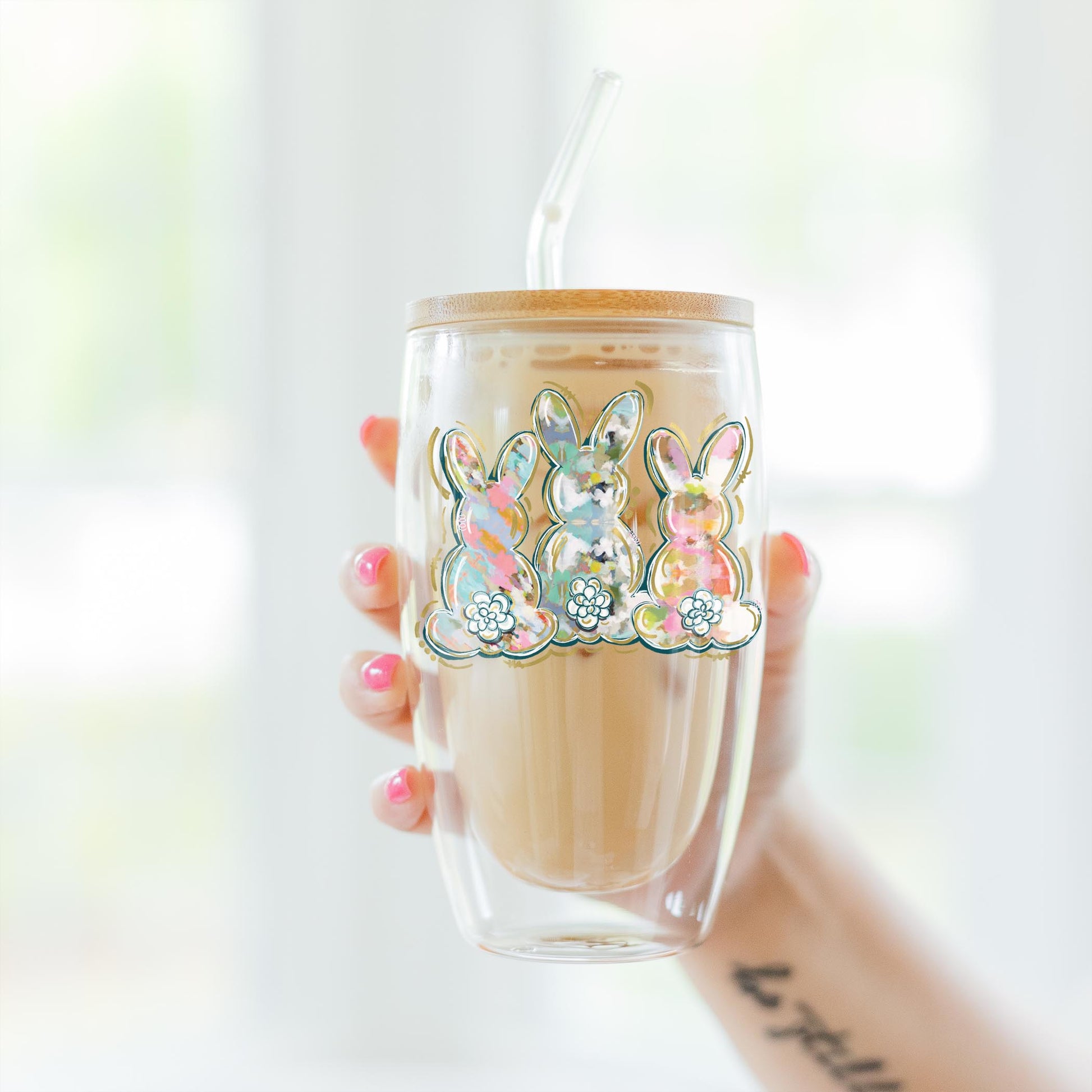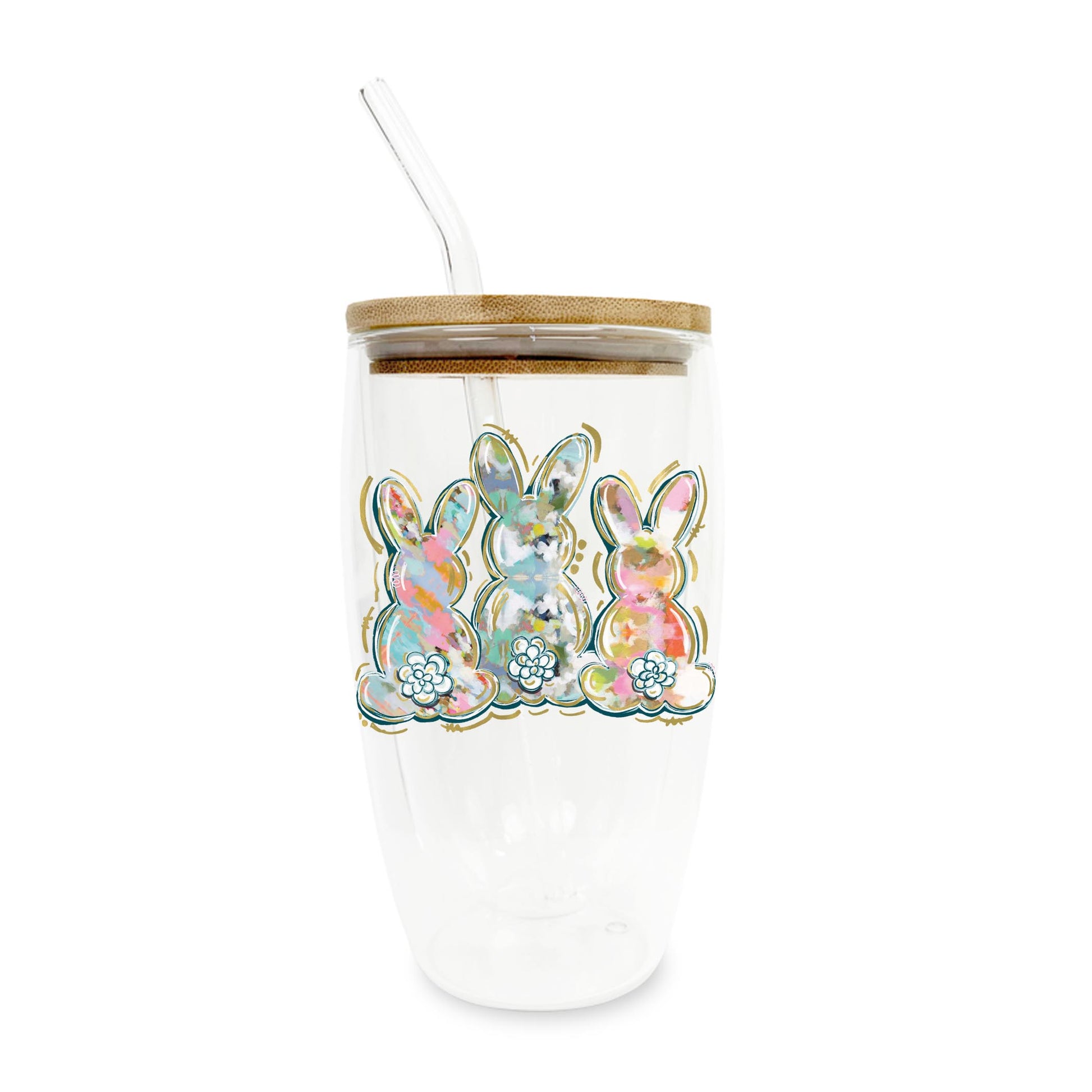 16oz Double Insulated Glass Tumbler-Painted Bunny Trio