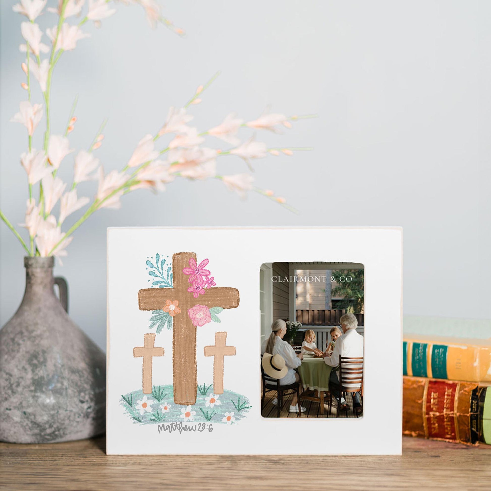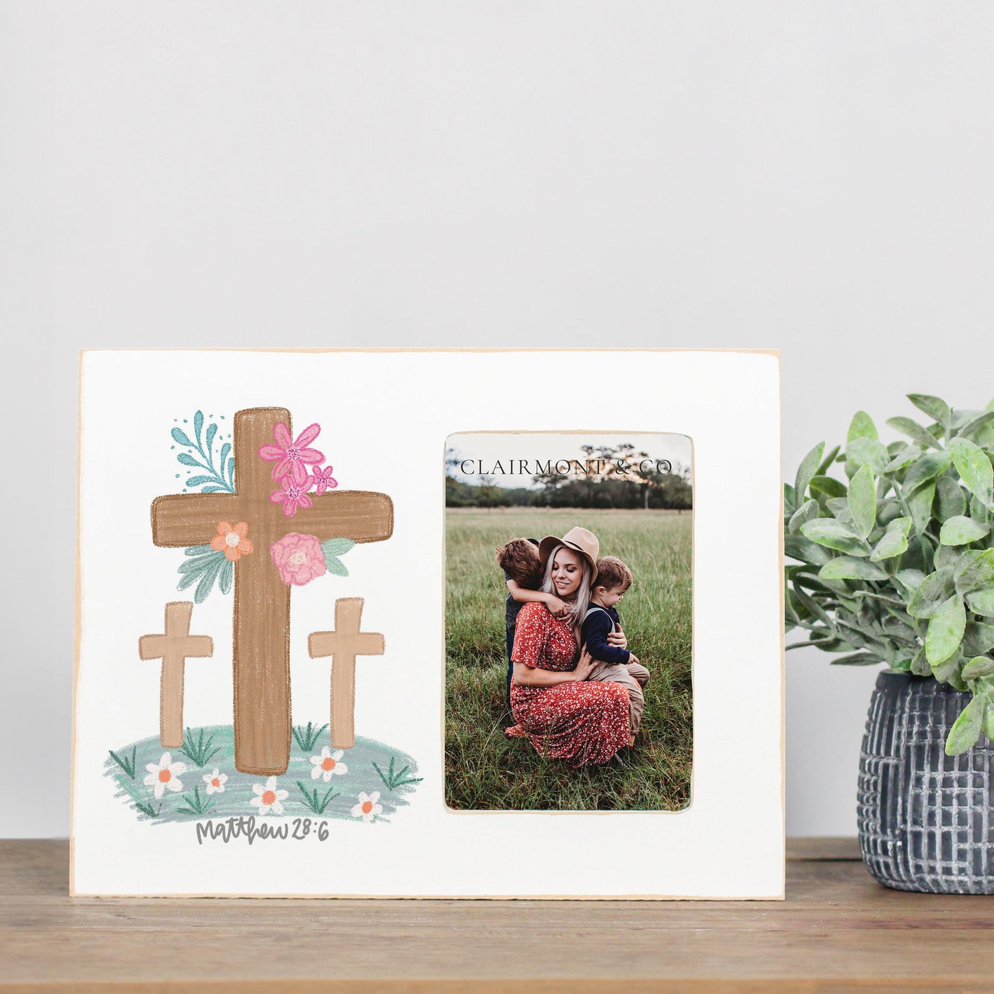 Lily Frame Horizontal-Floral Cross Matthew 28:6