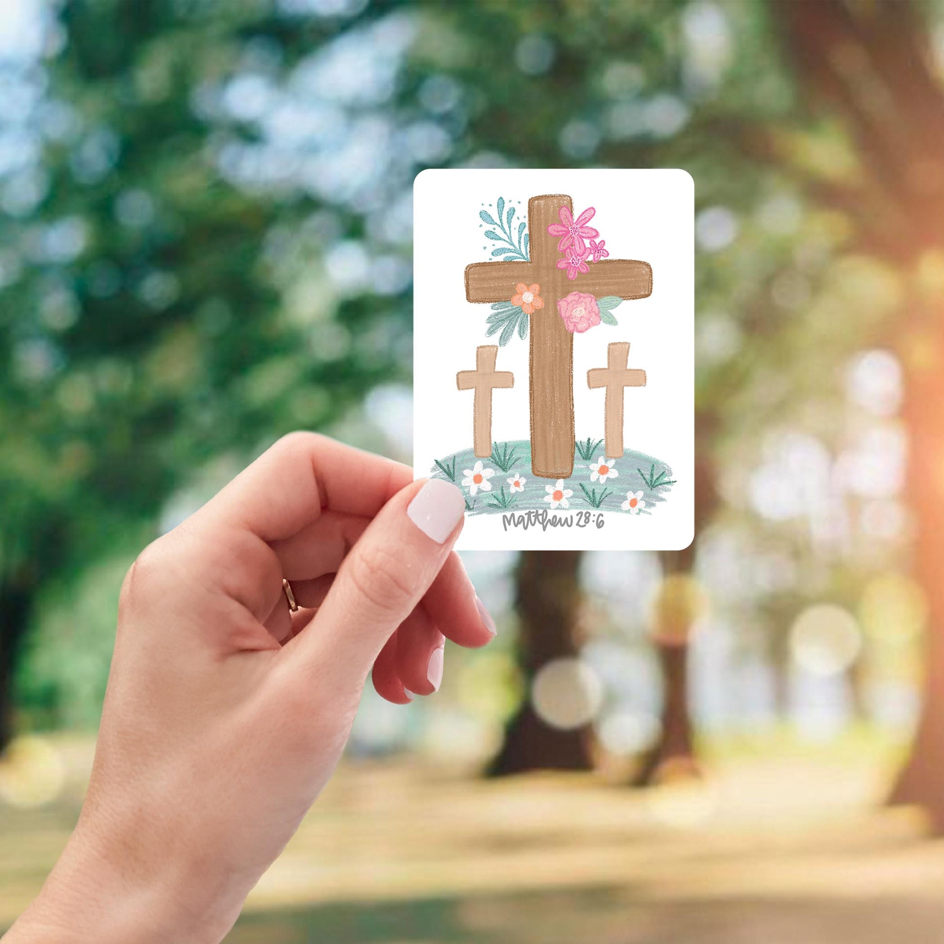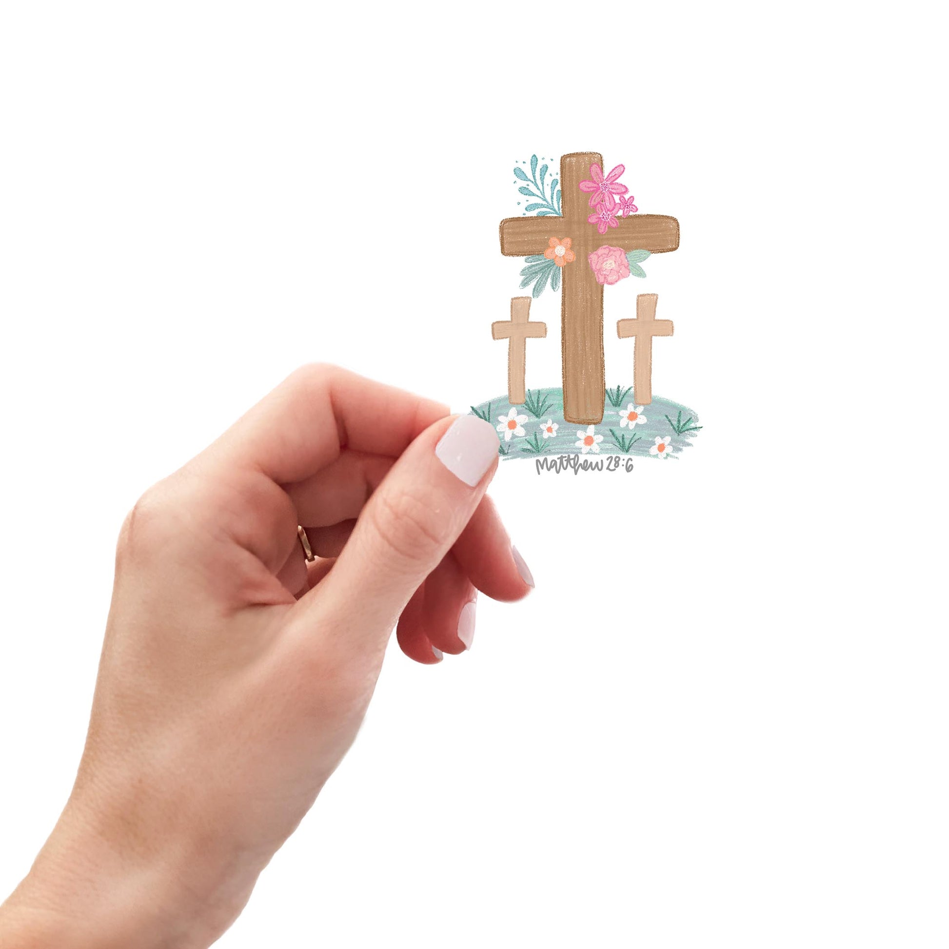 Vinyl Magnet-Floral Cross Matthew 28:6