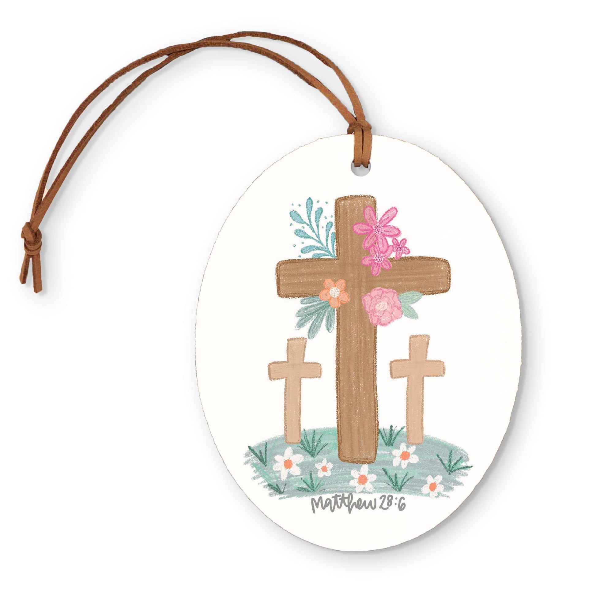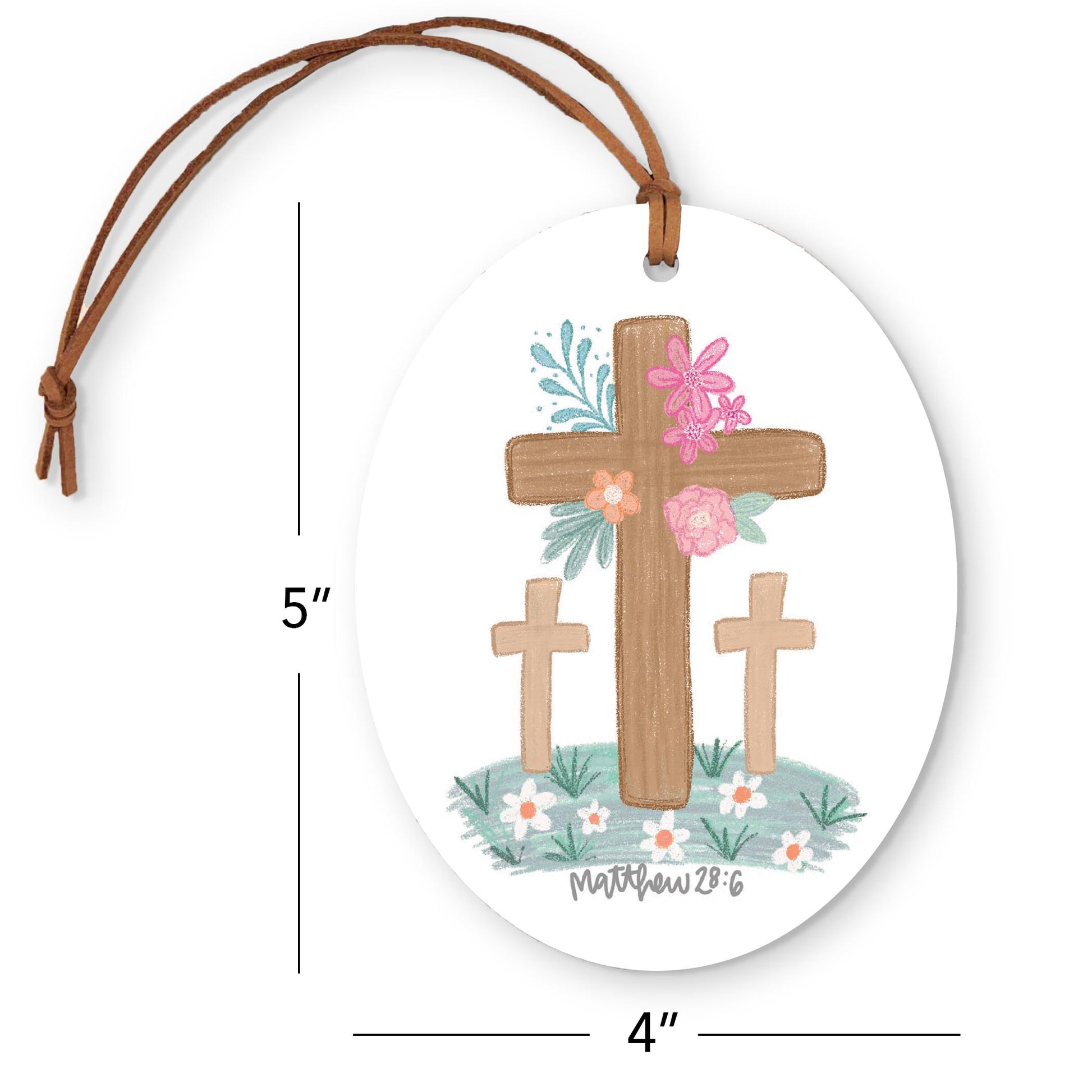 Oval Ornament-Floral Cross Matthew 28:6