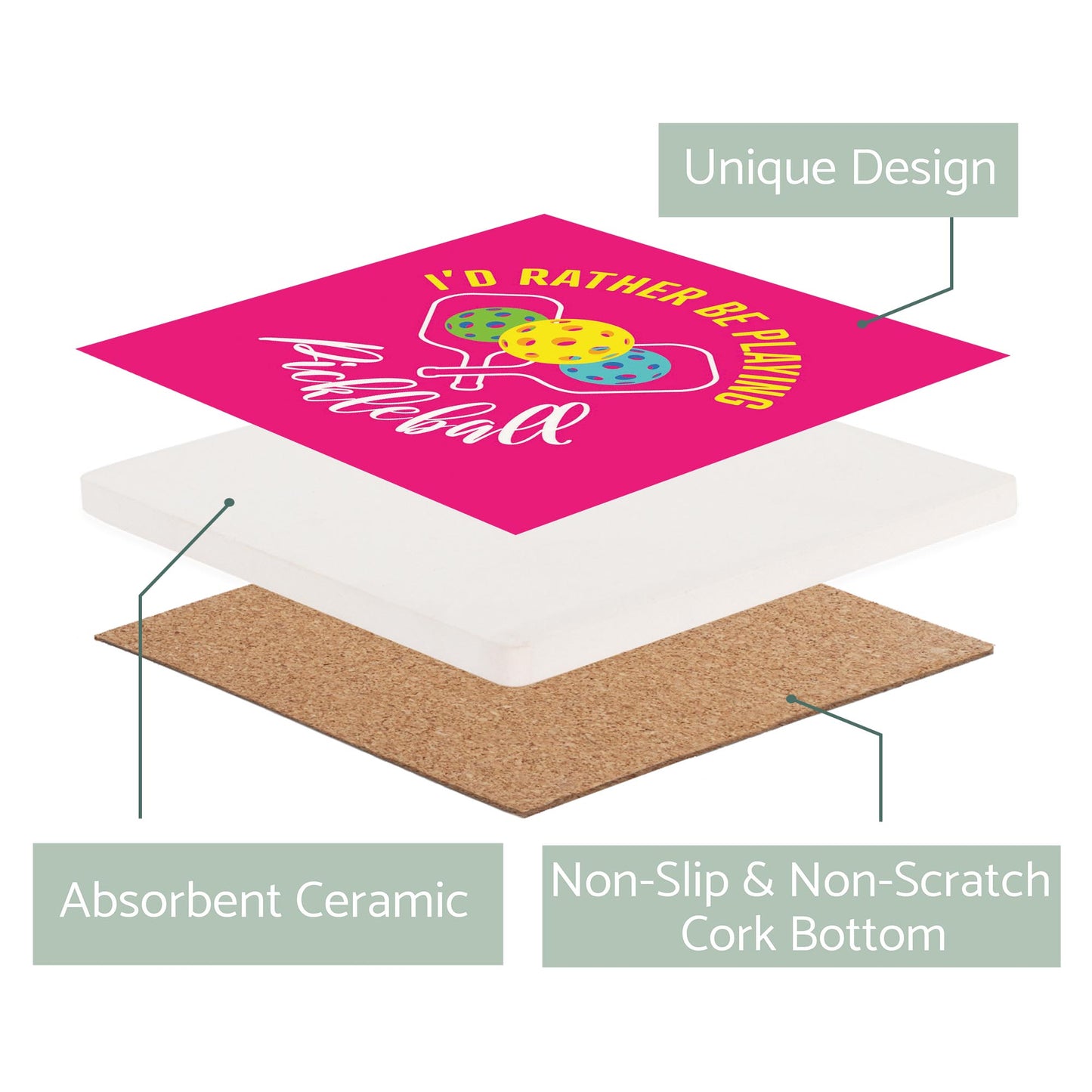 Ceramic Square Coaster-I'd Rather Be Playing Pickleball