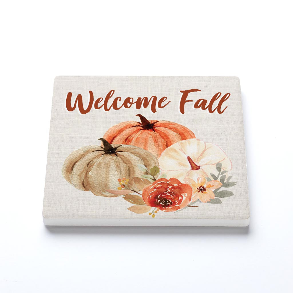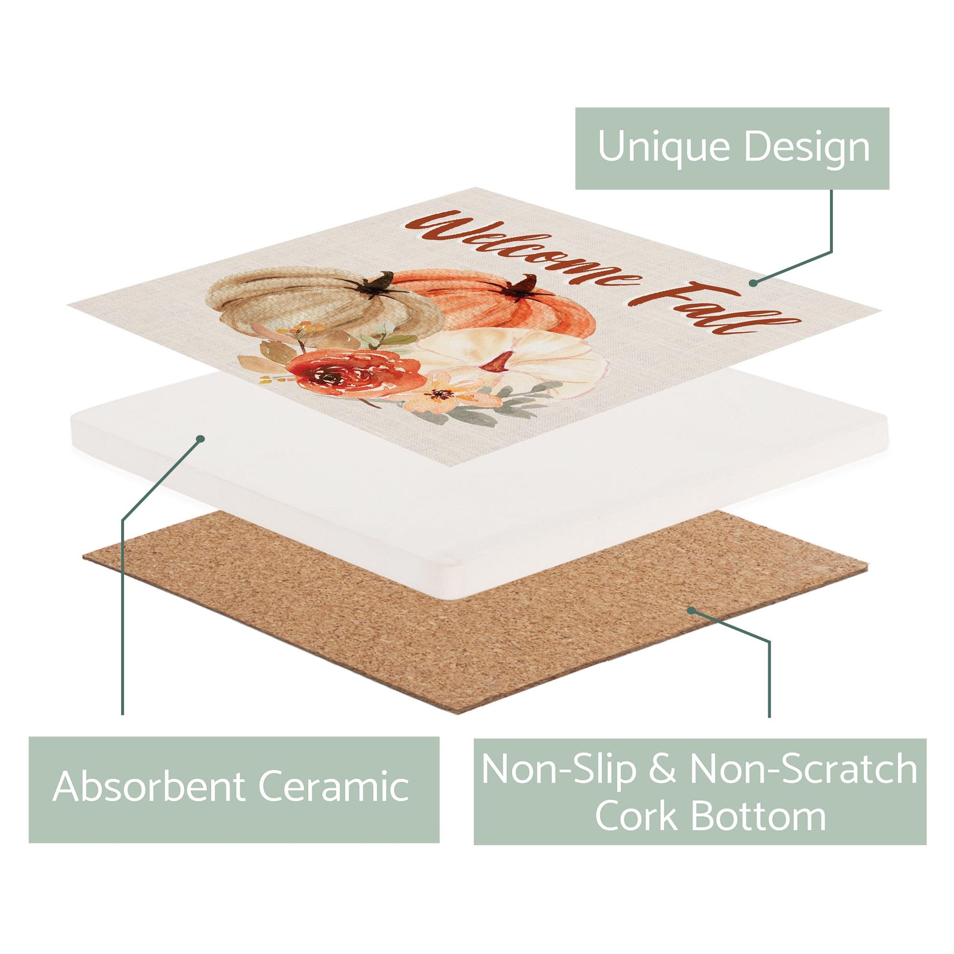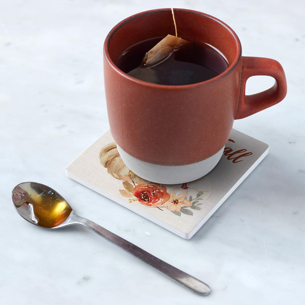 Ceramic Square Coaster-Welcome Fall Floral Pumpkin