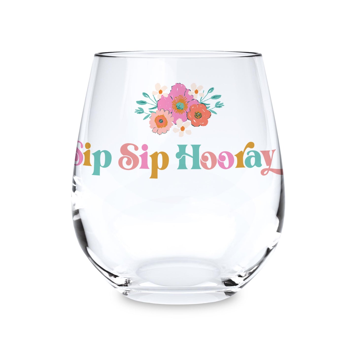 15oz Stemless Wine Glass-Kalia Floral Sip Sip Hooray