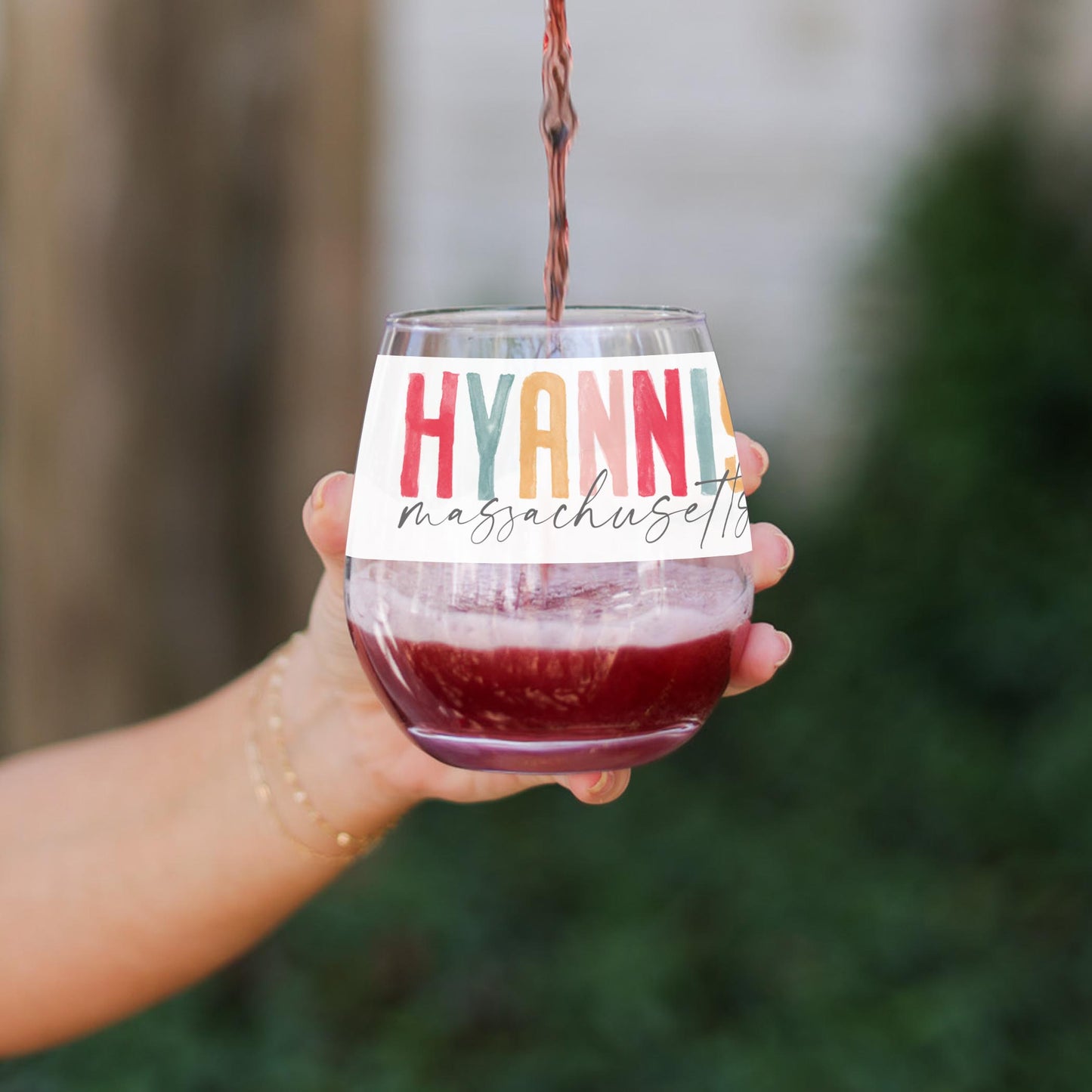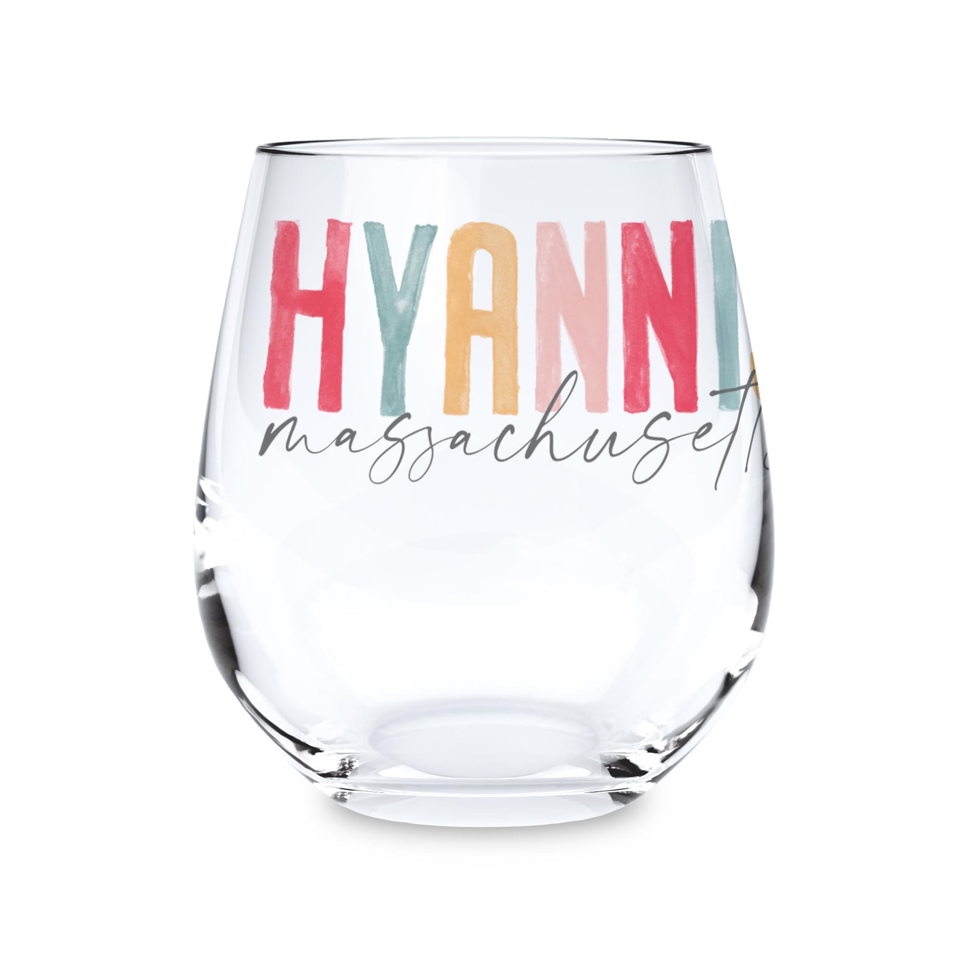 15oz Stemless Wine Glass-Watercolor City Hyannis MA
