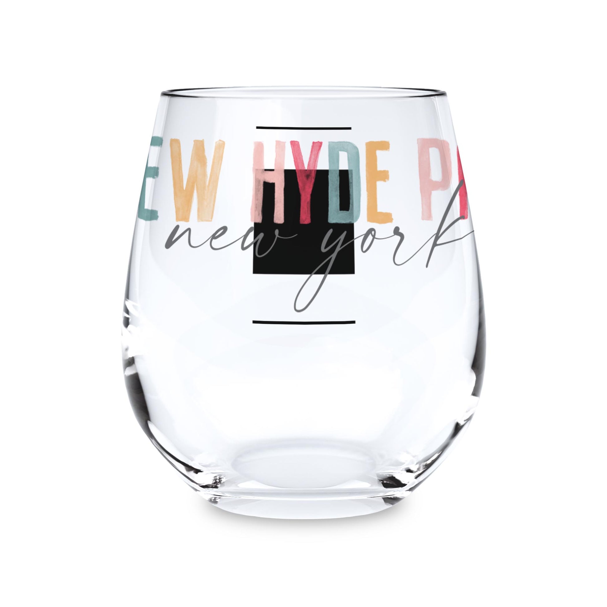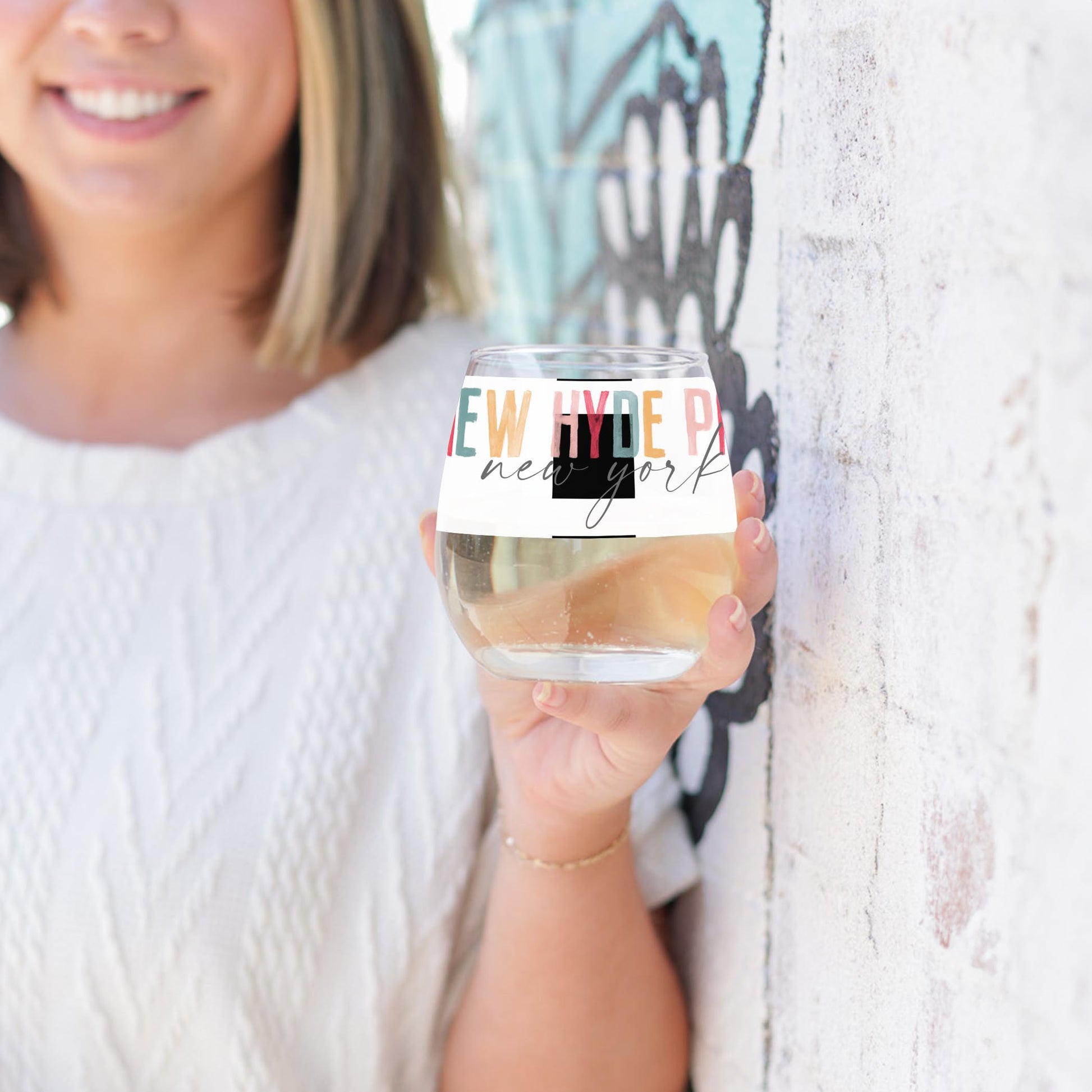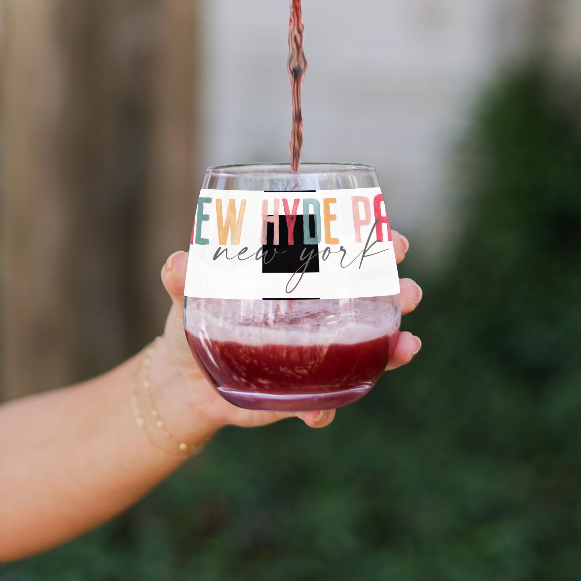 15oz Stemless Wine Glass-Watercolor City New Hyde Park NY