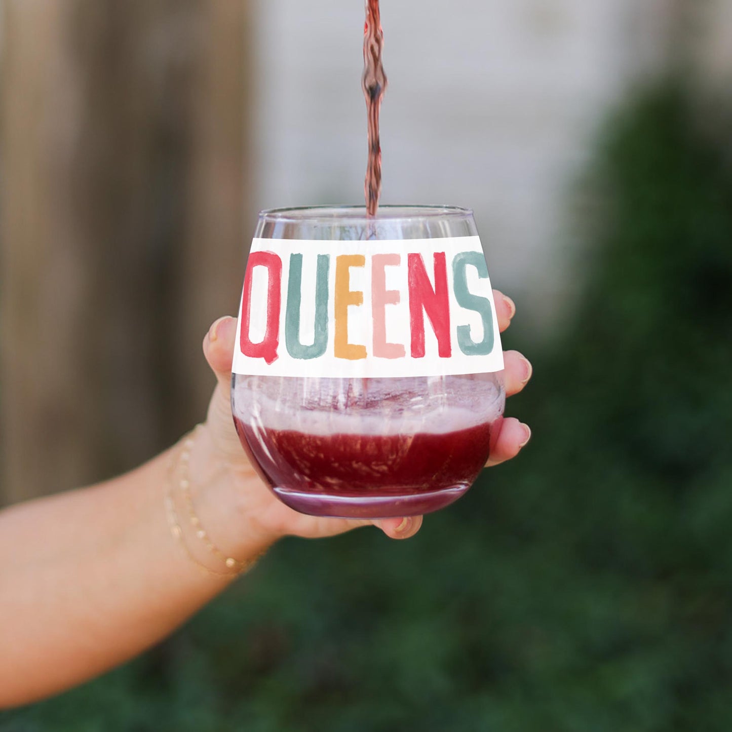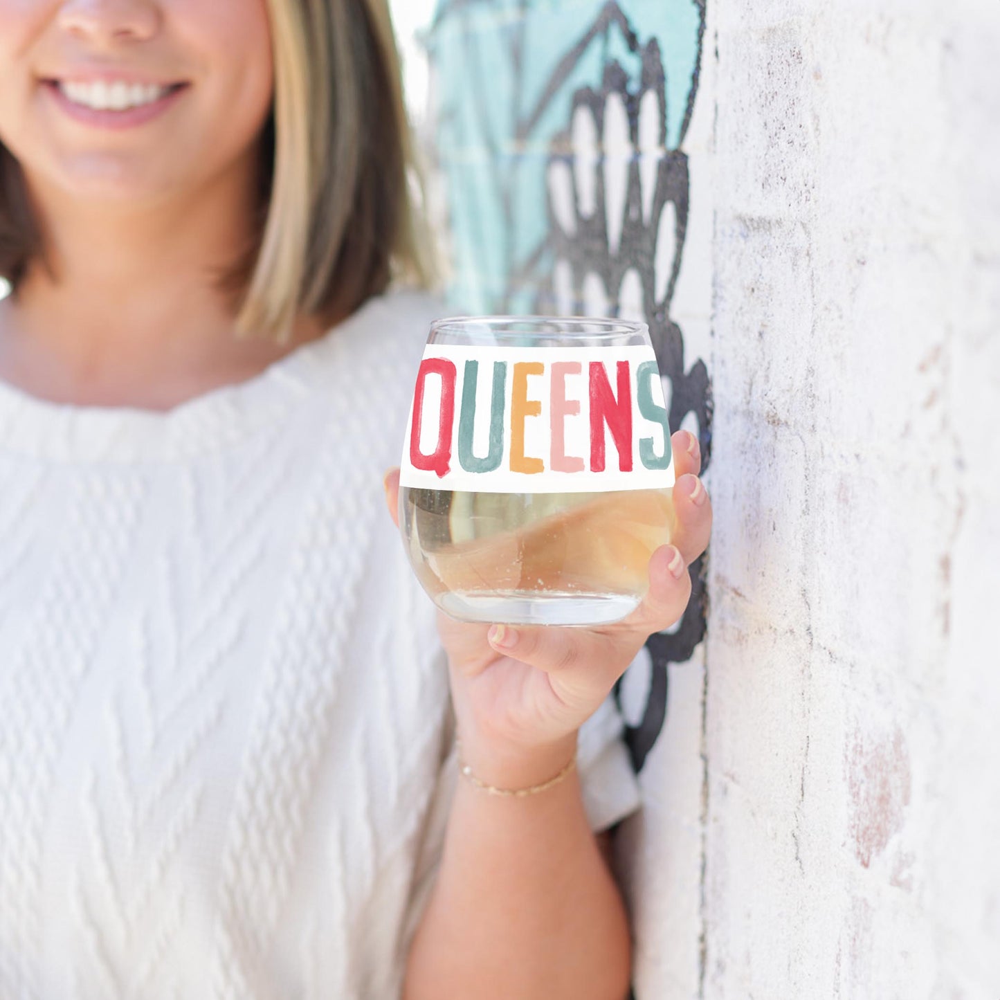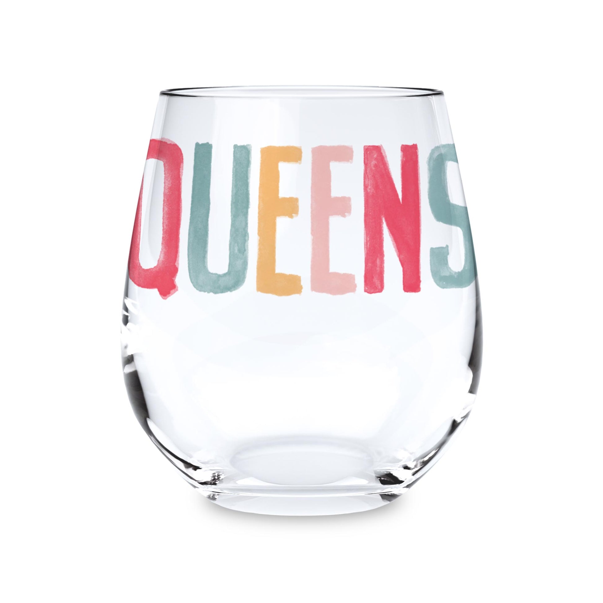 15oz Stemless Wine Glass-Watercolor City Queens NY