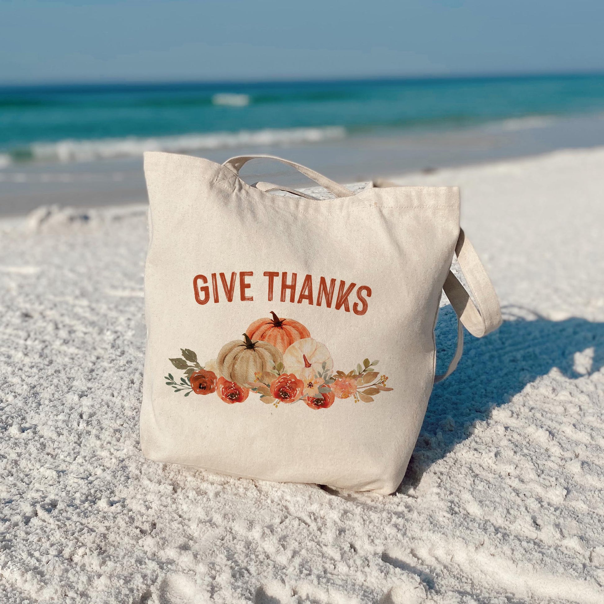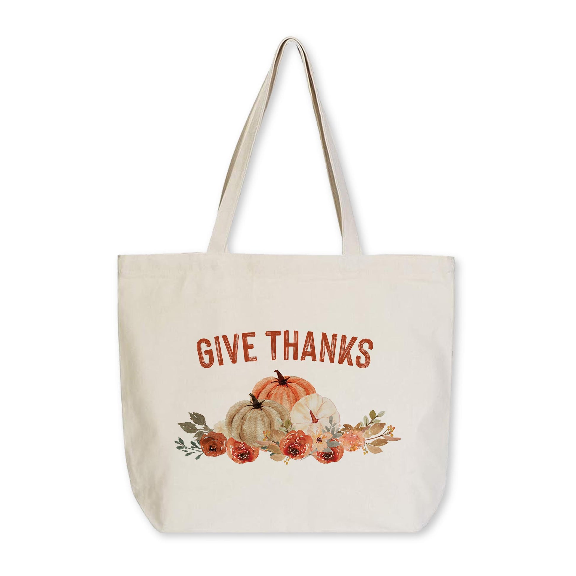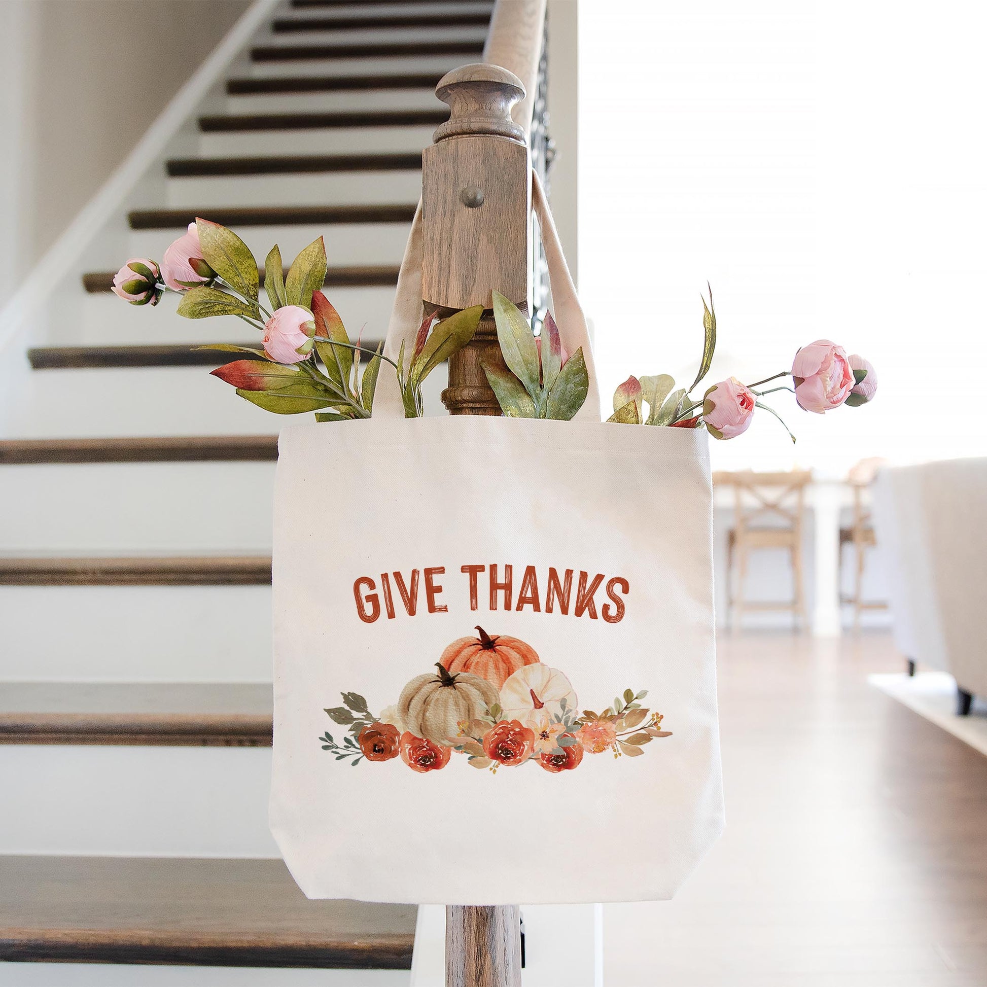 Tote Bag Natural Canvas-Give Thanks Floral Pumpkin