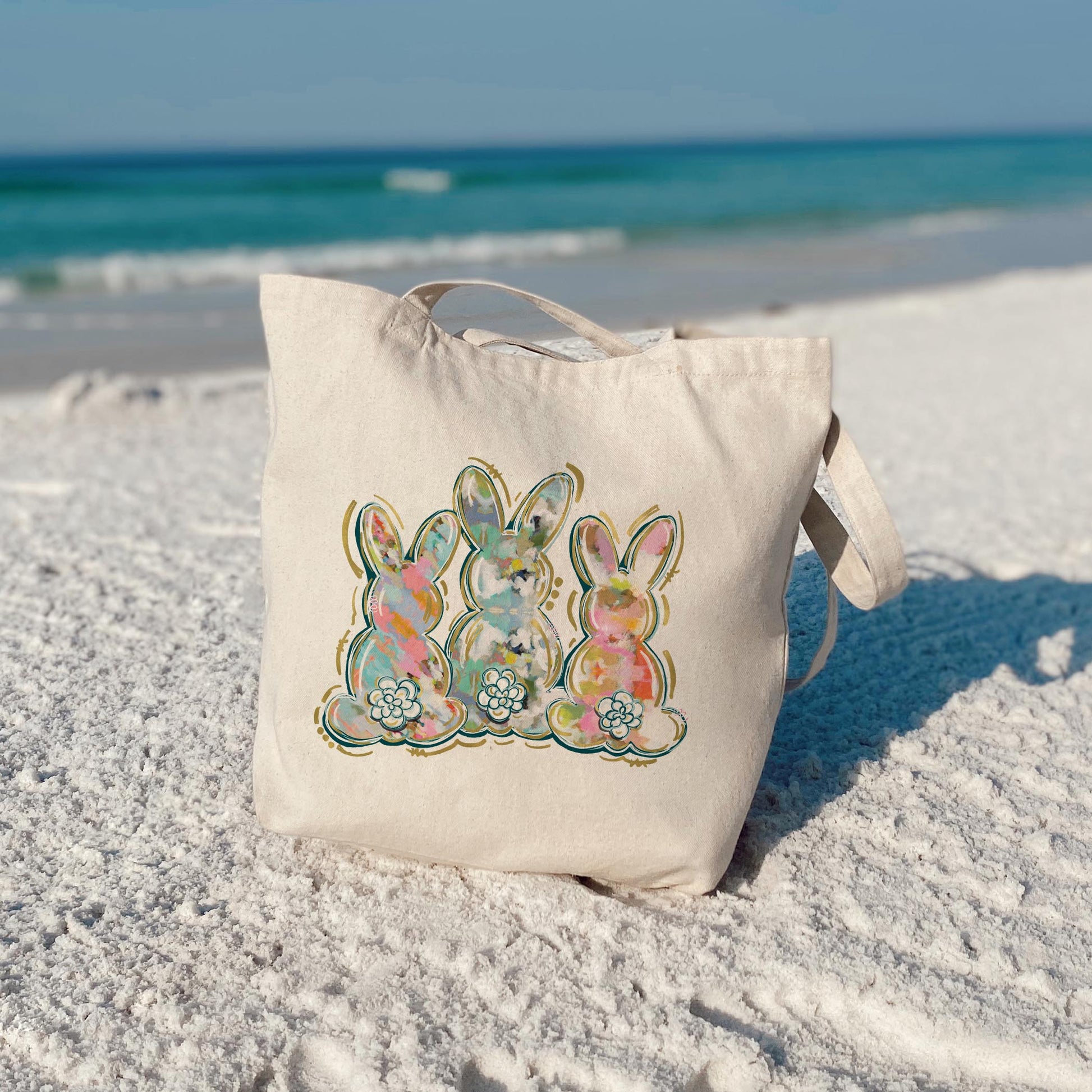 Tote Bag Natural Canvas-Painted Bunny Trio