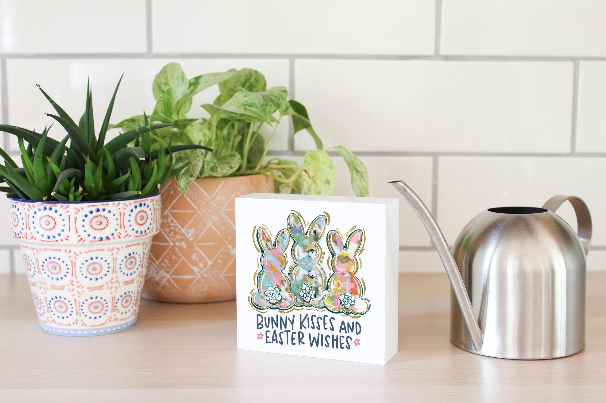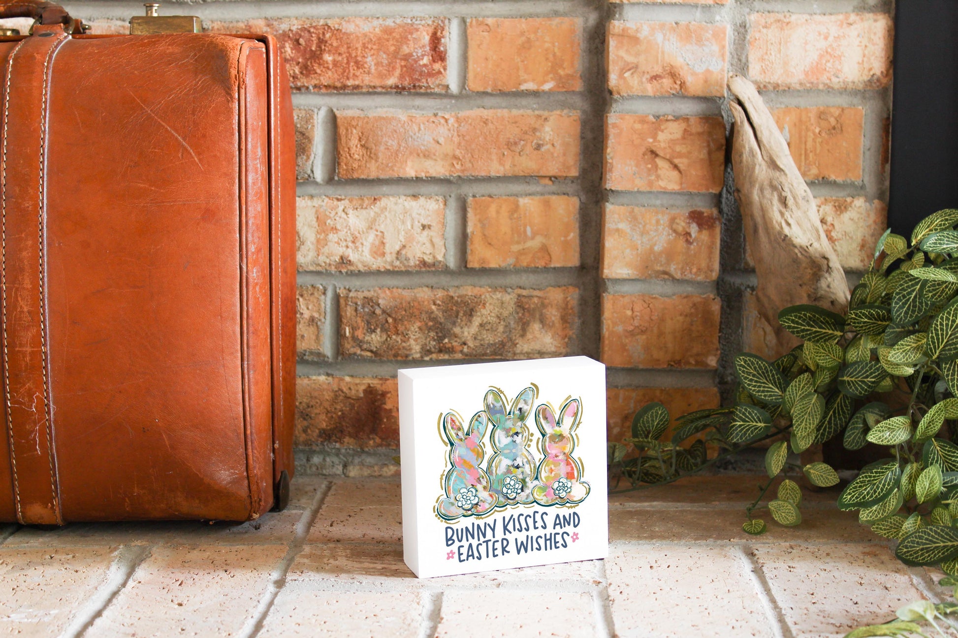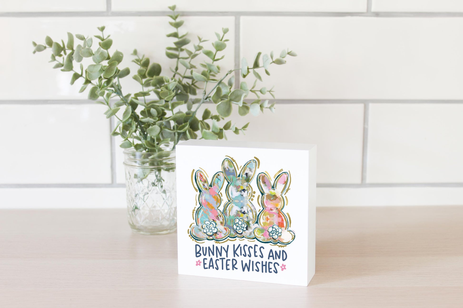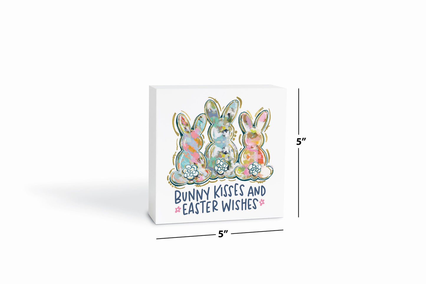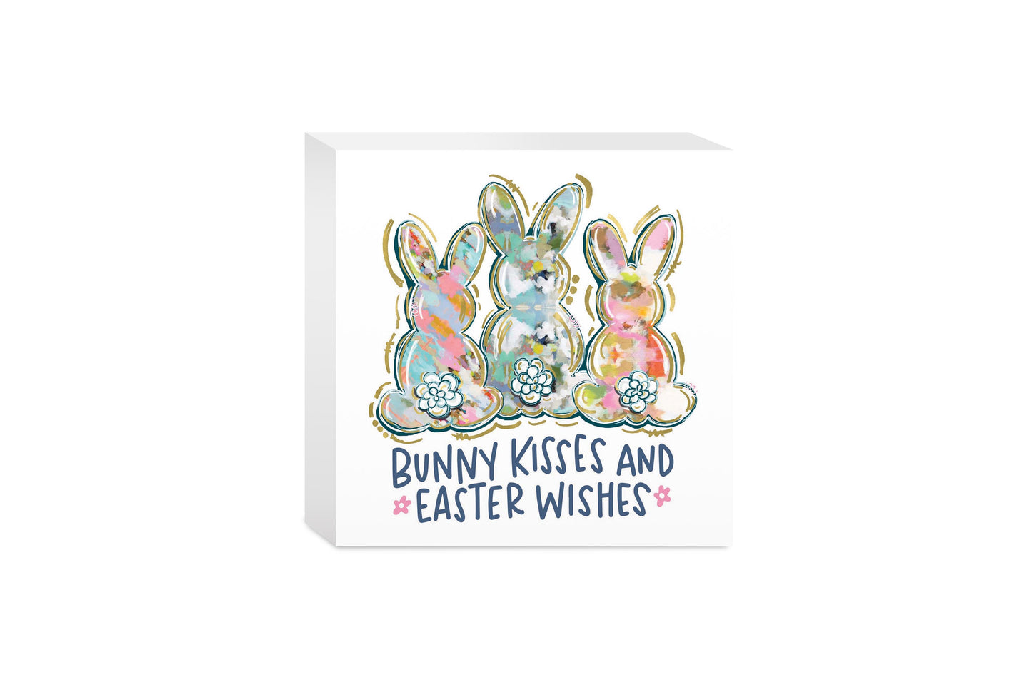 5x5 Wood Block-Bunny Kisses & Easter Wishes