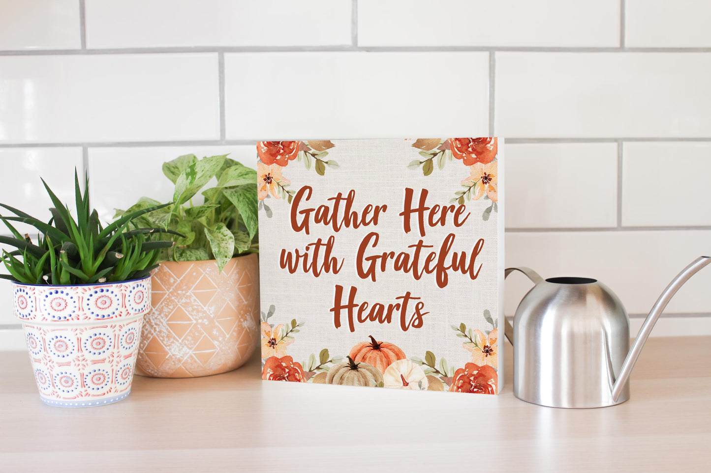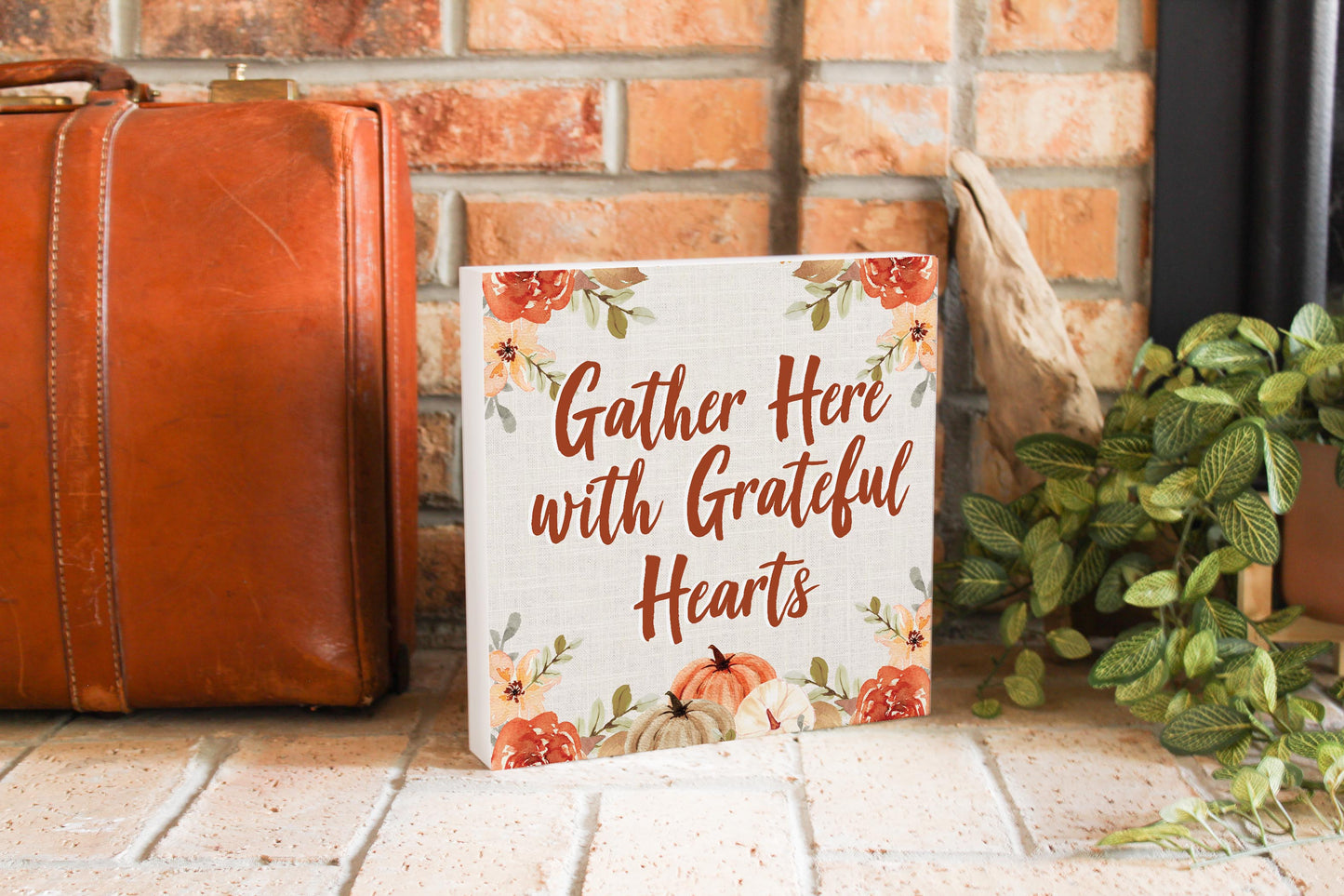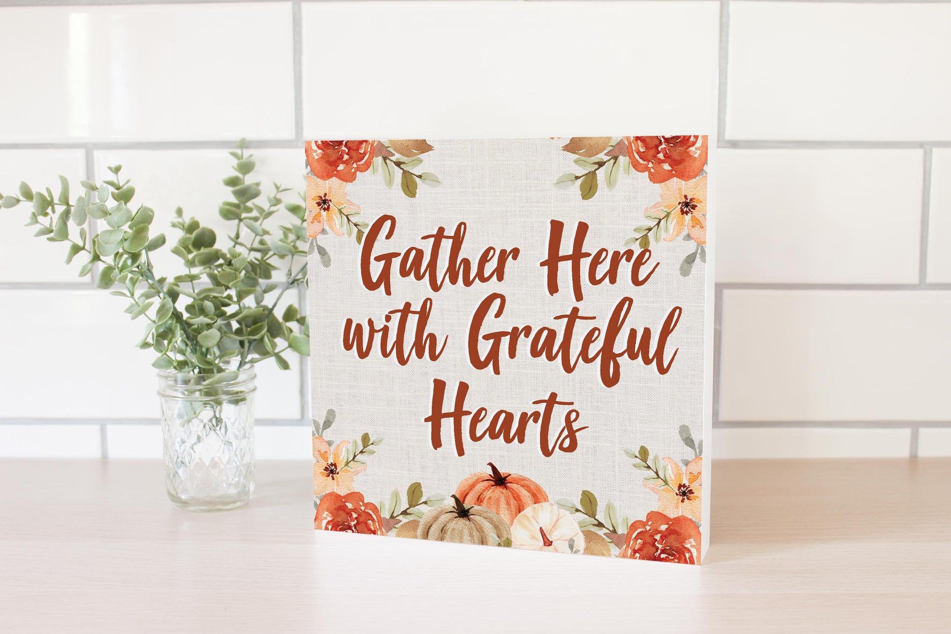 10x10 Wood Block-Grateful Hearts Fall Florals