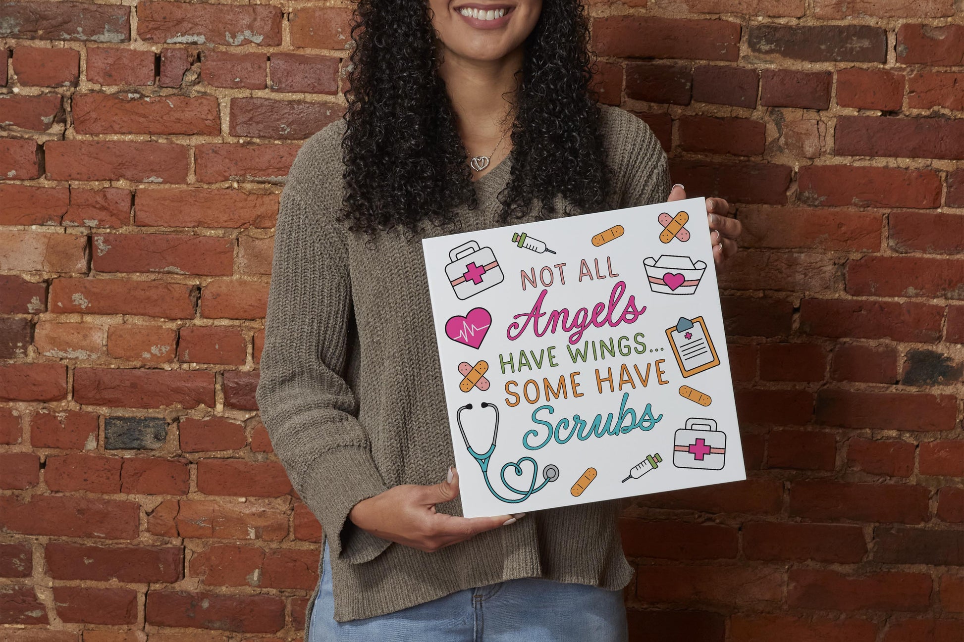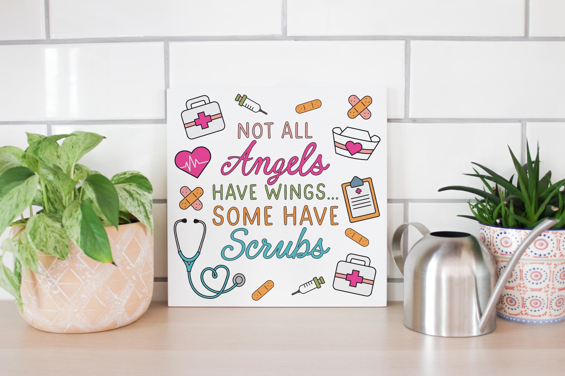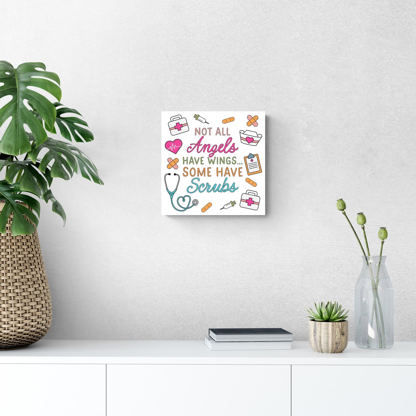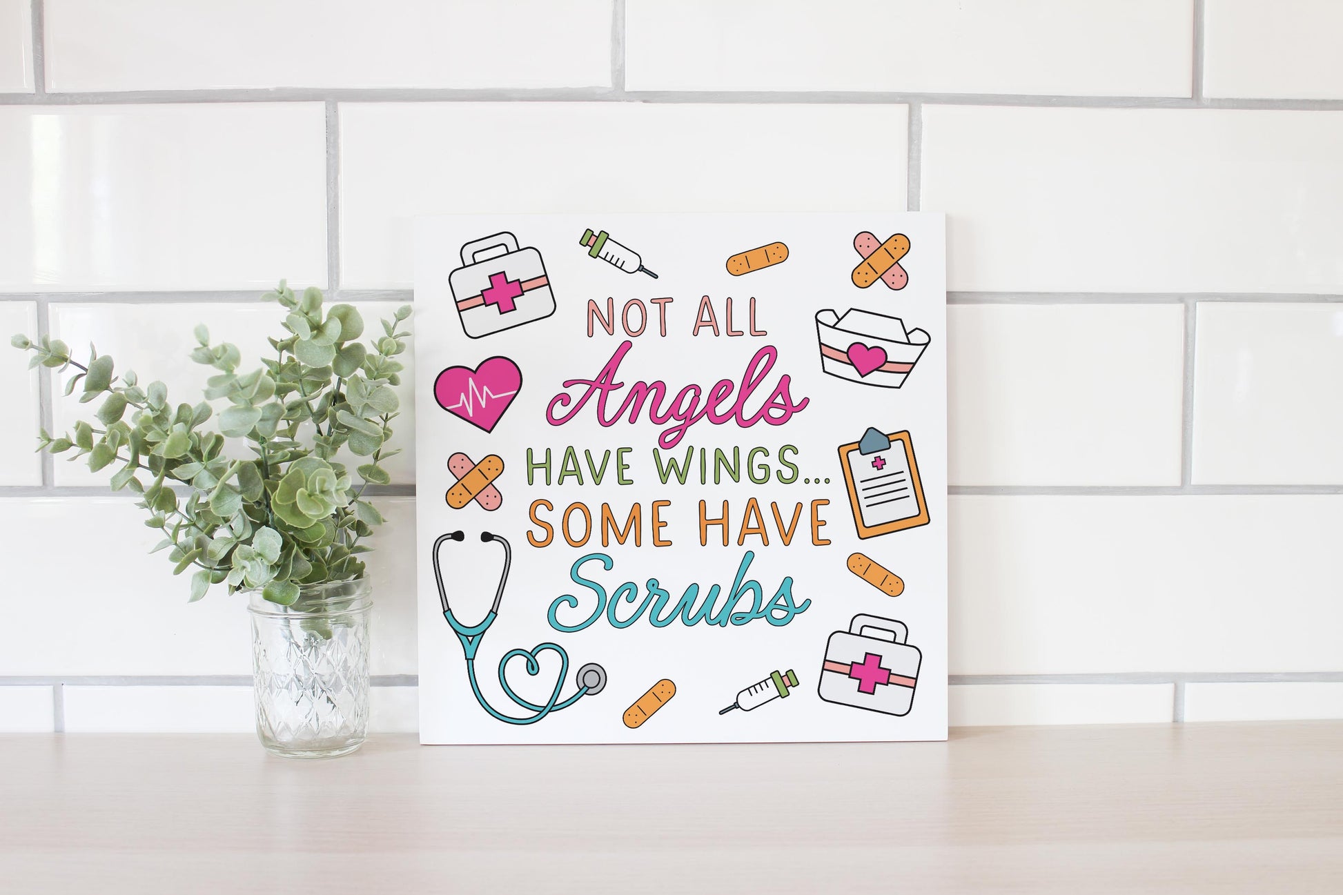 12x12 Wood Plaque-Some Angels Have Scrubs