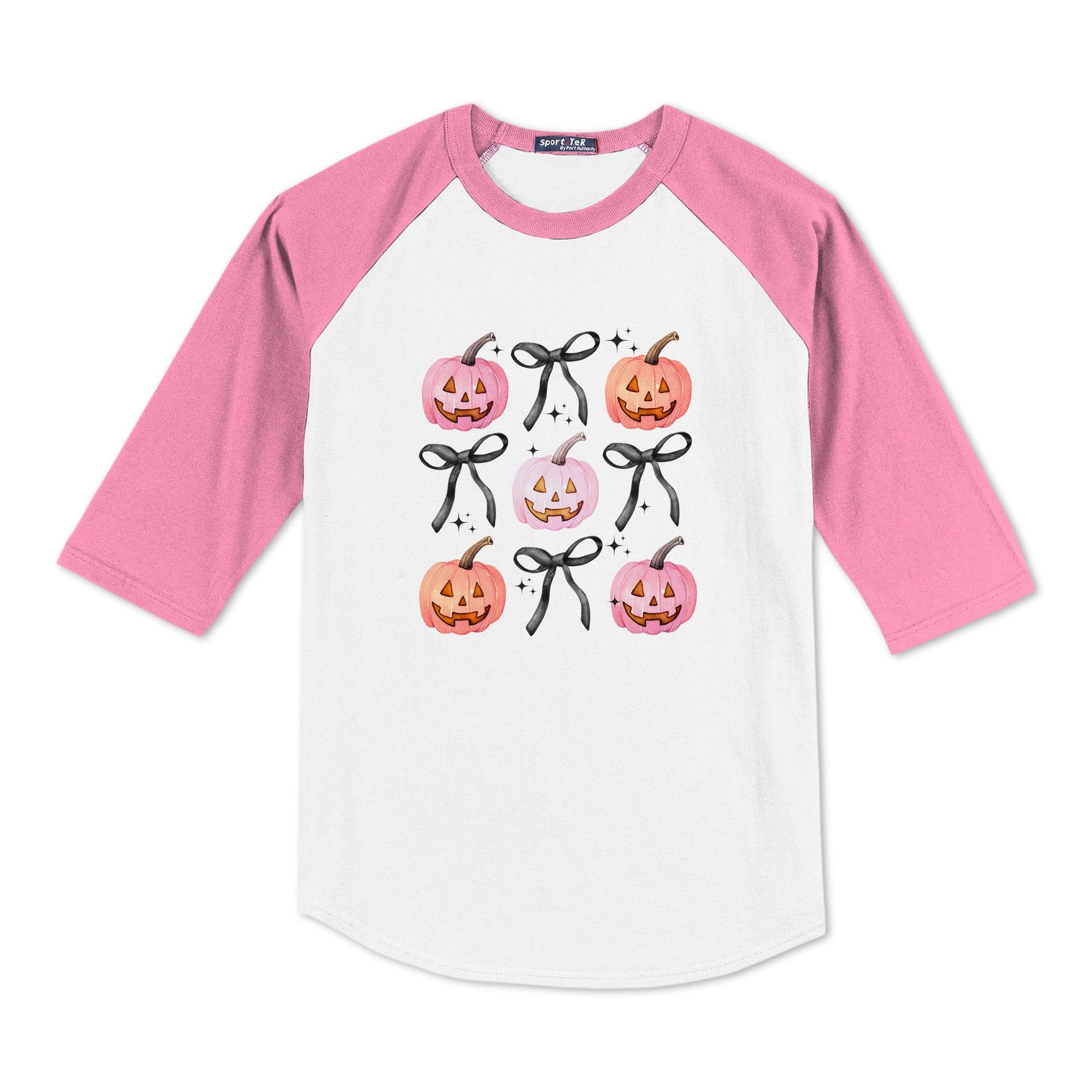 Youth Colorblock Raglan Pink/White - Pumpkins and Bows