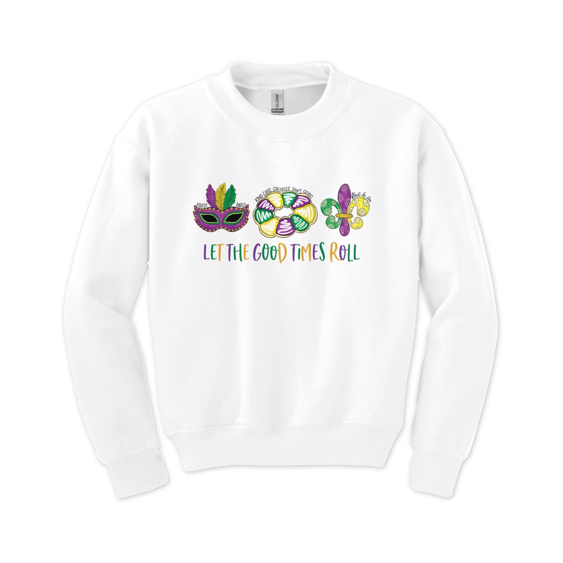 Gildan Youth Crewneck White-Mardi Gras Let The Good Times Roll