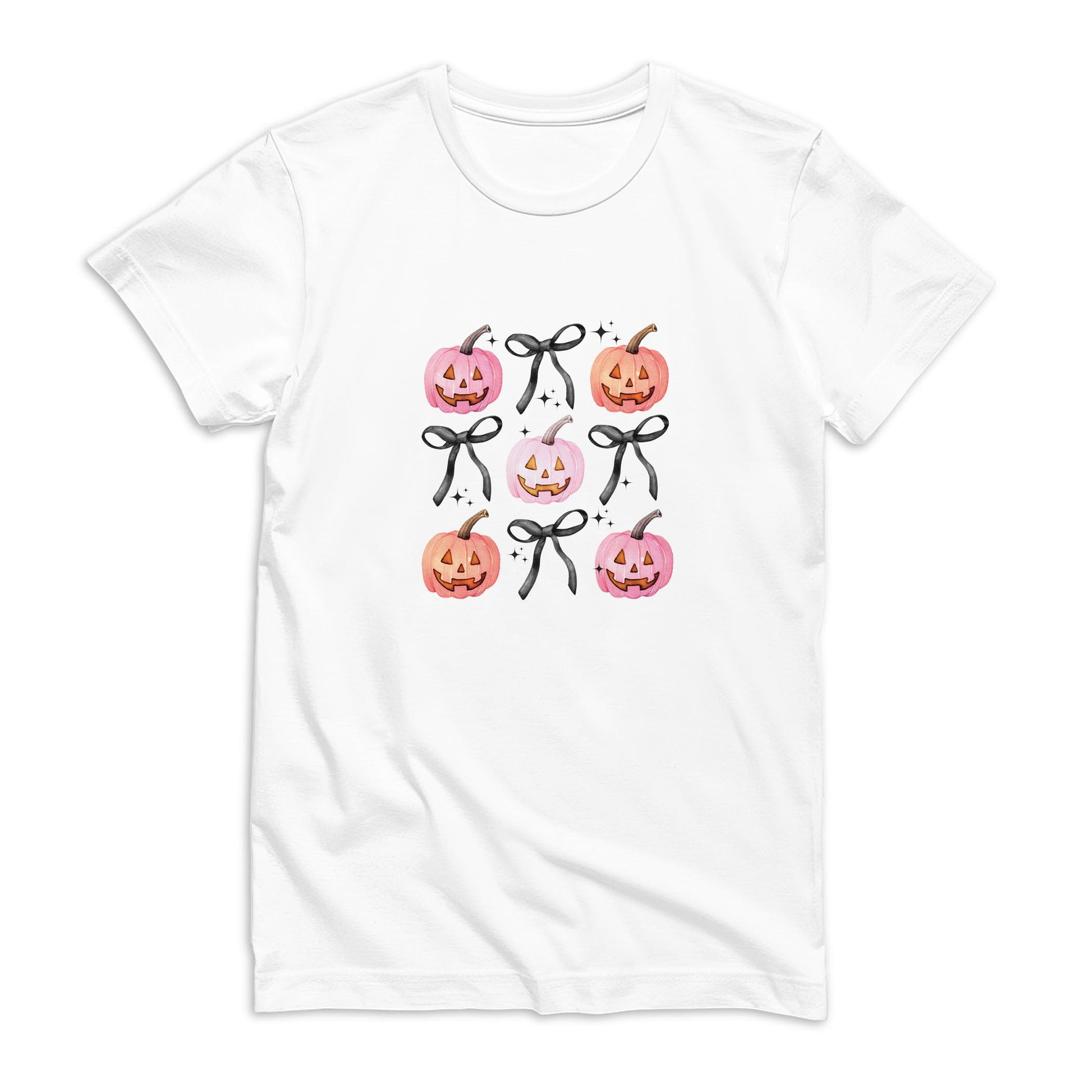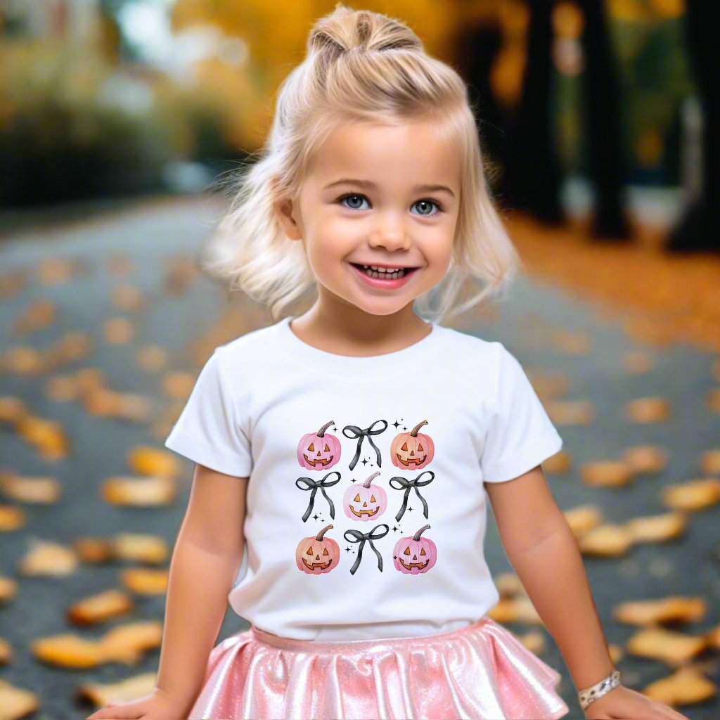 Bella Canvas Youth T-Shirt White-Halloween Pumpkins and Bows