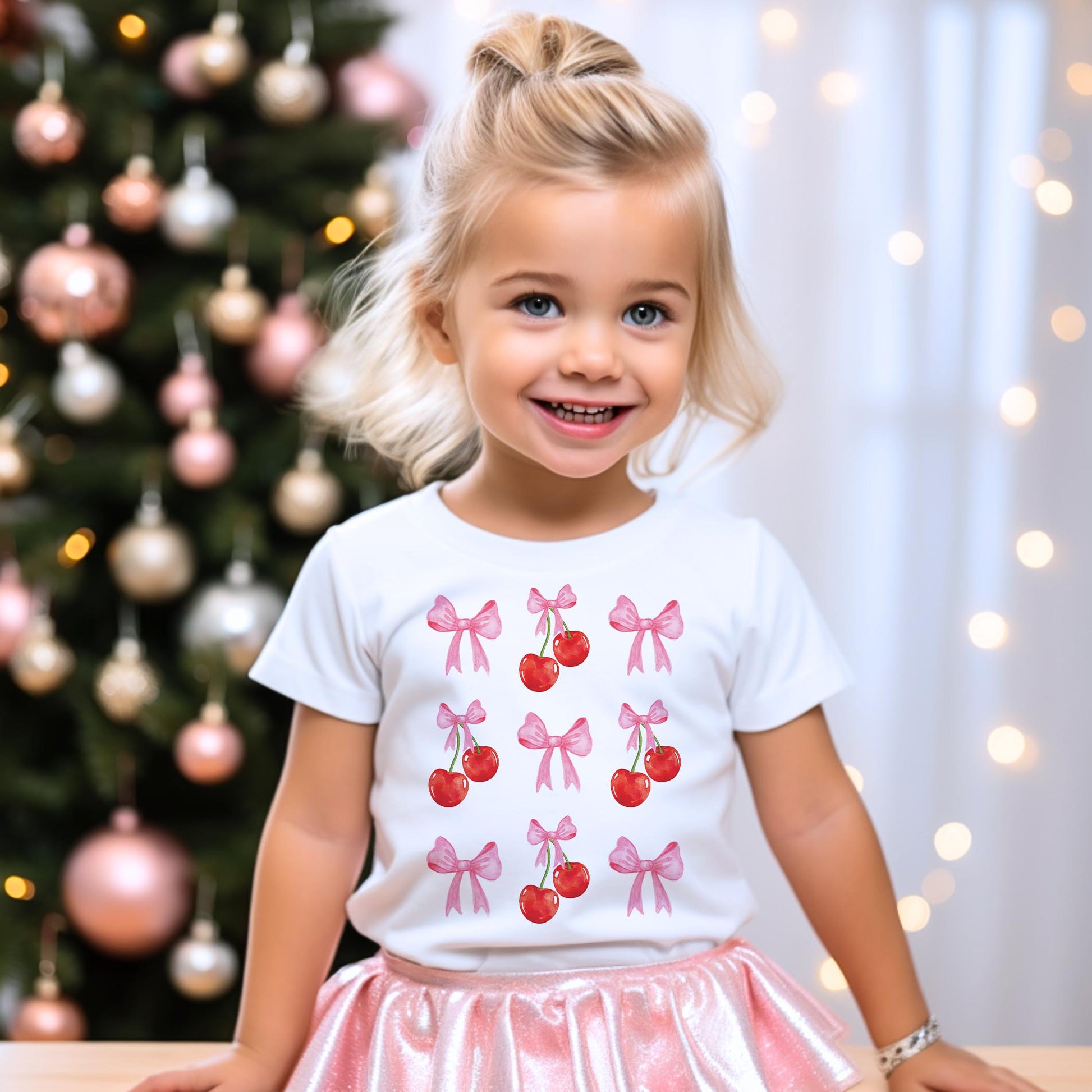 Bella Canvas Youth T-Shirt White-Cherries & Bows