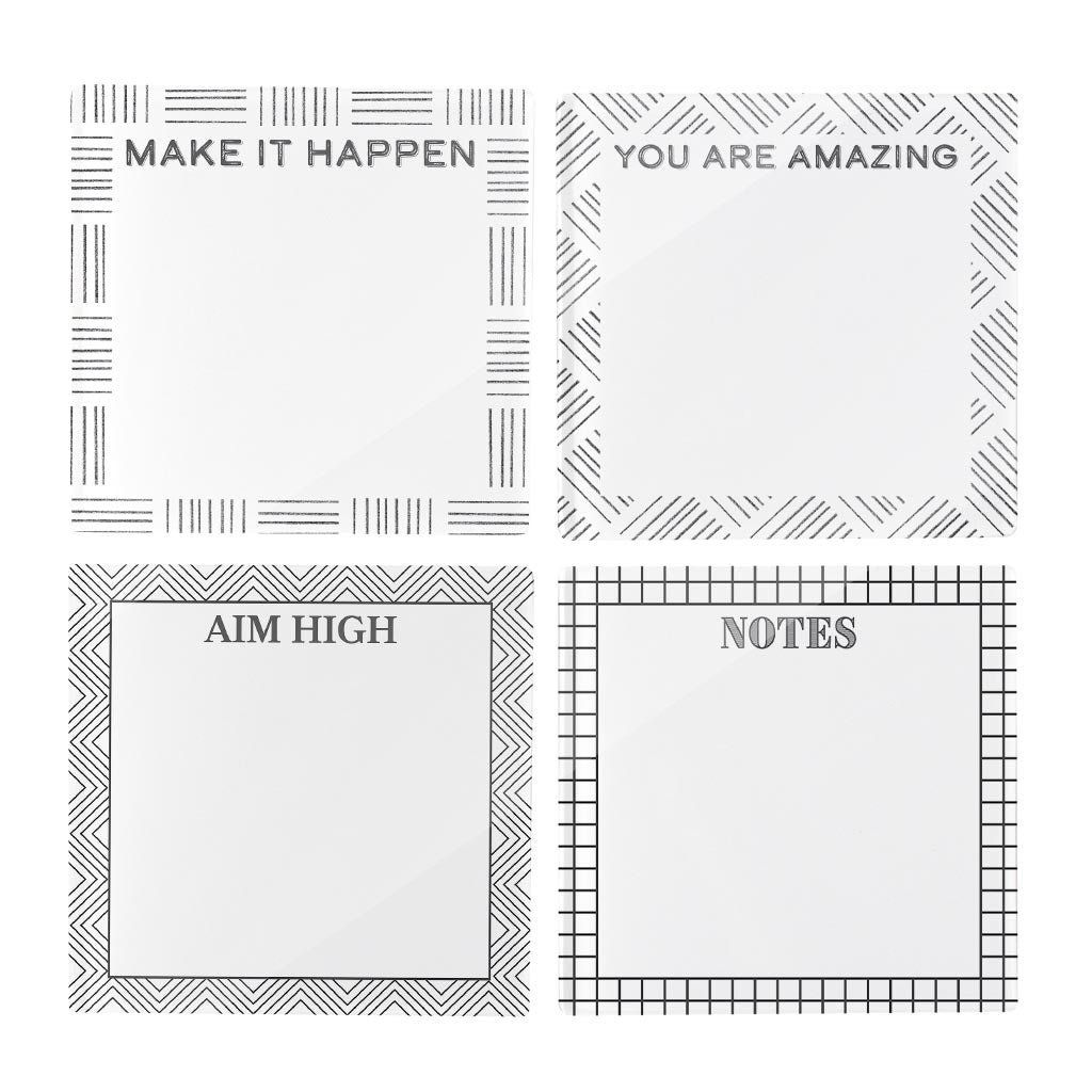 Handy and artsy! Clear Reminders are small, dry erase glass tiles, which are perfect to jot down a note or two on! Vibrant and beautiful,they’re easy to wipe clean and provide a little pop of fun décor to switch in and out. Use with any dry erase marker. It’s a win/win when art meets practicality and makes for a great gift!