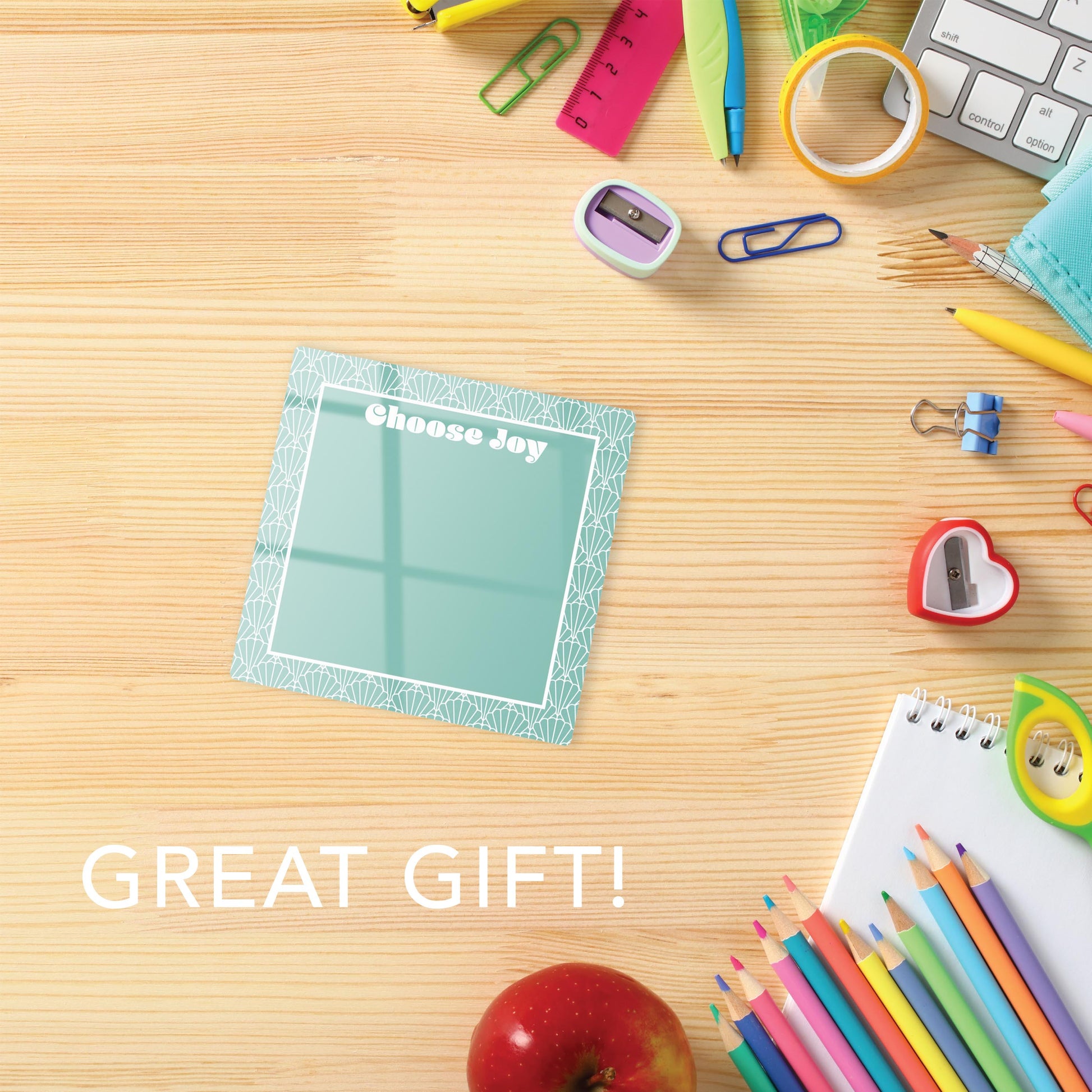Handy and artsy! Clear Reminders are small, dry erase glass tiles, which are perfect to jot down a note or two on! Vibrant and beautiful,they’re easy to wipe clean and provide a little pop of fun décor to switch in and out. Use with any dry erase marker. It’s a win/win when art meets practicality and makes for a great gift!