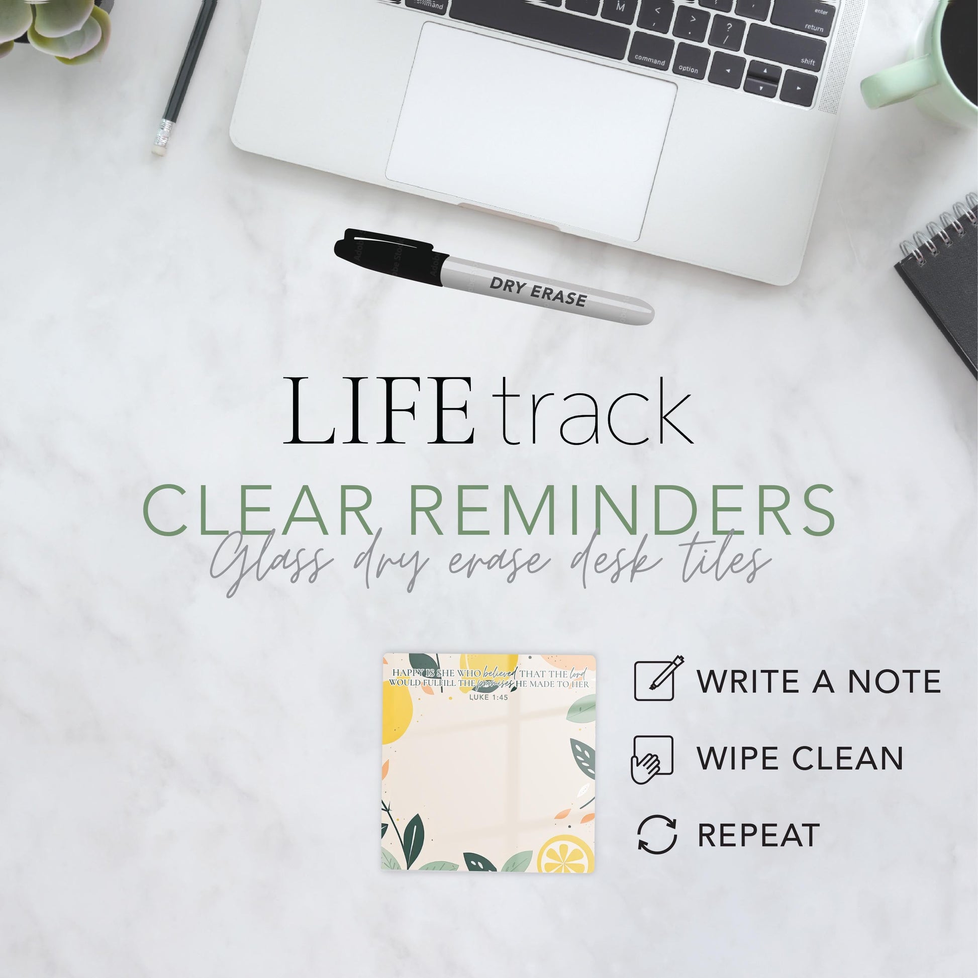 Handy and artsy! Clear Reminders are small, dry erase glass tiles, which are perfect to jot down a note or two on! Vibrant and beautiful,they’re easy to wipe clean and provide a little pop of fun décor to switch in and out. Use with any dry erase marker. It’s a win/win when art meets practicality and makes for a great gift!