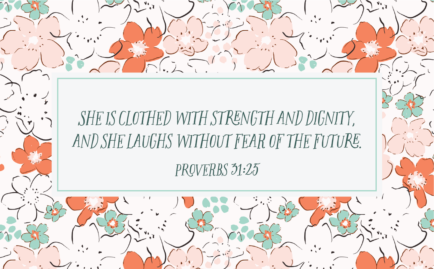 "She is clothed with strength and dignity, and she laughs without fear of the future. Proverbs 31:25"