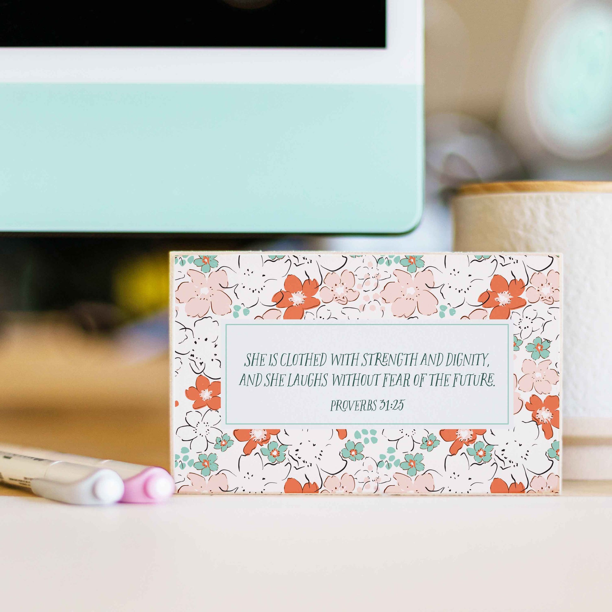 Fearless Faith Desk Sign-She is Clothed in Strength and Dignity