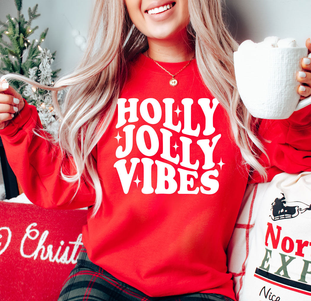 Red or Green Graphic Sweatshirt - Holly Jolly Vibes